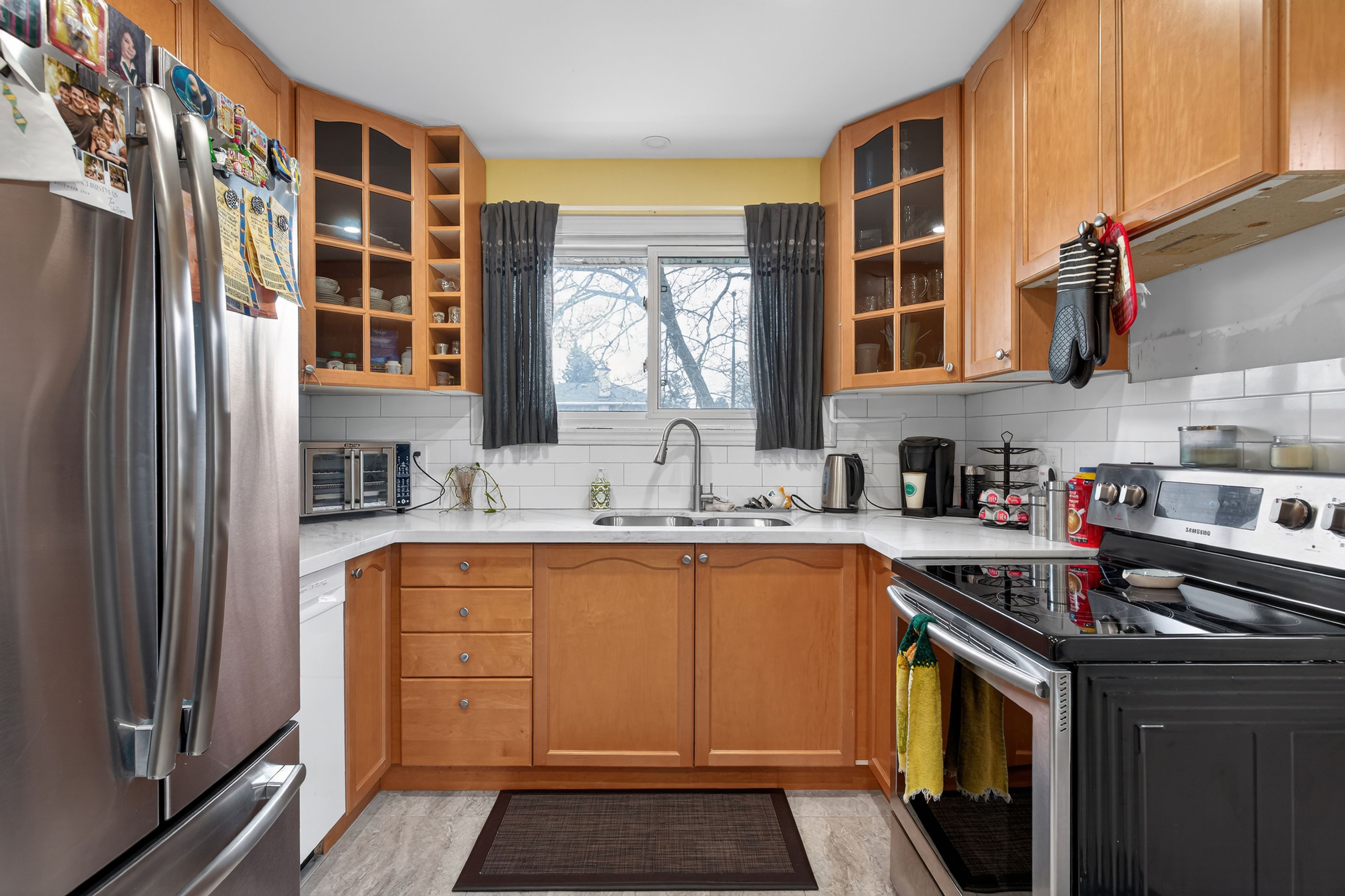 • Main floor has a bright kitchen with a deck overlooking the backyard.