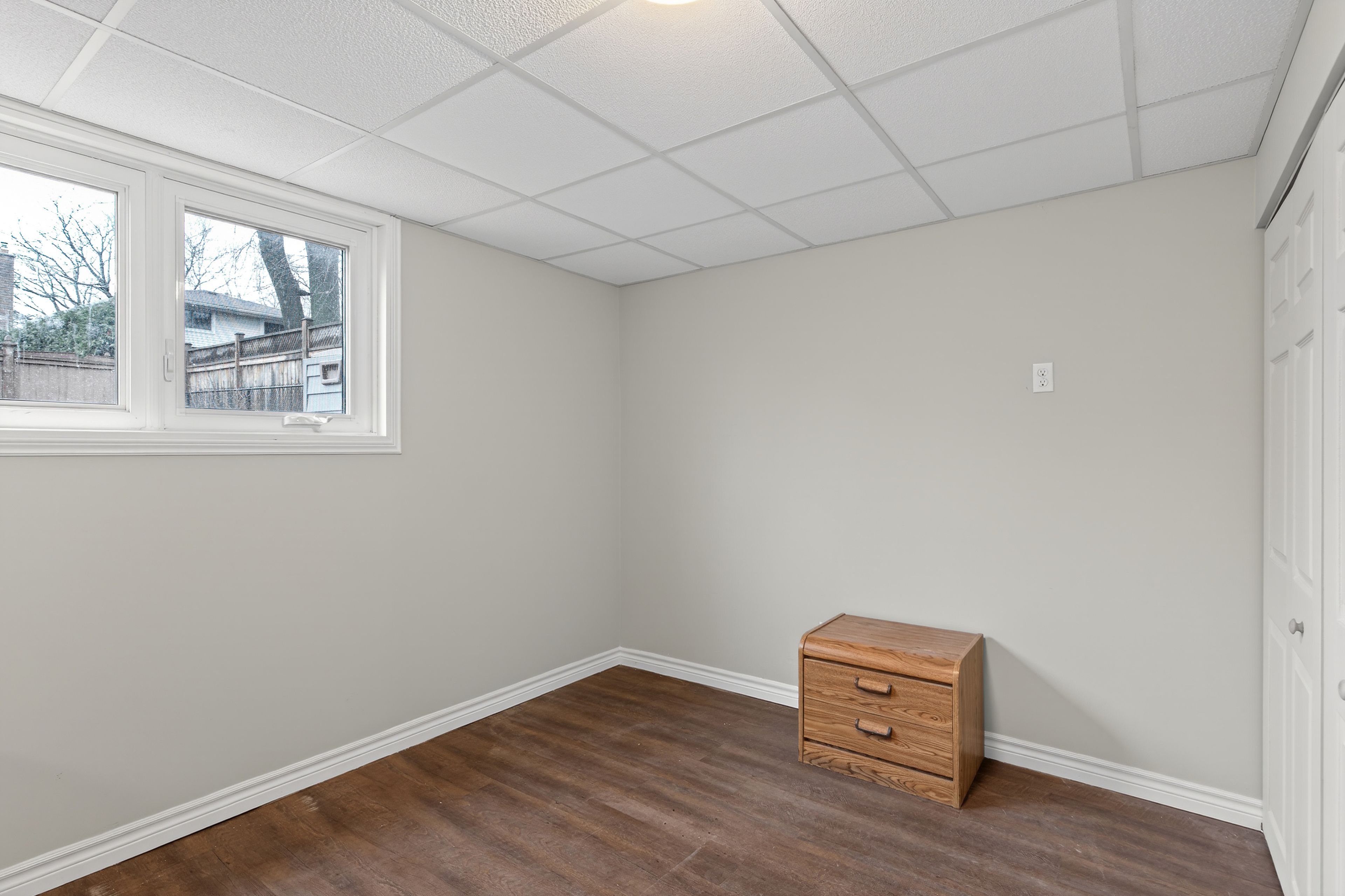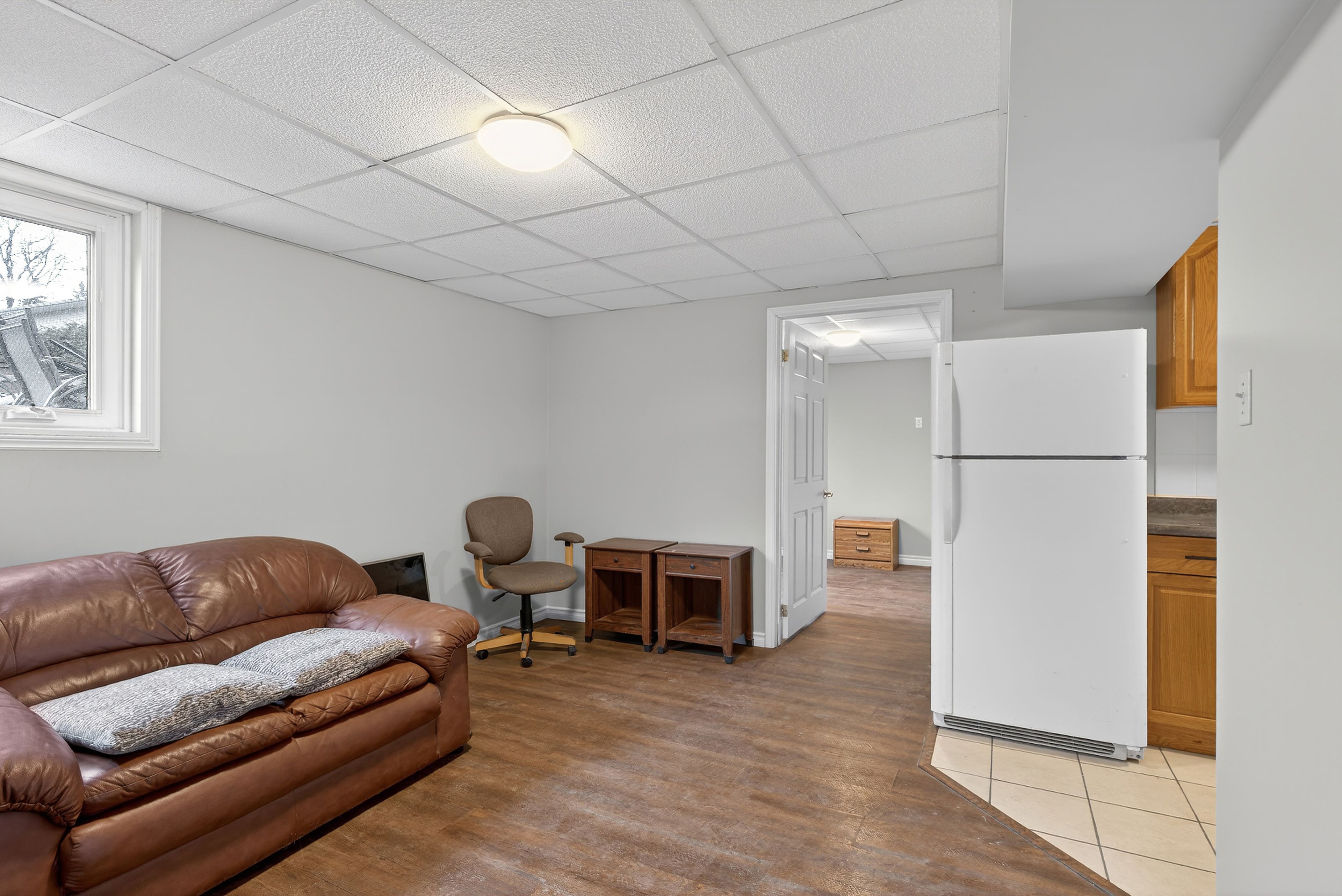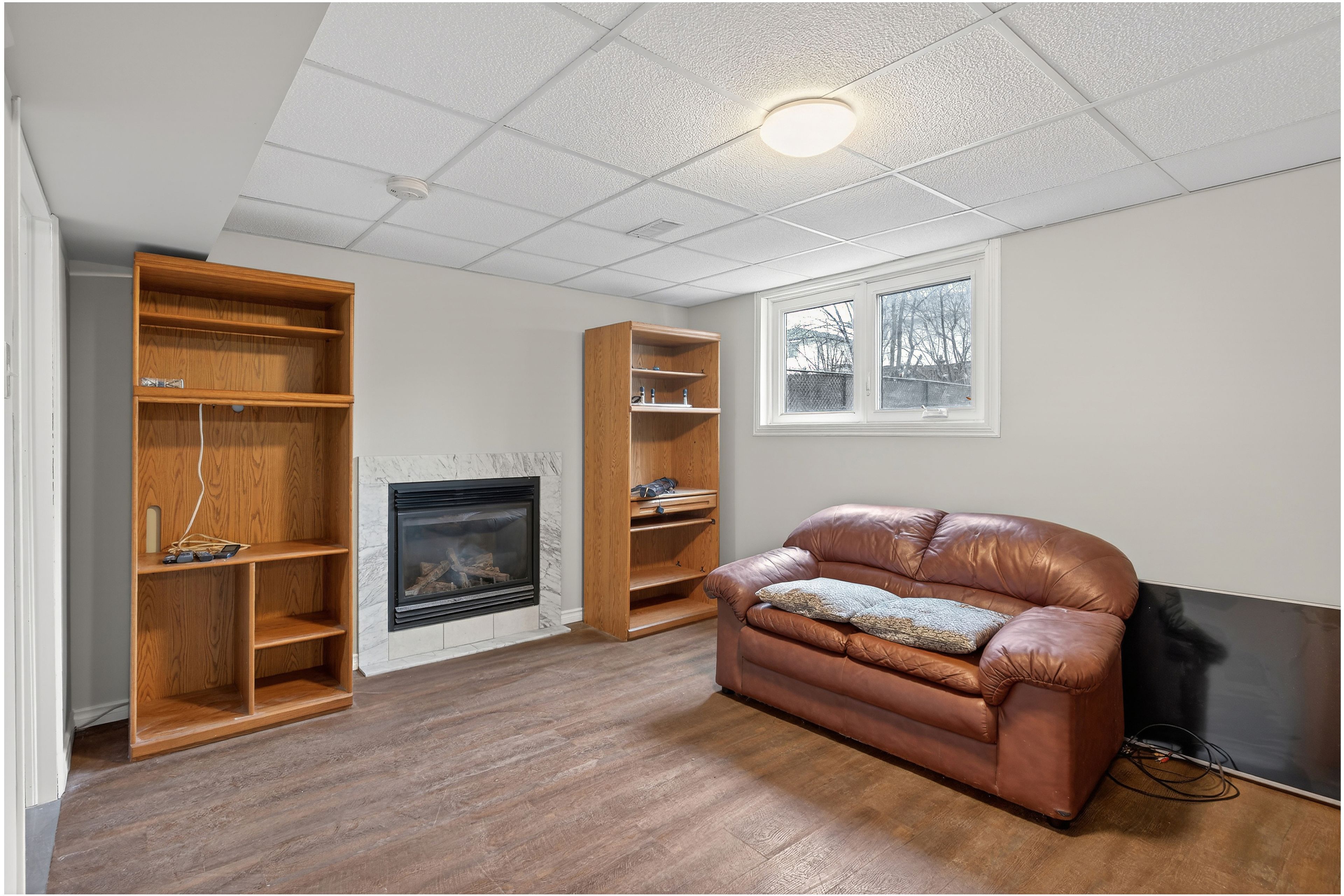 This unique and thoughtfully designed home offers exceptional versatility, featuring a fully accessible lower-level suite ideal for individuals with mobility needs or multigenerational living. With its own private entrance through the garage, the one-bedroom unit provides level, stair-free access and includes a spacious bedroom equipped with a hoyer lift for added safety and convenience. The accessible washroom features a roll-in shower, while a cozy gas fireplace with a remote control enhances comfort in the living space. A well-appointed galley kitchen offers ample cabinetry, and the easily accessible laundry room adds to the suite's functionality. For added peace of mind, the furnace is equipped with a safety device that shuts off airflow in the event of smoke, providing valuable extra time to exit. This professionally renovated unit has been reviewed by both city and fire officials. Upstairs, the main floor boasts a bright and welcoming layout with a sun-filled kitchen featuring a walk-out to a deck overlooking the backyard and patio-perfect for relaxing or entertaining. The main level also includes a spacious living room and three well-sized bedrooms. The home is complete with a double concrete driveway and is ideally located in a central, family-friendly neighbourhood, just minutes to highways 407 and 401, with shopping and transit close by. A nearby wooded area with walking trails adds to the charm of this desirable location. Additional features include leaf guards for low-maintenance living. This is truly a special property offering comfort, accessibility, and convenience in one exceptional package.