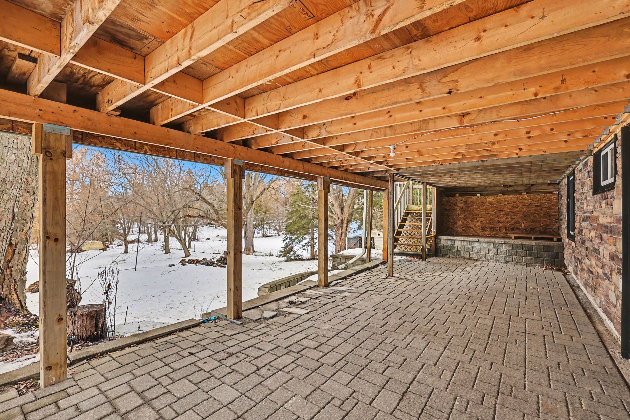 Country serenity meets city convenience in columbus discover the perfect blend of tranquility and modern living in this beautifully updated bungalow, nestled on a spectacular 100' x 360' lot. Backing onto a scenic stream and surrounded by mature trees, this property is a private sanctuary and a true haven for nature lovers. The main level features a sun-filled living room, a spacious kitchen, and two comfortable bedrooms. The finished walk-out basement expands your living space with a large recreation room, an additional bedroom, and a full bathroom-ideal for guests or an in-law suite. Enjoy peaceful mornings on the expansive rear deck or entertain on the patio. With a functional mudroom providing direct access to the garage and deck, and situated just minutes from brooklin, the 407, and top-tier amenities, this is a rare opportunity to own a piece of paradise.