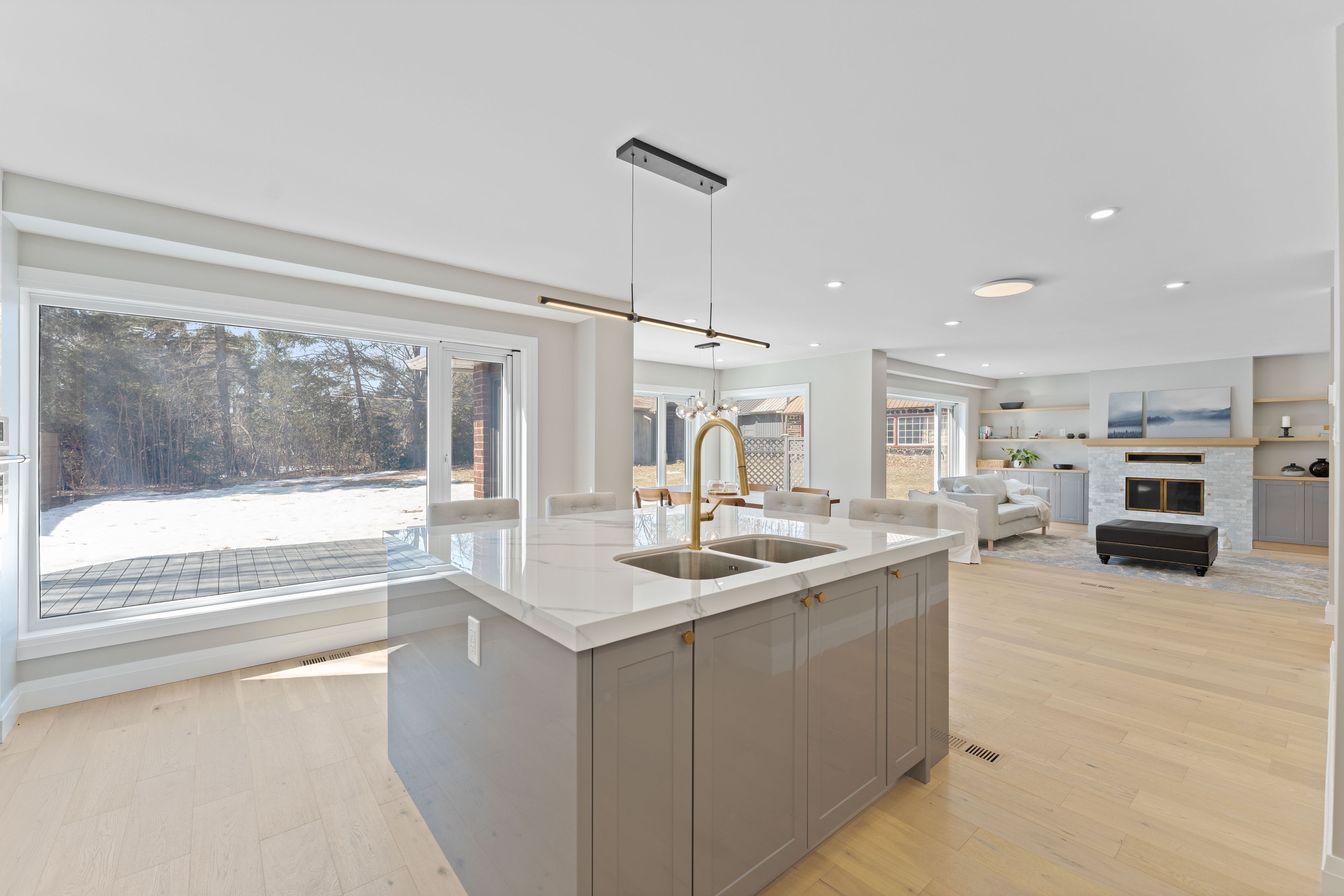 Wow! A rare find in hearts desire ! Discover this fully renovated 5 bed, 4 bath executive home on a massive 93 x 238feet estate lot across from park setting, a truly unique opportunity in one of ottawa's most family friendly communities. Every detail of this property has been redefined for modern living, combining high end finishes, thoughtful design, and incredible outdoor space. Inside, you'll find rich hardwood floors, custom trim work, designer lighting, and a bright open layout that feels both spacious and inviting. The chef's kitchen steals the show with its oversized island, sleek cabinetry, quartz surfaces, and premium stainless steel appliances, perfect for cooking, gathering, and entertaining. Sun filled living and dining areas overlook a private, tree lined backyard offering peace and privacy. Upstairs, the primary suite is a true retreat with a spa inspired ensuite and custom walk-in closet. Three additional bedrooms are beautifully appointed and share an elegant main bath. The finished lower level features a cozy and large family room, guest bedroom, full bath, laundry, and loads of storage. Step outside to experience the property's standout feature, one heated, 2 powered outbuildings, ideal for a studio, gym, workshop, home office, or future coach house. Surrounded by majestic trees, new fencing, a new paved driveway, and an oversized double garage. Close to parks, trails, top schools, and shopping, this is luxury, space, and serenity all in one!