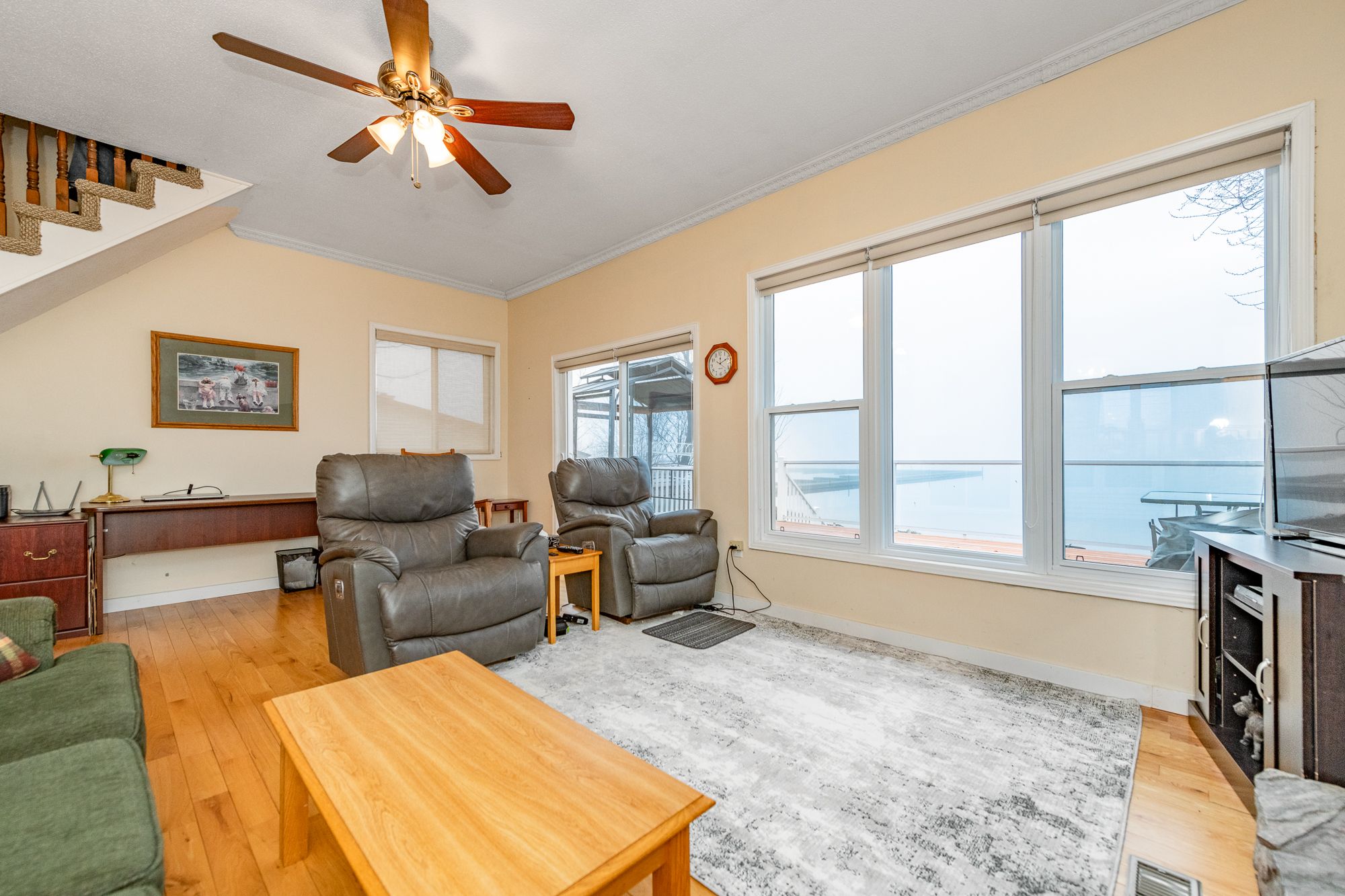 This stunning lakefront property on the mississippi river on highly sought after coleman's shore, just minutes from carleton place, offers a perfect blend of comfort, style, and waterfront living. The main level features hardwood floors, elegant crown molding, and an open-concept layout highlighted by a sunken family room with a beautiful fireplace. The recently updated kitchen includes granite countertops and great workspace, making it ideal for cooking and entertaining. Enjoy crystal-clear, weed-free water with a sandy and rocky bottom-perfect for swimming, boating, and fishing-along with incredible sunset views over the lake. The main floor also includes an office and a full bathroom with a shower. Step outside to a large deck with modern glass railings, providing an ideal space to relax and take in the peaceful surroundings. Upstairs, spacious bedrooms offer comfort for family or guests. A good sized guest cabin adds versatility, featuring a sliding patio door that leads to a private deck for two overlooking the water. Two storage sheds and an aluminum dock add convenience and functionality, while a propane generac system provides reliable whole-home backup power. This property offers an exceptional year-round lifestyle with unbeatable waterfront access and natural beauty.