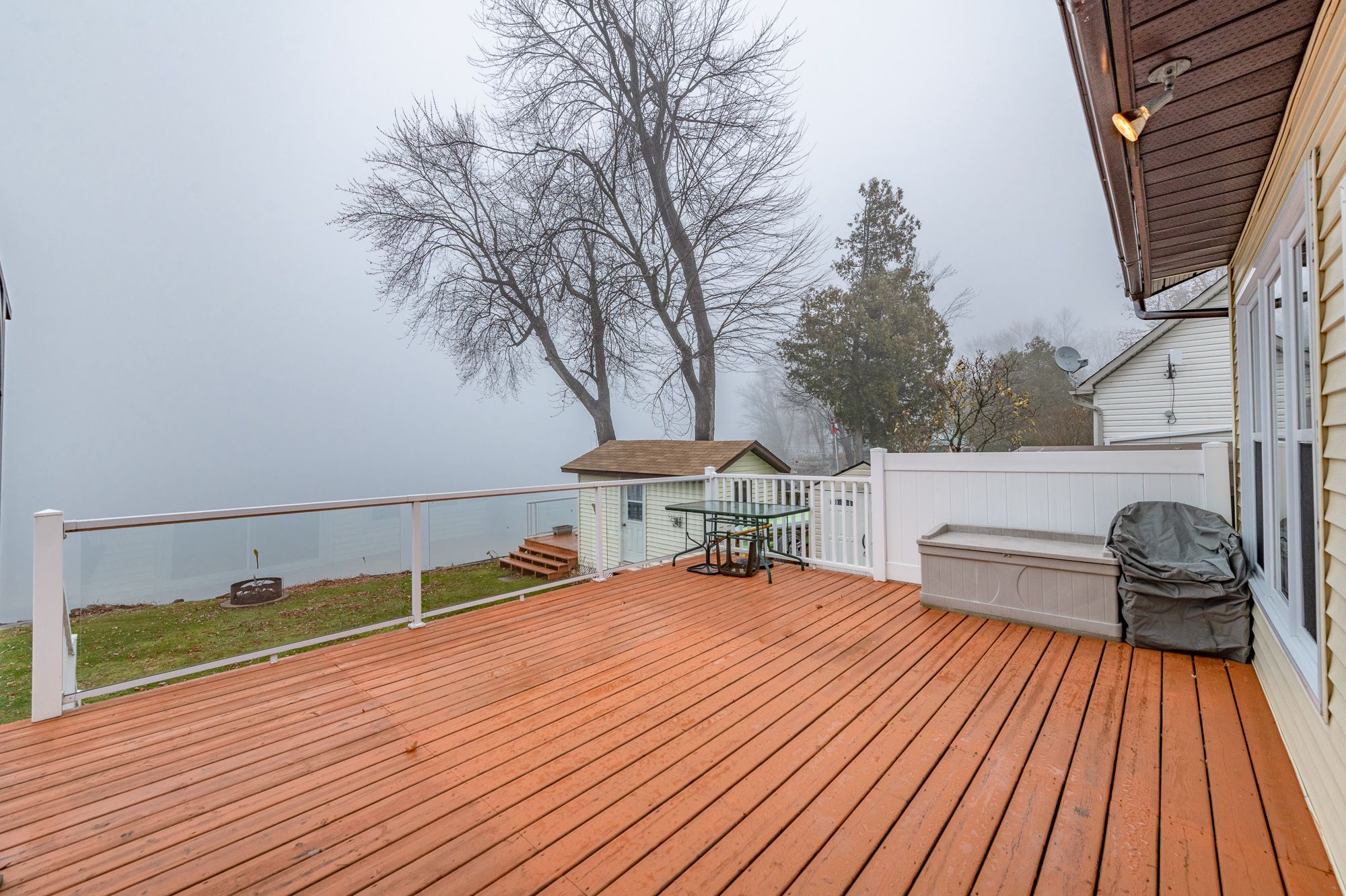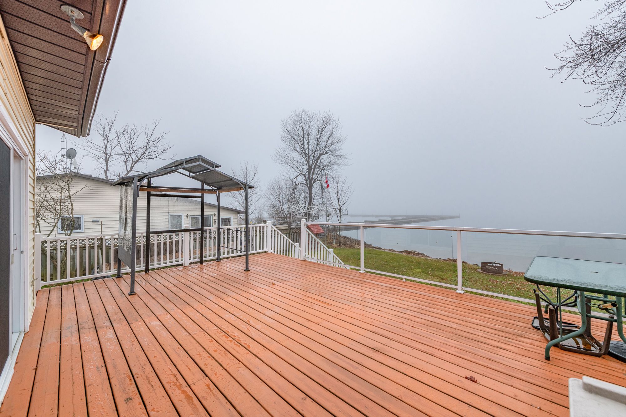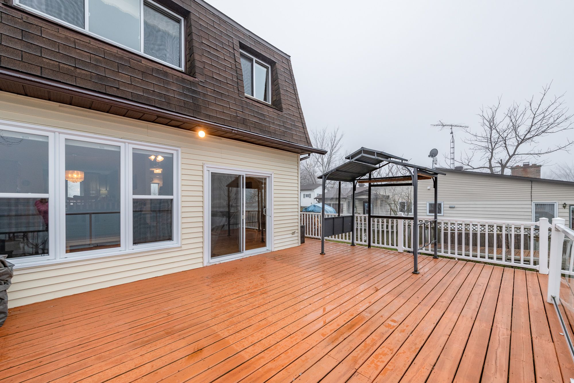 • Large deck with modern railings, ideal for relaxation and views.
