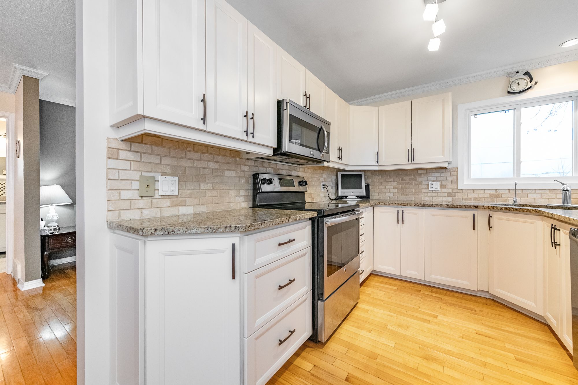 • Updated kitchen with granite countertops, great for cooking and entertaining.