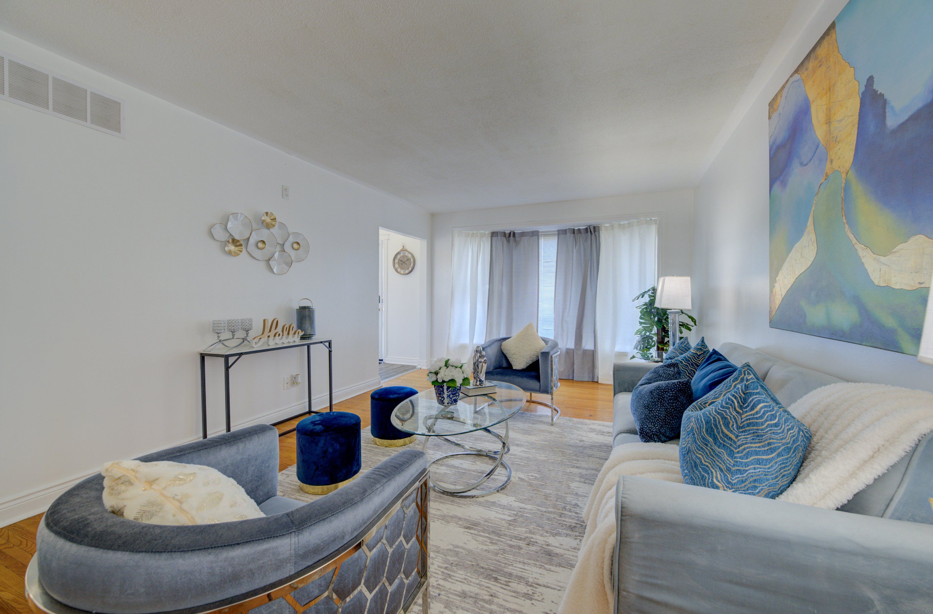 • Spacious living room with large bay window for natural light.