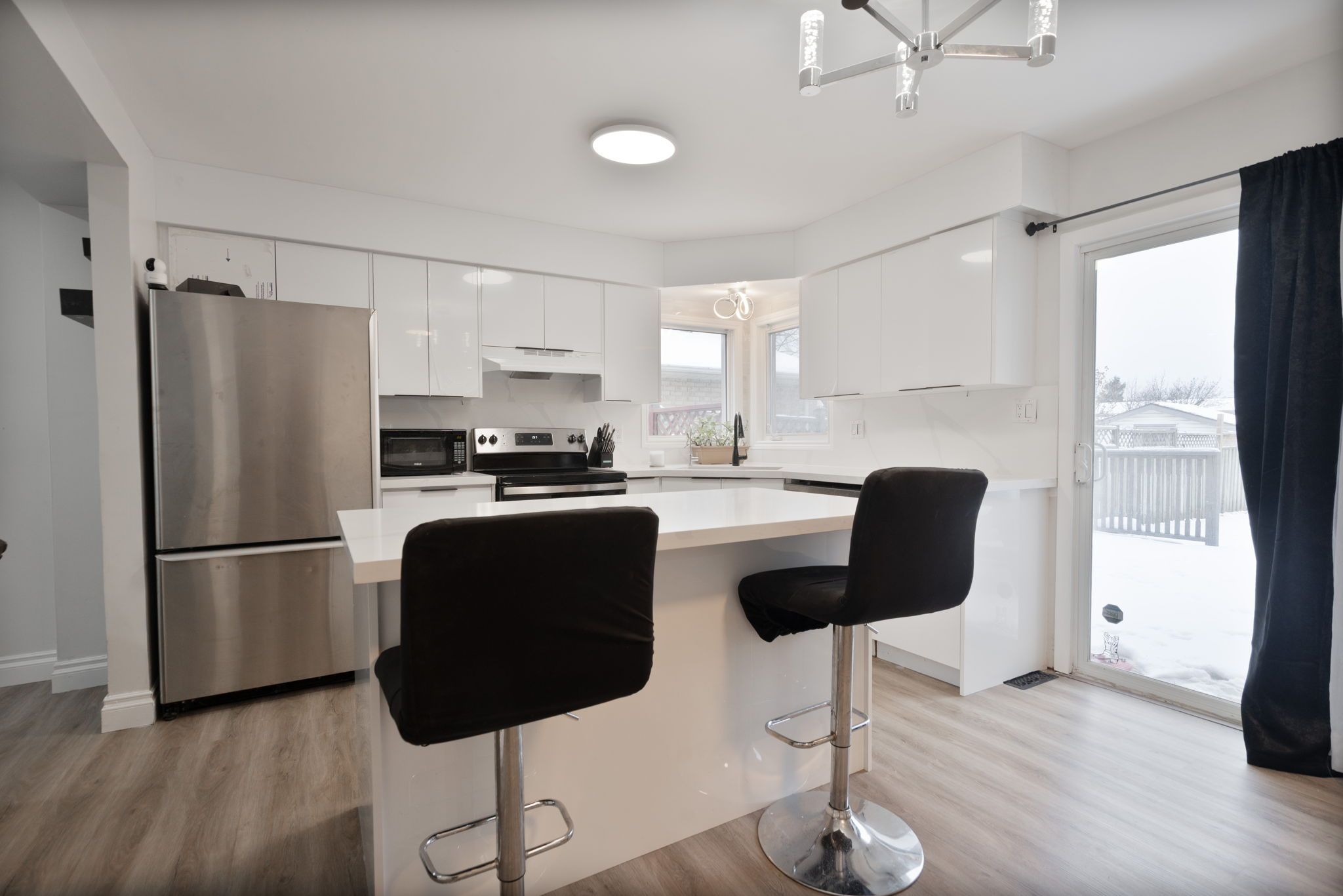 Welcome to 345 banbury crescent, an exceptional two-storey residence in one of london's most desirable neighborhoods. This beautifully updated home offers a warm, inviting atmosphere with modern finishes throughout. The main floor features a bright and stylish layout highlighted by a stunning gourmet kitchen with quartz countertops, a generous island, sleek vinyl flooring, and abundant natural light, along with a separate dining room perfect for hosting family dinners and special occasions. A fully renovated full bathroom with a luxurious glass walk-in shower adds rare convenience on the main level. Upstairs offers three spacious bedrooms and a second upgraded full bathroom with another elegant glass shower. The lower level provides a partially finished basement offering valuable additional living space. Outside, the large, fully fenced backyard serves as a private retreat with a spacious deck and charming gazebo ideal for relaxing or entertaining. Located close to shopping centers, schools, victoria hospital, and highway 401, this move-in-ready home is meticulously maintained and truly stands out- don't miss your chance to make it yours.
