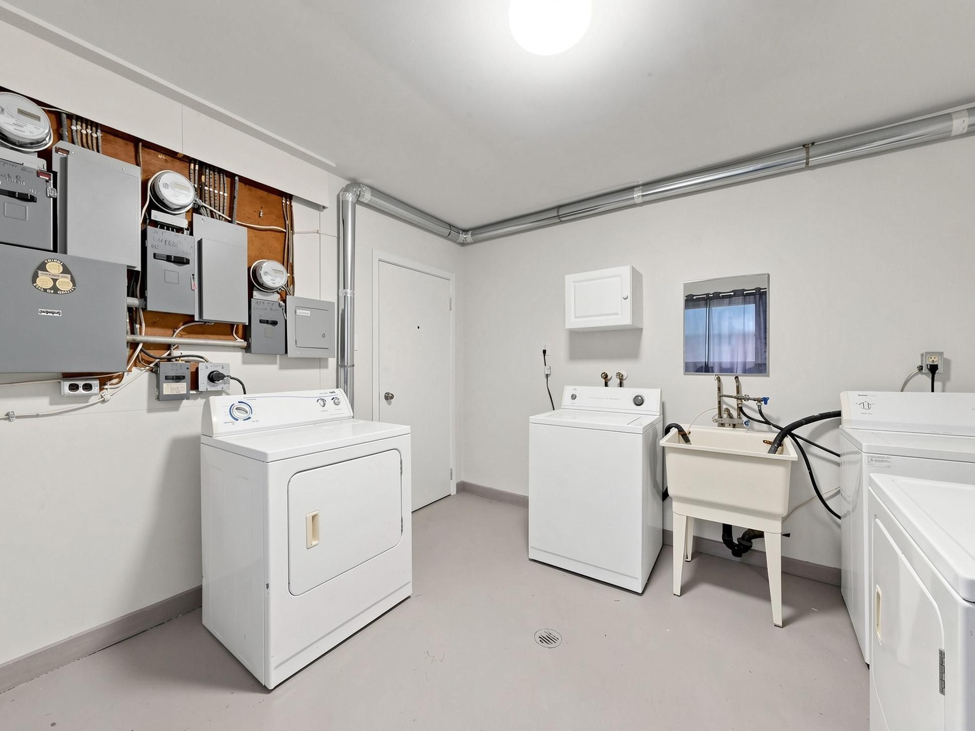 • Common laundry room equipped with multiple washer/dryer sets.