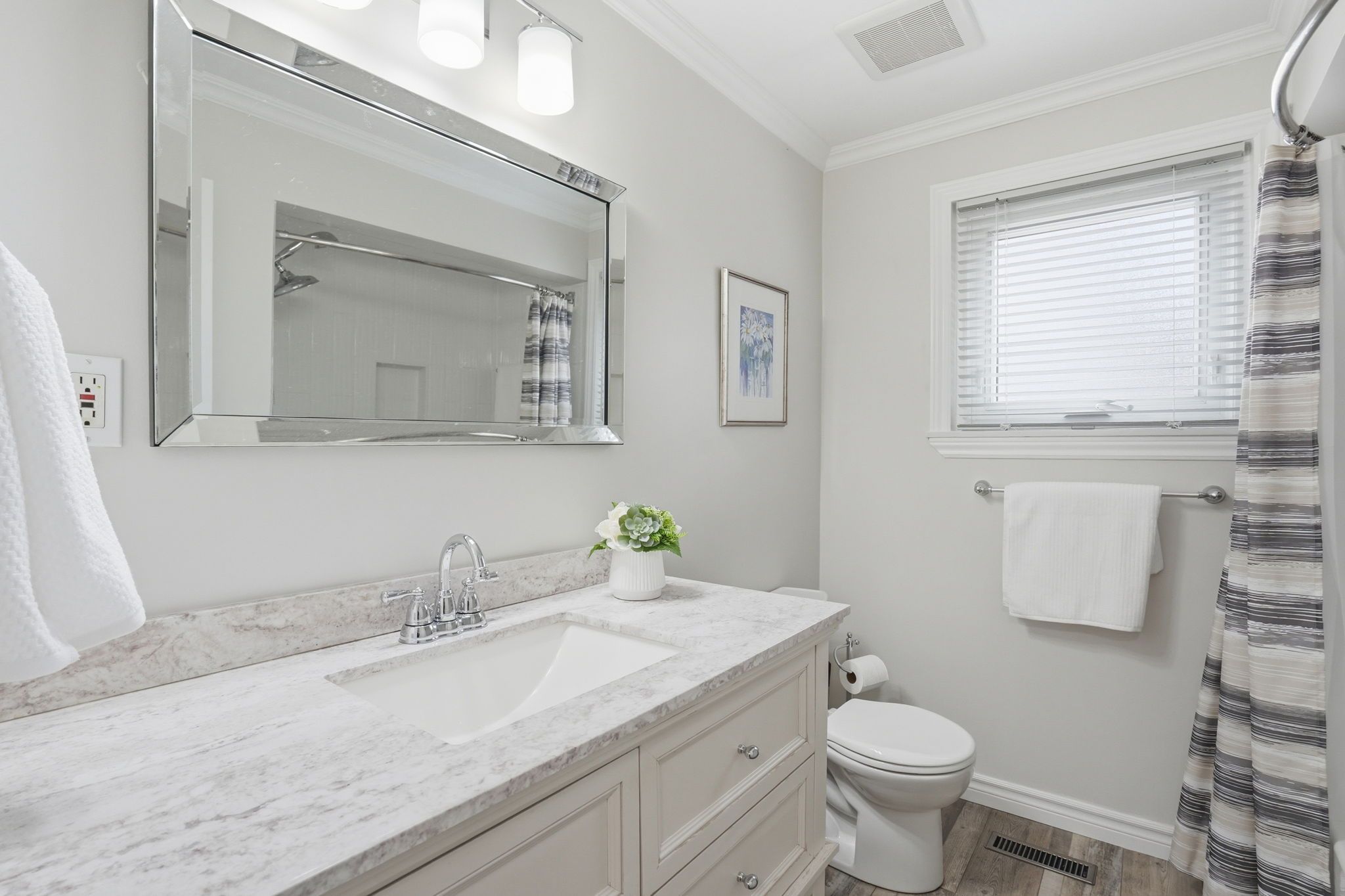 • Bright main level with new hardwood flooring and fresh paint.