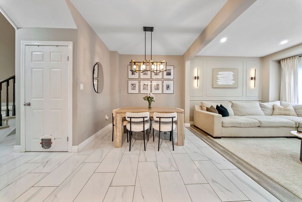 • Open-concept main floor with elegant hardwood and porcelain flooring.