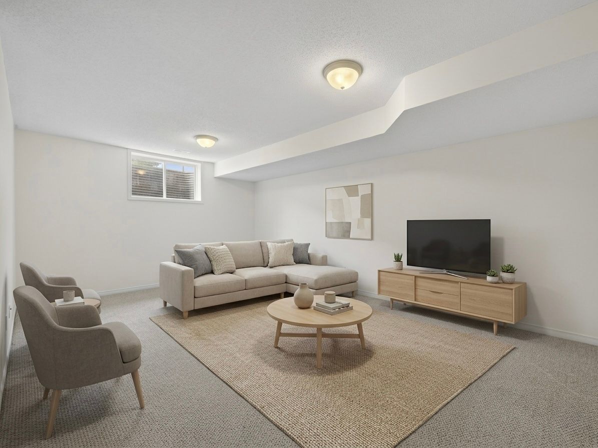 **open house sunday mar 29 2-4pm** welcome to 345 nonius street, a lovely 3 bedroom townhome by cardel homes in a fantastic, family friendly neighbourhood of blackstone community. Stepping into the spacious foyer you will appreciate the open-concept floor plan highlighted by 9-ft ceilings and hardwood flooring. Recent updates include a freshly painted interior, smooth ceilings and refinished hardwood throughout the main level. The main level flows effortlessly from the inviting living and dining areas into a beautiful kitchen, complete with quartz countertops, stainless steel appliances, ample cabinetry and a large size pantry. The 2nd level offers 3 well sized bedrooms and features hardwood flooring throughout. The primary bedroom serves as a true sanctuary, boasting a massive walk-in closet and a 5-piece luxury ensuite with a soaker tub and a glass-enclosed shower. Two additional generous bedrooms, a full secondary bathroom, and the conveniently located second-floor laundry room complete this level. The fully finished basement provides that essential extra space perfect for a bright home office, gym, or a media room for family movie nights. The backyard is fully fenced & offers privacy. You are just steps away from the trans canada trail and multiple parks and schools. | some photos have been virtually staged |