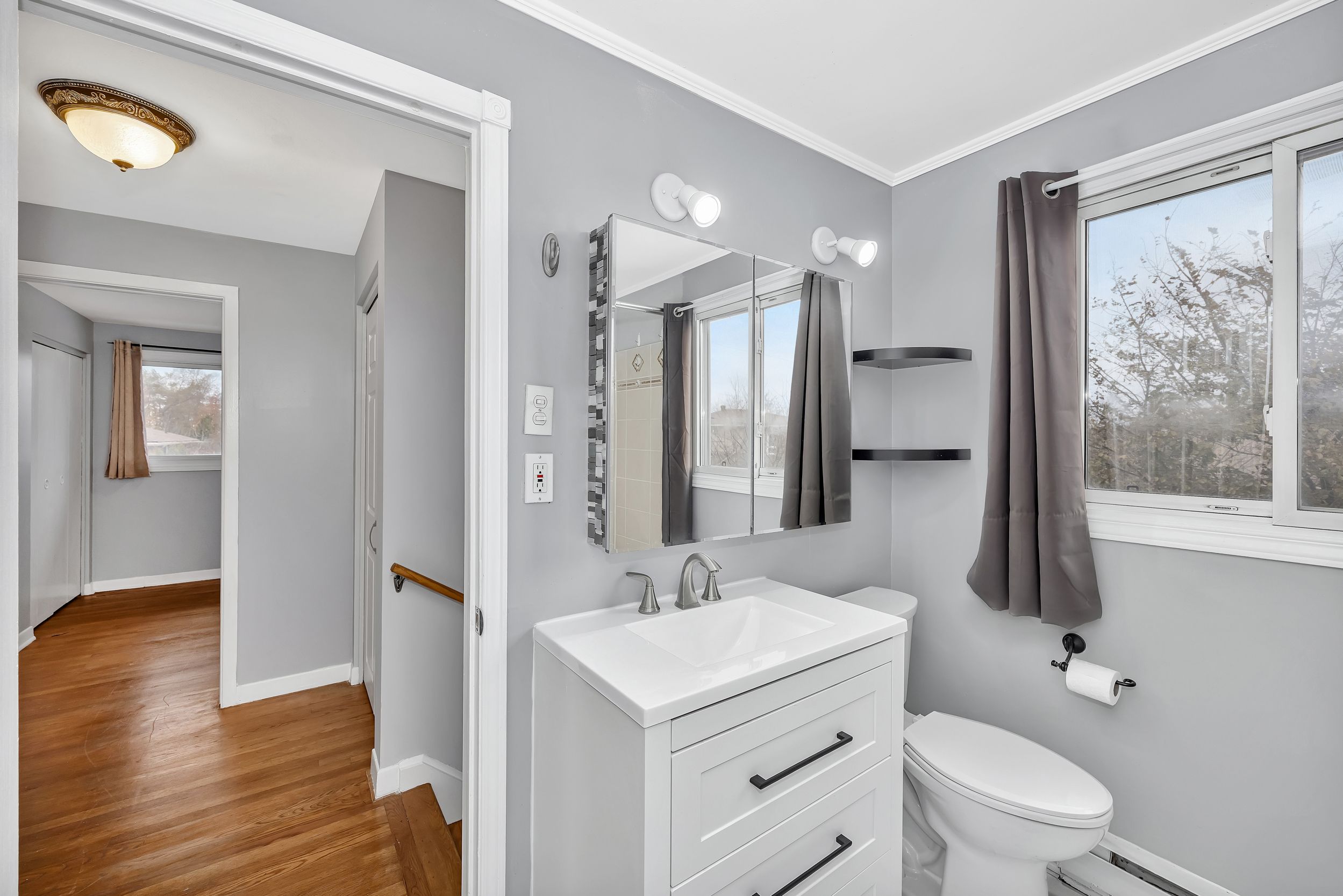 *oh sat march 28, 12 - 2pm* lovingly maintained by the same owner for over 25 years, this beautiful semi-detached home in the heart of britannia exudes warmth and pride of ownership. The main floor features hardwood floors and elegant crown moulding in the living and dining rooms, while a large west-facing window fills the space with natural light. The updated kitchen offers quartz counters, oak cabinetry, tiled floor, modern backsplash, and plenty of prep space, plus a sunny window perfect for growing herbs. A full bathroom on the main level adds convenience. Upstairs, find three spacious bedrooms with smooth ceilings, great closets, and gleaming hardwood floors. The second full bathroom includes tiled floors, a linen closet, new vanity, and a tub/shower combo. The finished basement offers a cozy rec room with laminate flooring and built-in bookshelves. Outside, enjoy a fenced backyard ideal for gardening or relaxing, with side door access. Steps to britannia beach, farm boy, shoppers, and near the kichi zibi mikan parkway with walking and biking trails. A perfect blend of comfort, charm, and convenience!