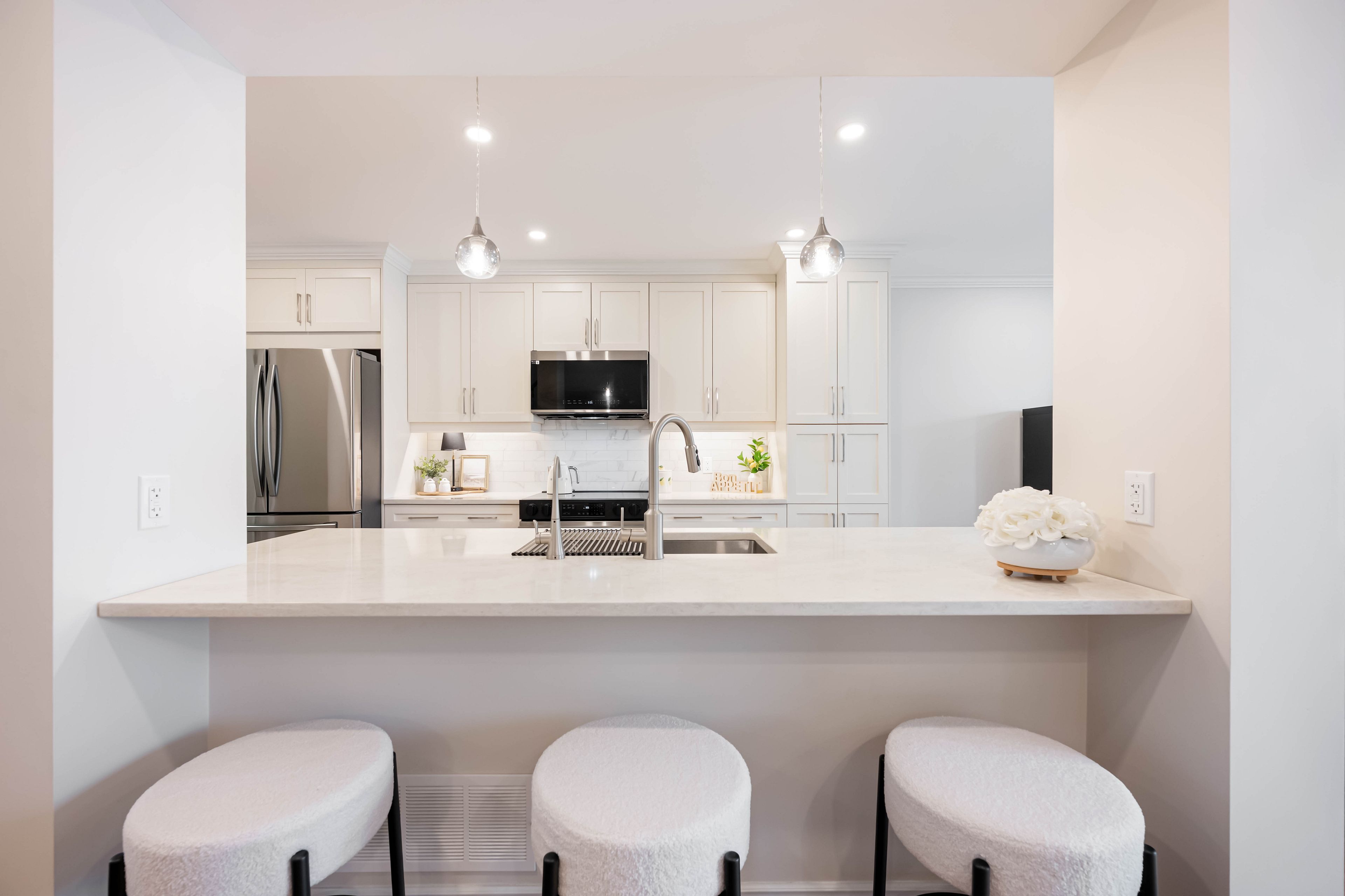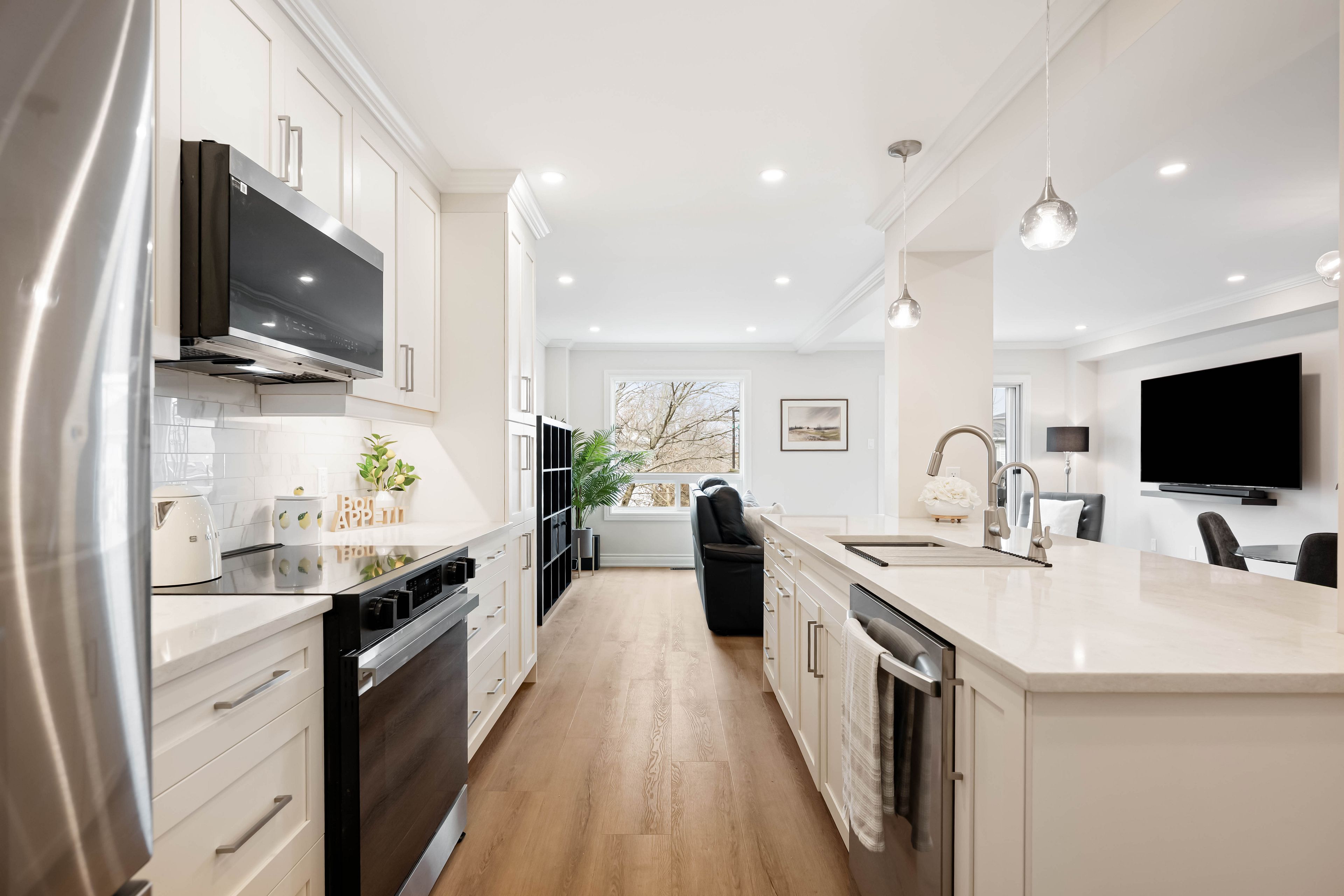 • Stunning kitchen features quartz countertops and stainless steel appliances.