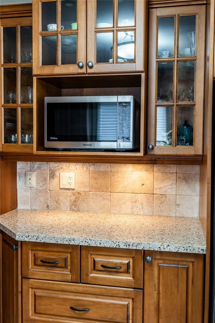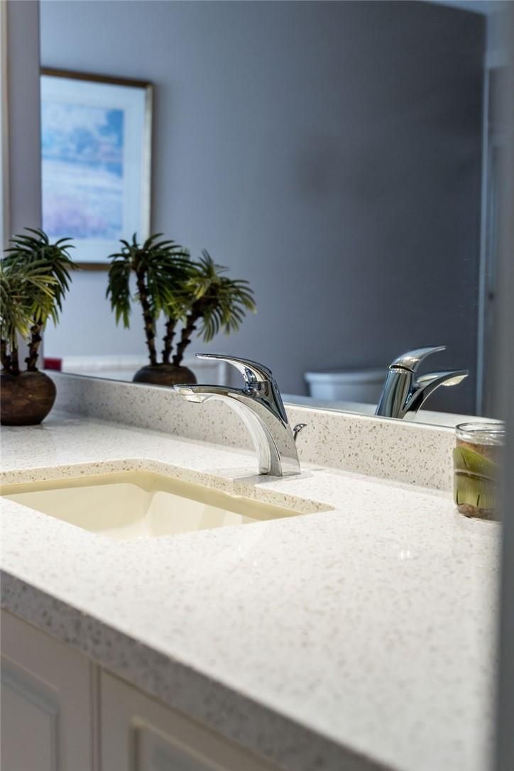 • Spacious kitchen featuring updated quartz countertops and stainless appliances.