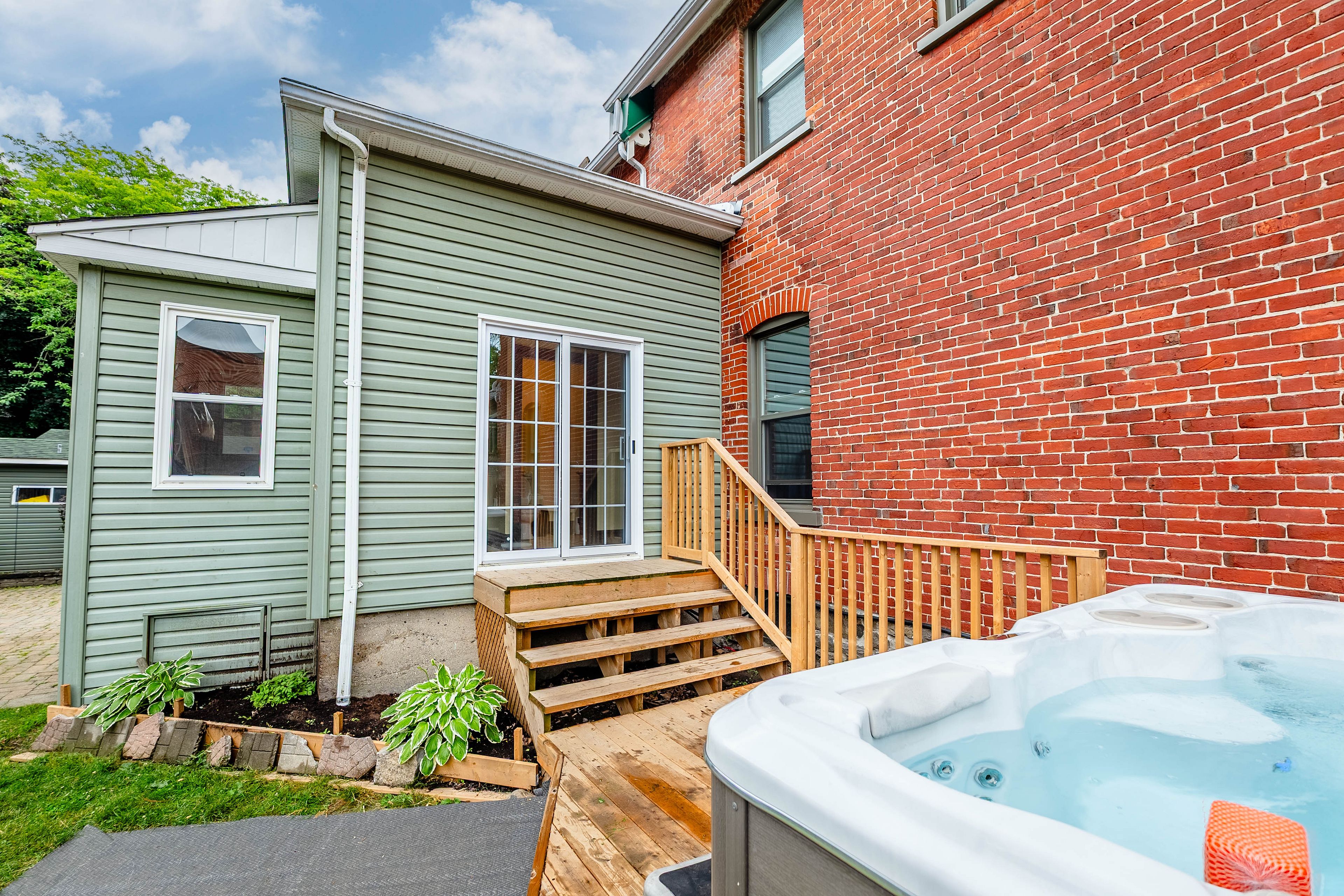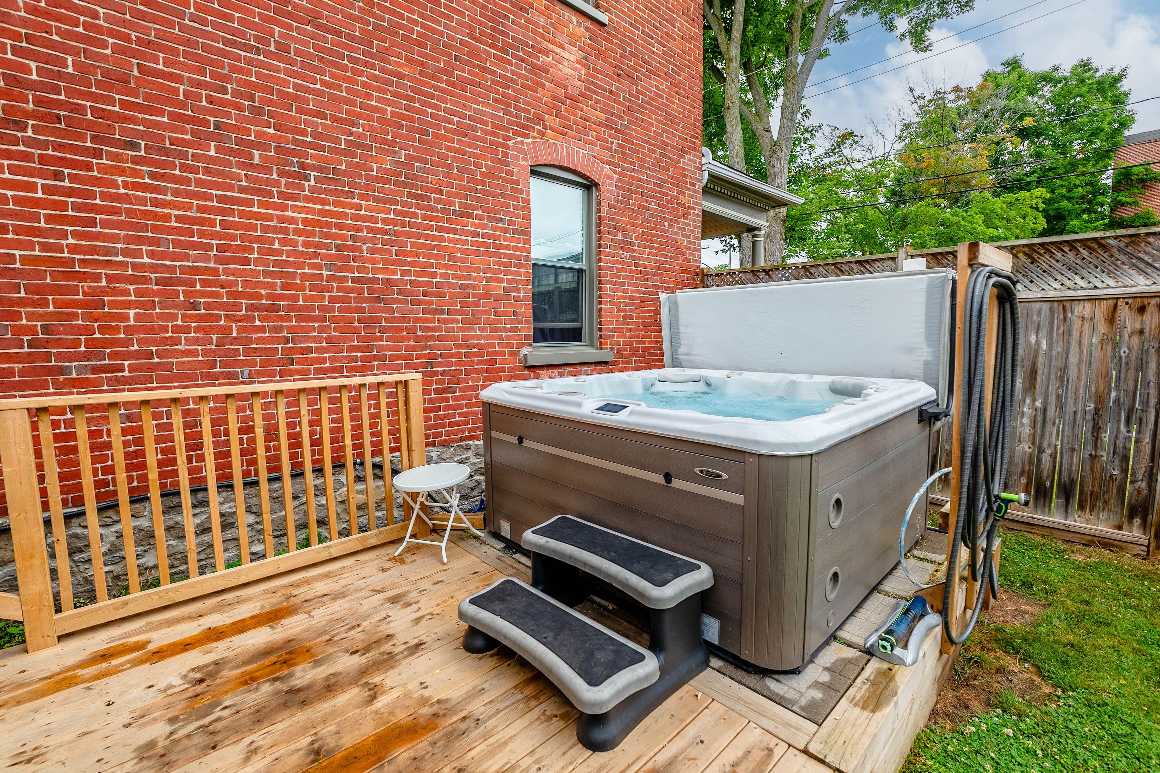 • Fenced yard with a hot tub and deck for outdoor relaxation and gatherings.