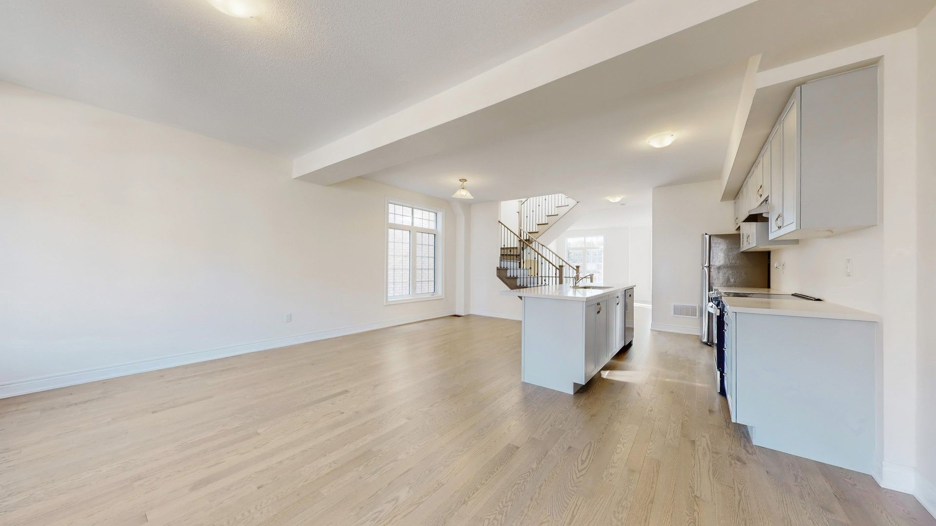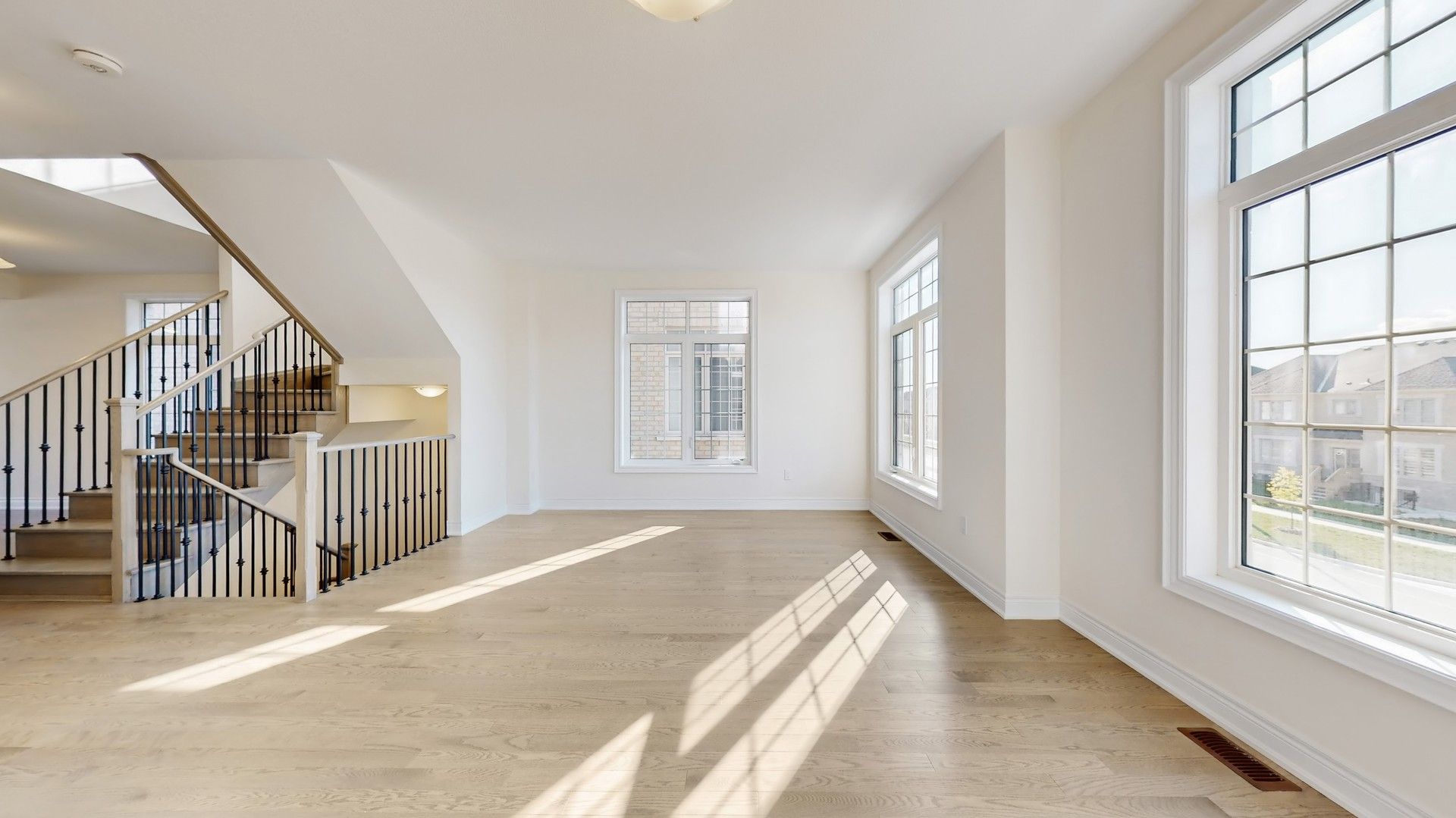 Never lived in, brand new end unit townhome with extra wide double car garage, 2 driveway parking spaces, and direct access to the living area! This 2,440 sq. Ft. Home features 9 ft ceilings and large windows throughout, filling the space with natural light and a grand, airy feel. Spacious great room, with potential to convert powder room into a 4th bedroom with ensuite. The second floor offers separate living/dining, breakfast, and family areas with walk-out to a terrace. Open concept kitchen with centre island and large breakfast area. Bedroom level laundry with ample storage. Brand new appliances! Upgrades include hardwood floors throughout, matching hardwood staircase with iron pickets, primary bedroom with private balcony, walk-in closet, and 5-piece ensuite, central air conditioning, and caesarstone countertops. Located in a family-friendly neighbourhood close to costco, amazon, home depot, and supermarkets. A must see!