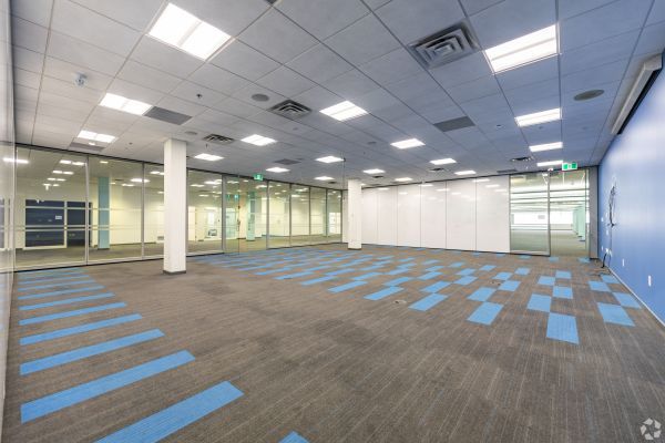 • Turnkey office space with meeting rooms, kitchenette, and open work area.
