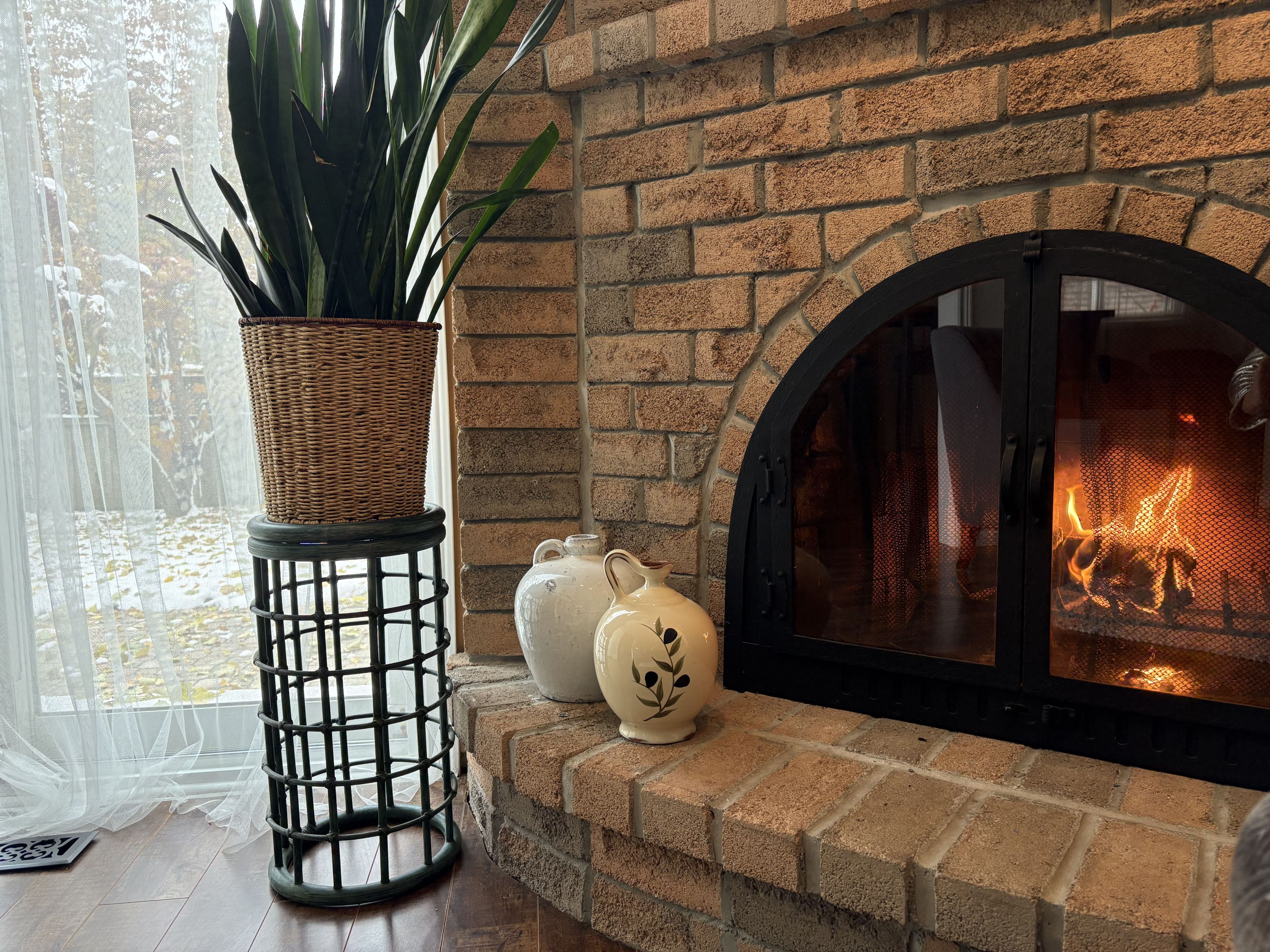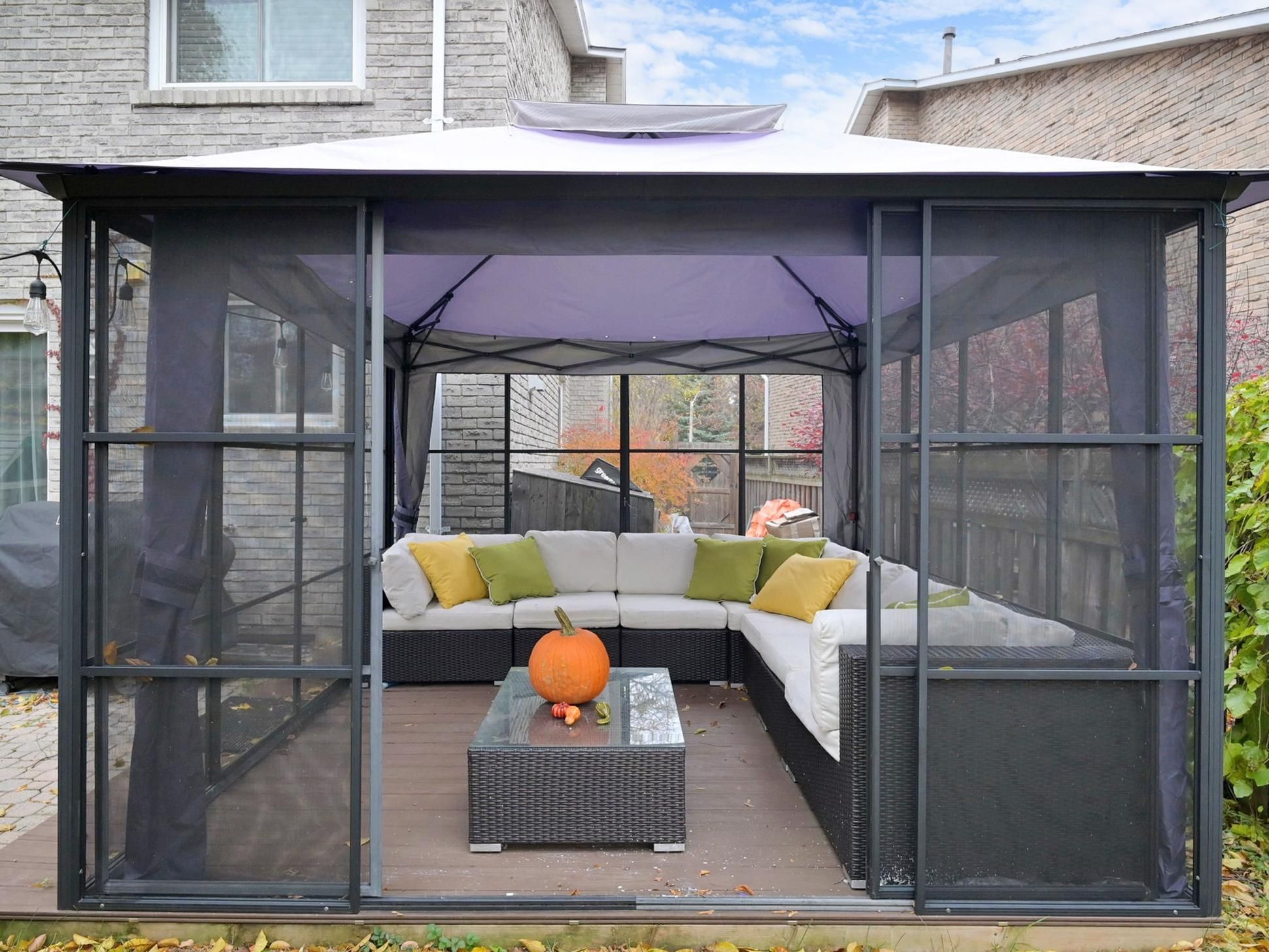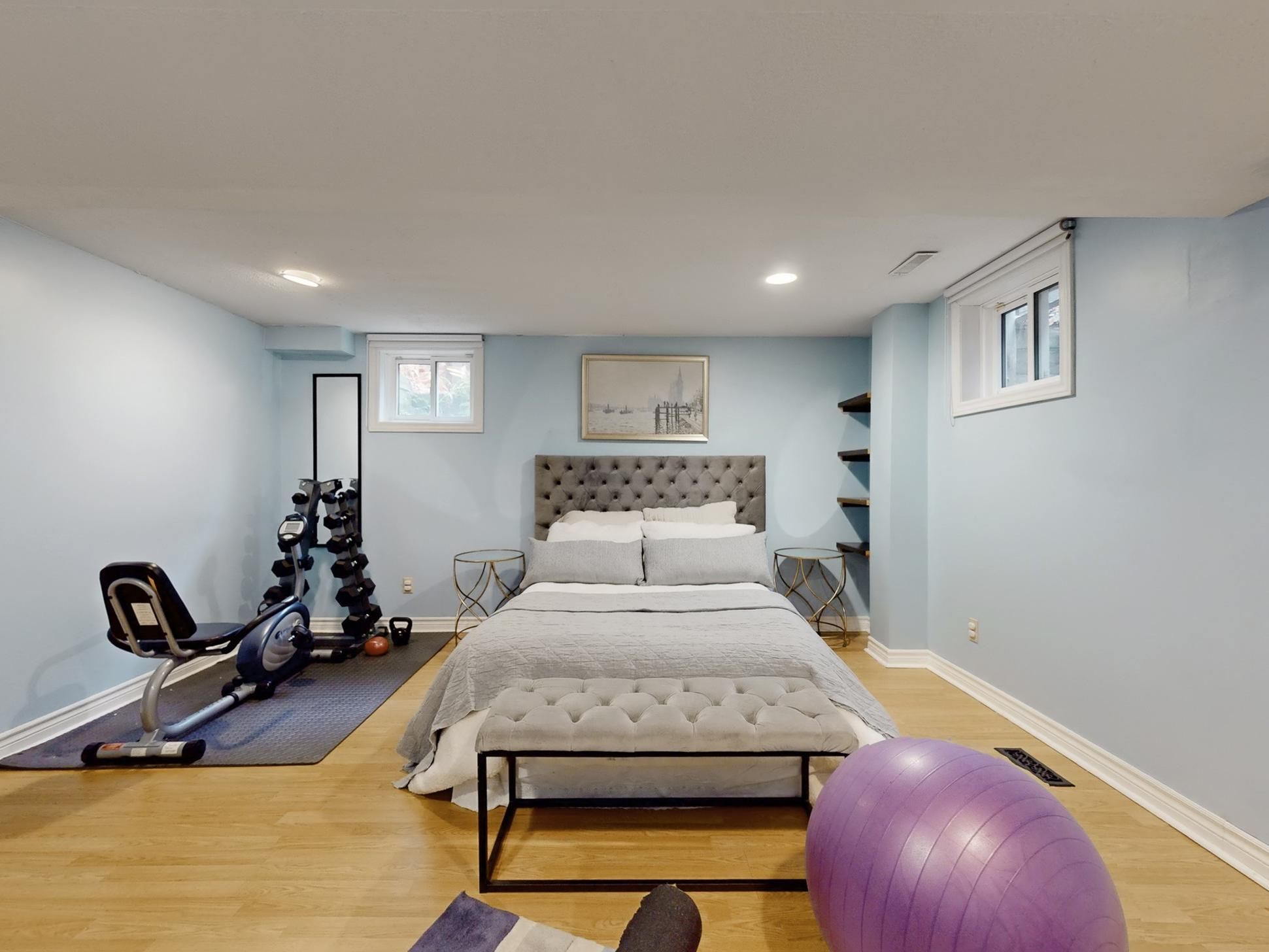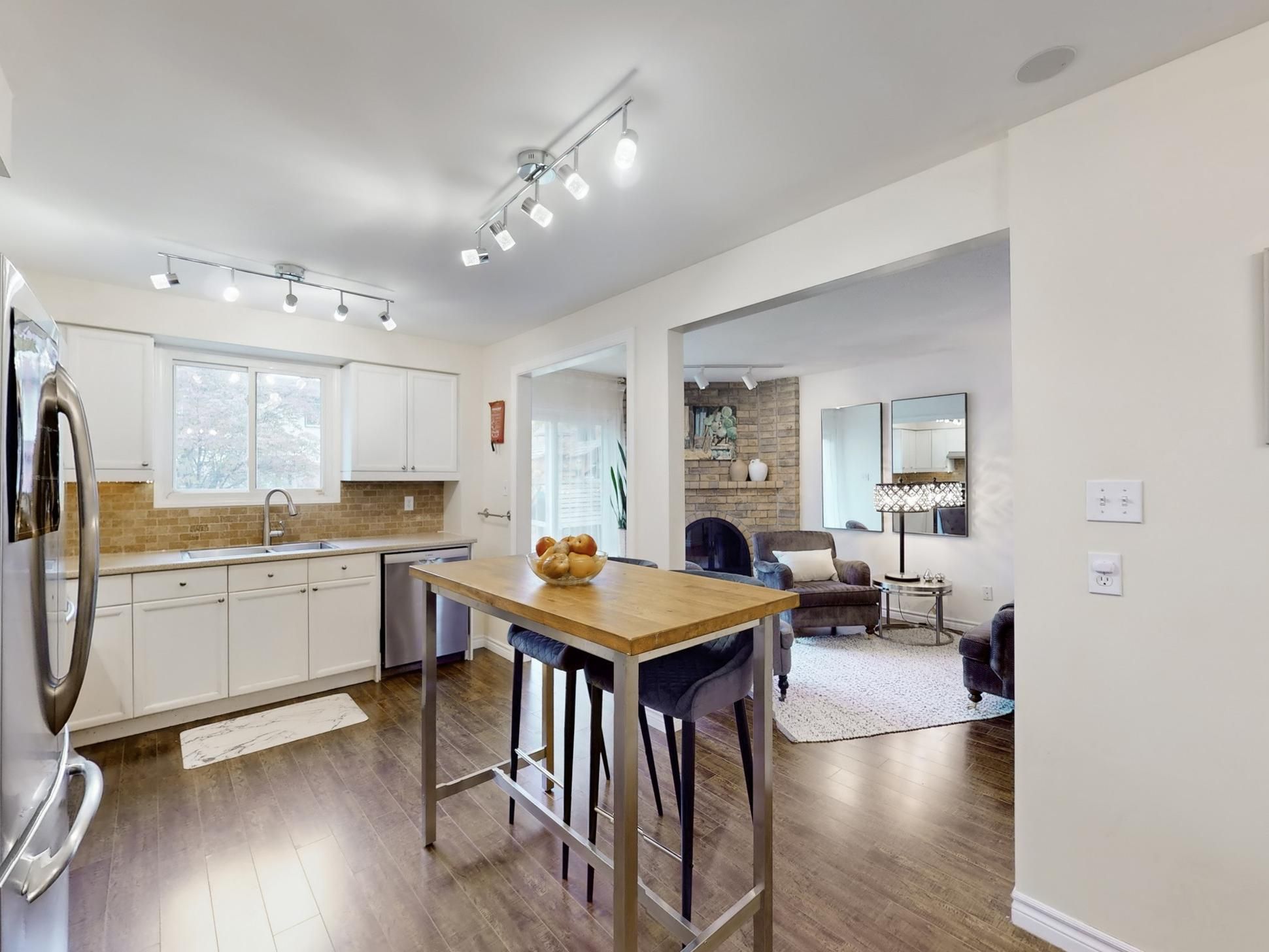 Spacious and inviting detached home on a premium pie-shaped lot! Welcome to this bright, beautifully updated home featuring an oversized 1. 5-car garage, a deep 3-car driveway and a fantastic lot with 39 feet across the back. The formal family room charms with barn doors, a real wood-burning fireplace, and a walk-out to a pool-sized backyard with an interlocked patio, lush greenery, and a children's playground - all included! The open-concept kitchen and dining area are perfect for everyday living and family gatherings. A stunning media room with a 12. 5-ft sloped ceiling, new natural hardwood floors, and a large front window creates the ultimate entertainment space. Upstairs, you'll find three spacious bedrooms and a bright 4-pc bath with a window. The finished basement adds even more living space with a bonus bedroom and lots of storage. No carpet anywhere. Excellent location - just minutes to the go train, hw403, parks, and schools. Popular lansdown park with splash pad nd bike path right across the road. Warm, light-filled, and move-in ready - this home truly has it all.