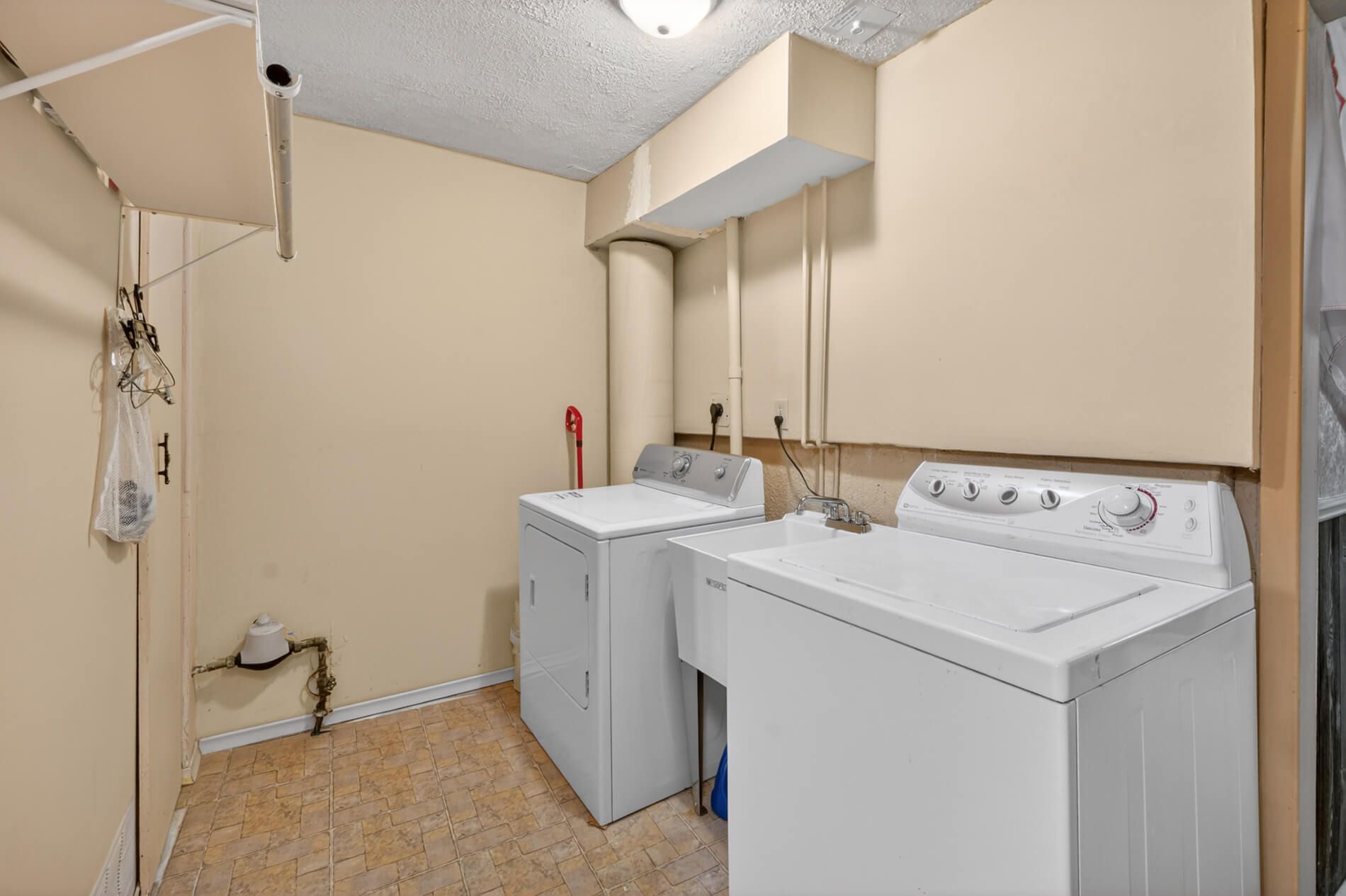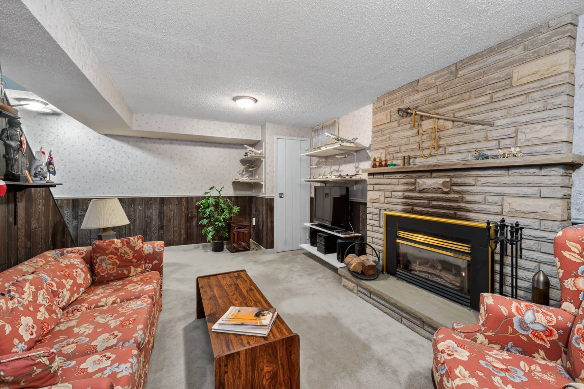 • Finished basement features an open layout with a gas fireplace and wet bar.