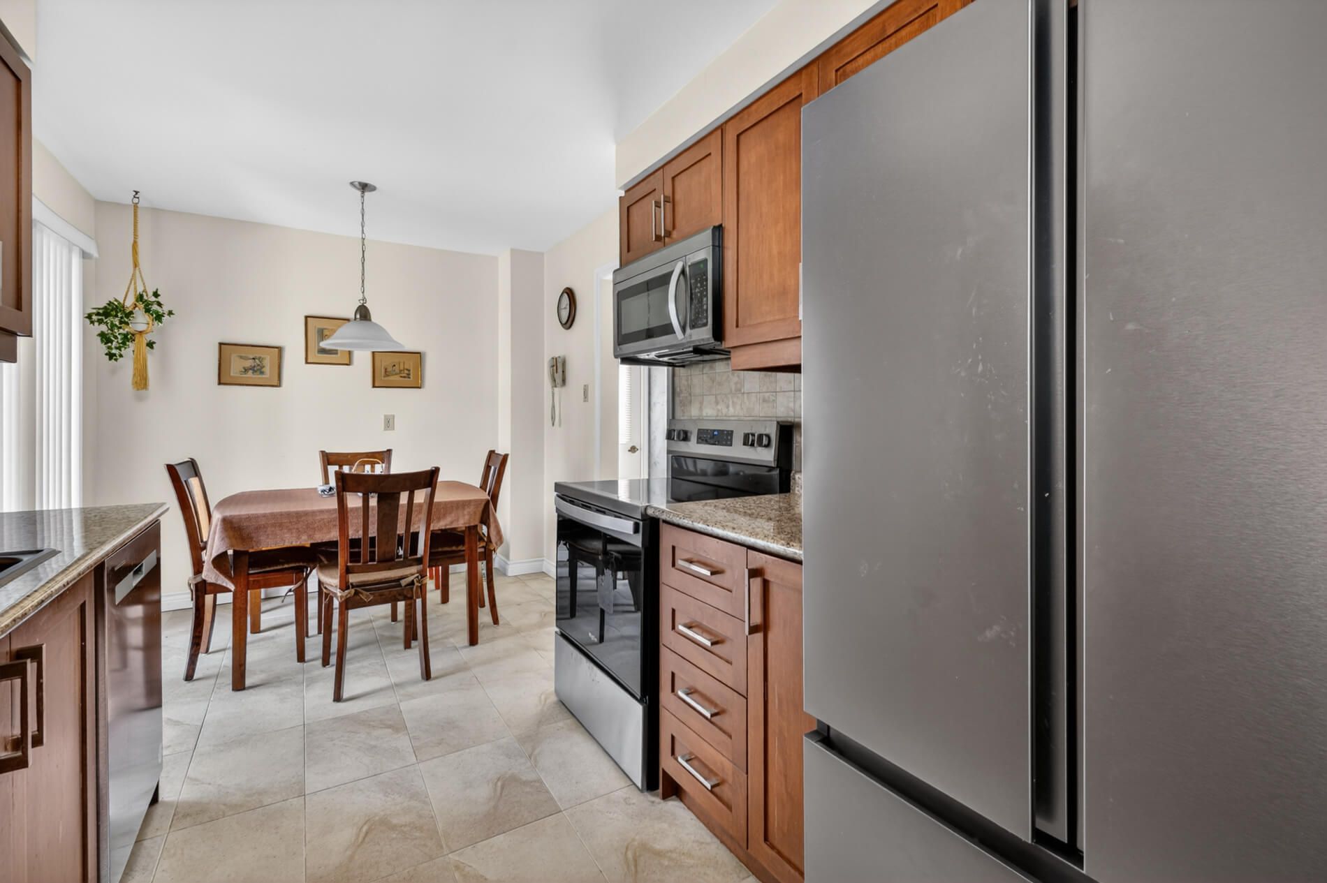 • Spacious kitchen with stainless steel appliances and a bright eat-in area.