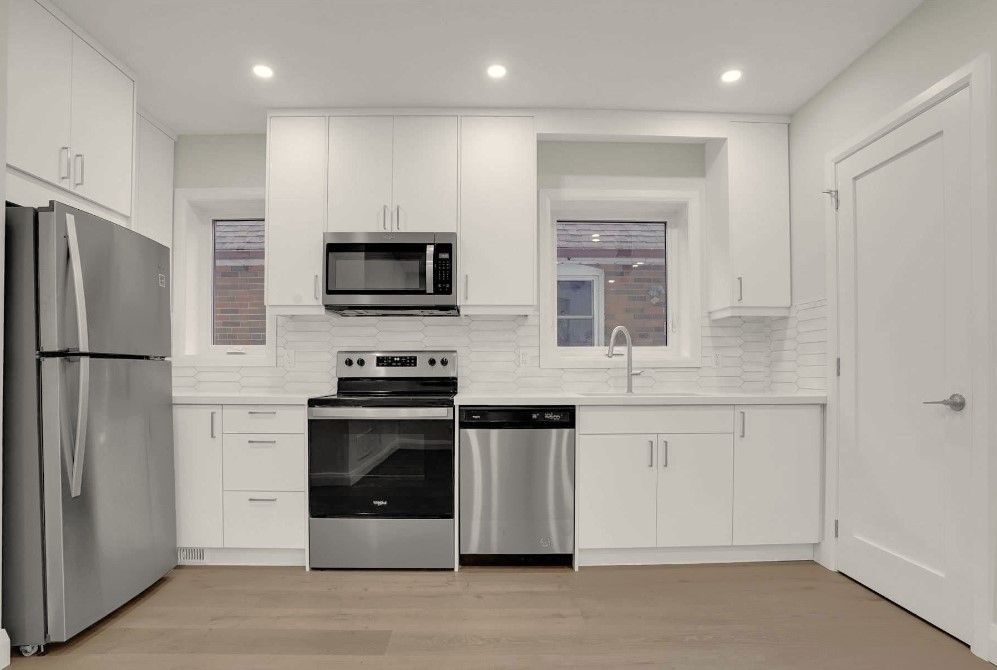 Entire main floor finished w/modern luxury details * bright and airy 9' ceiling height with plenty of pot lights * solid-core room doors to reduce sound transmission * engineered hardwood flooring * spacious additional open living & dining space * stainless steel appliances * stone countertops * tiled backsplash * closets in bedrooms * glass shower * sink w/chrome fixtures * approximately 1100 sq. Ft. * includes private ensuite laundry * walk to parks, schools, transit, shopping, gym, restaurants, groceries, & more *