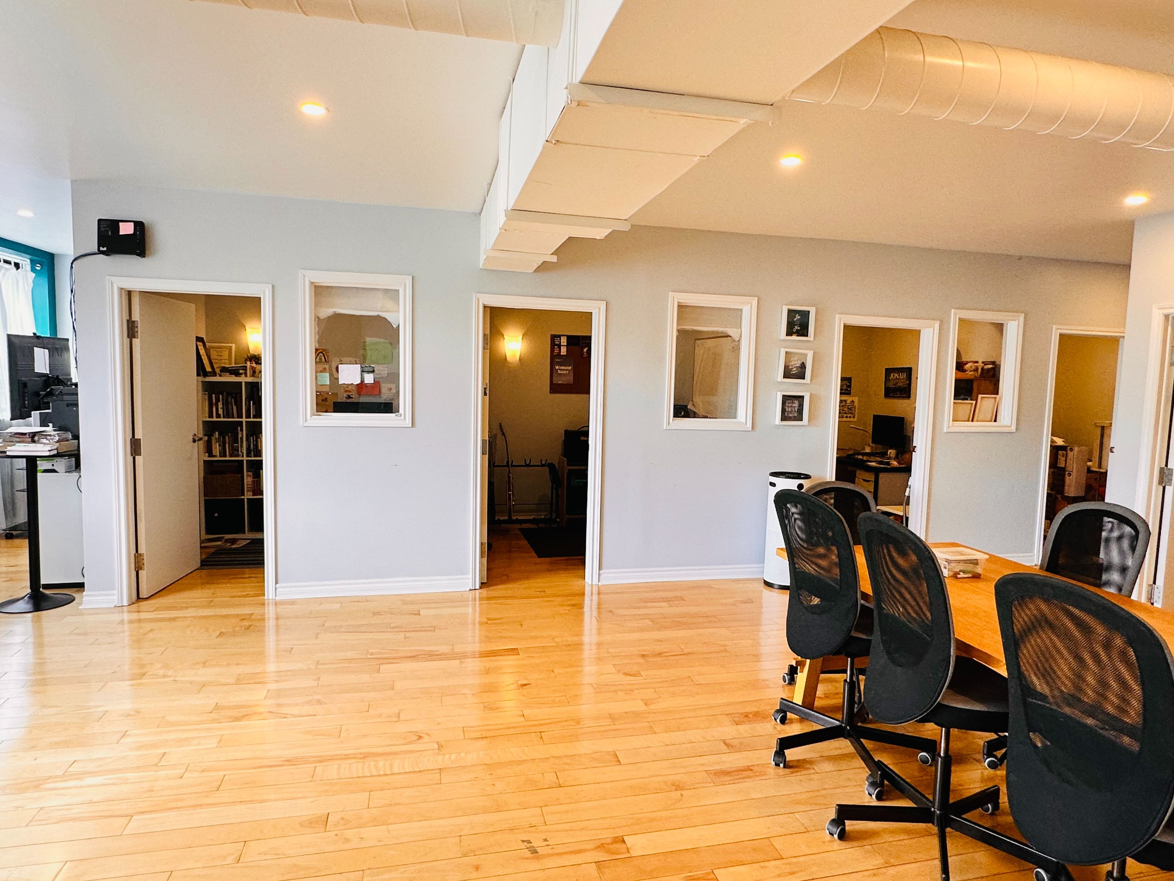 • Flexible layout with 6 offices, storage, board room, and open area.