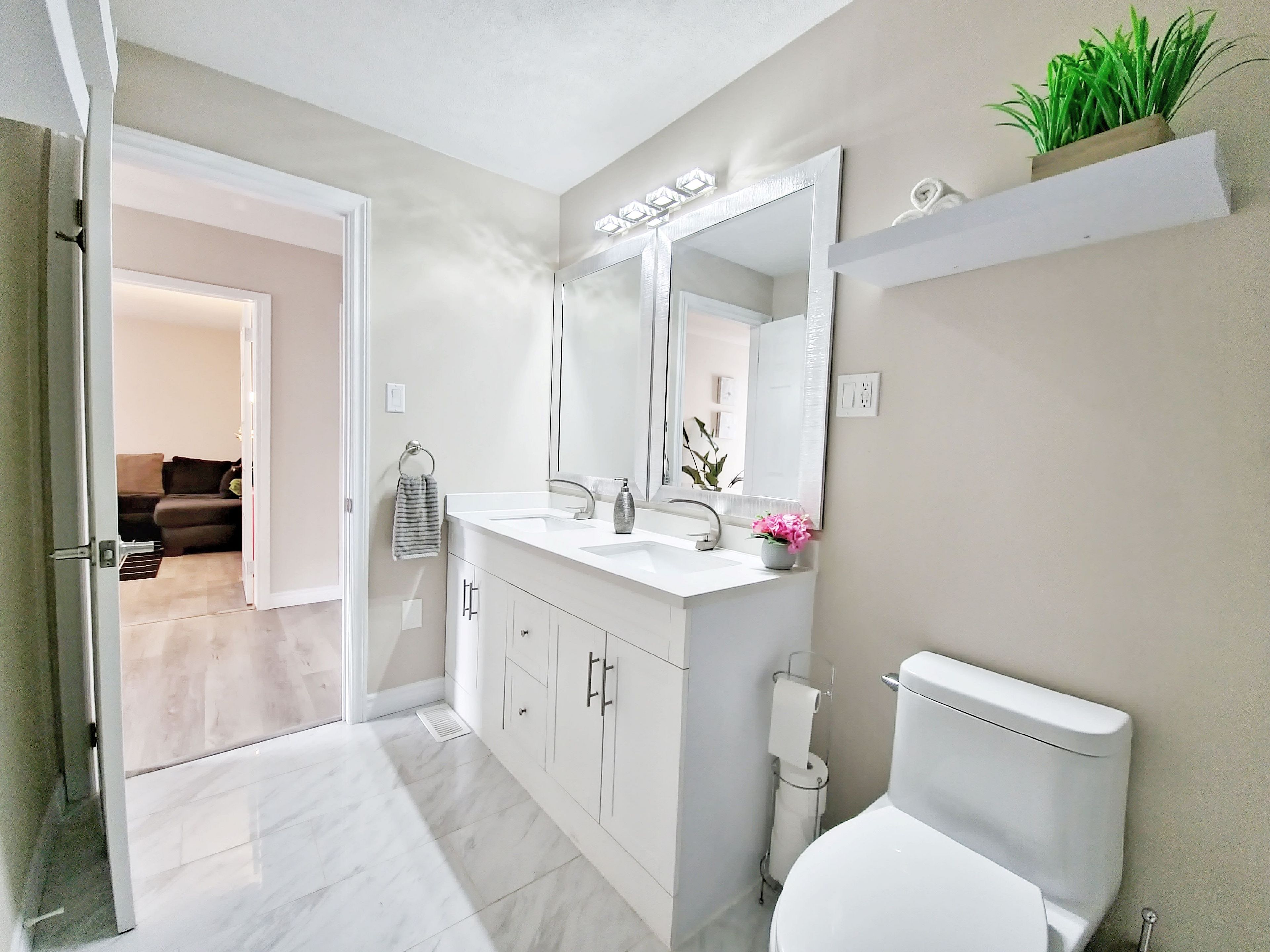 • Renovated bungalow with 4 bedrooms and a spacious upscale bathroom.
