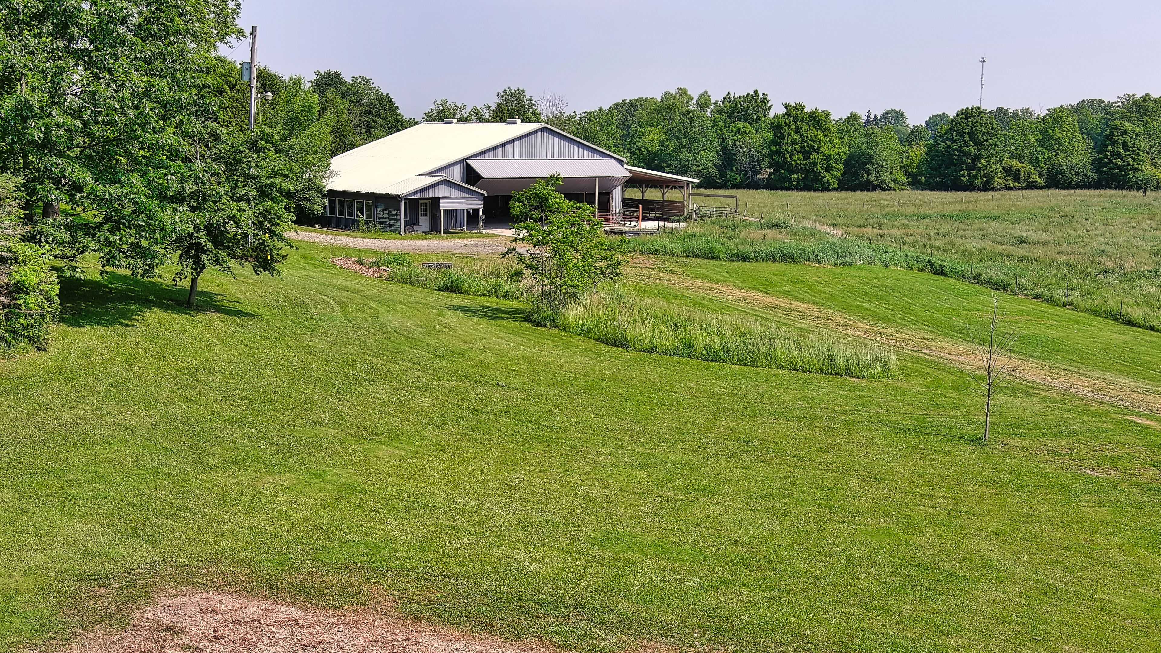 • Spacious barn with modern utilities, perfect for various uses and hobbies.