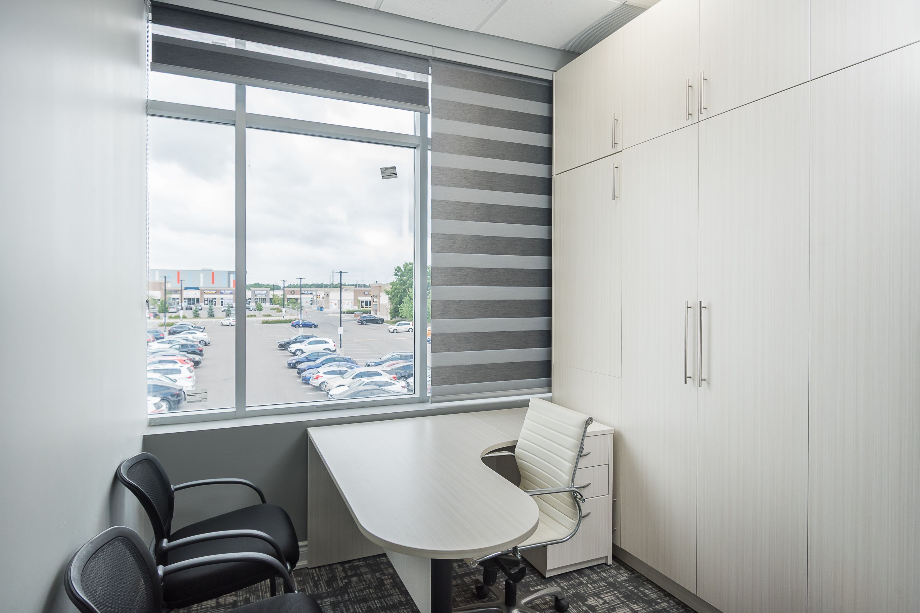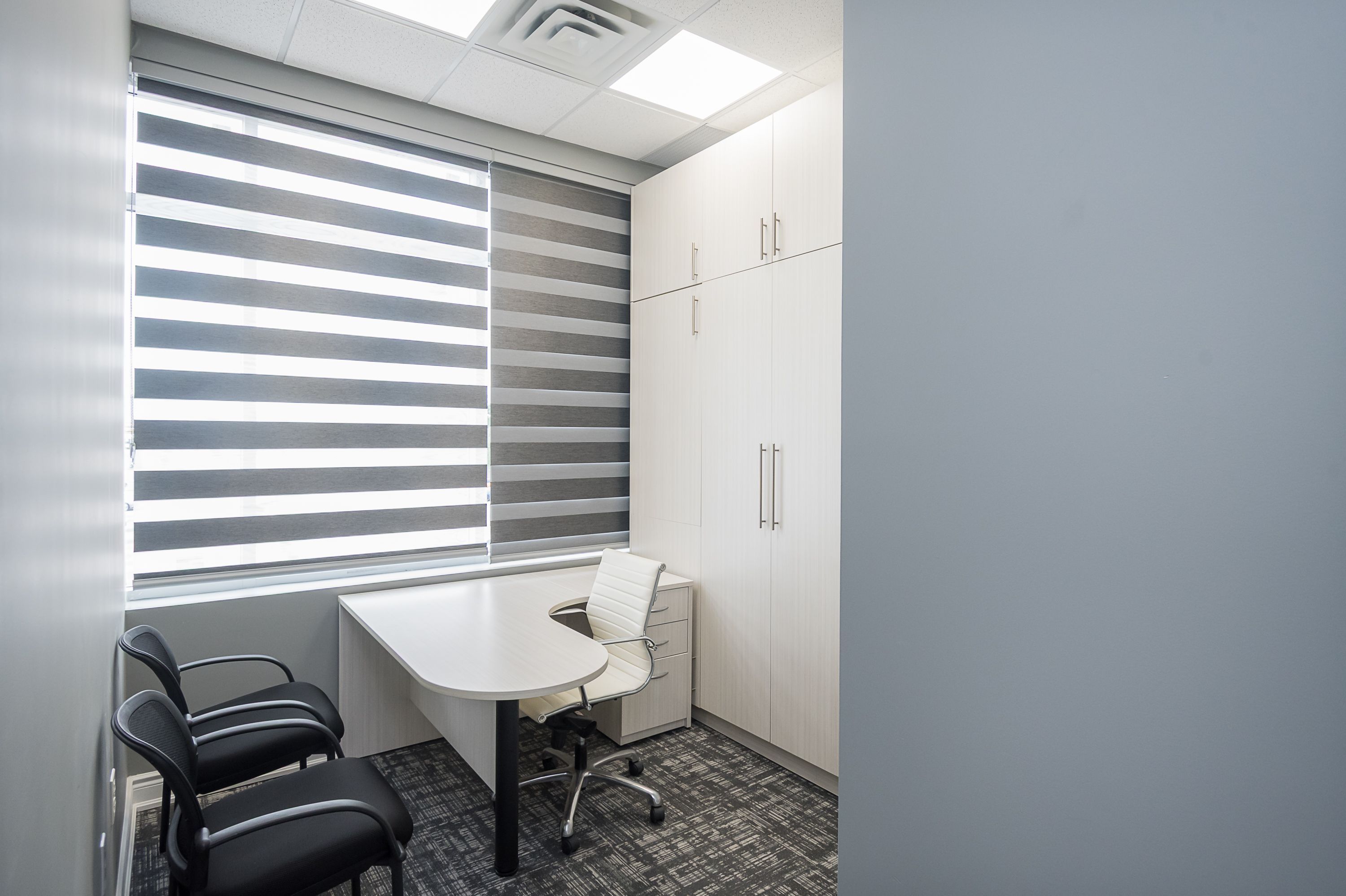 • Modern unit with 3 private offices and a boardroom.