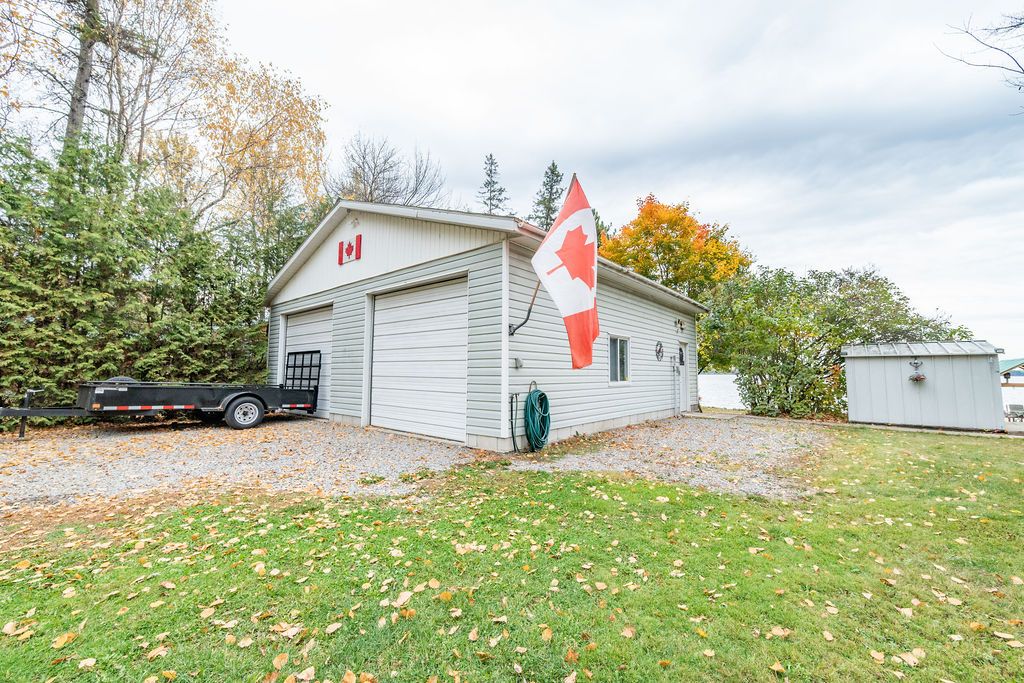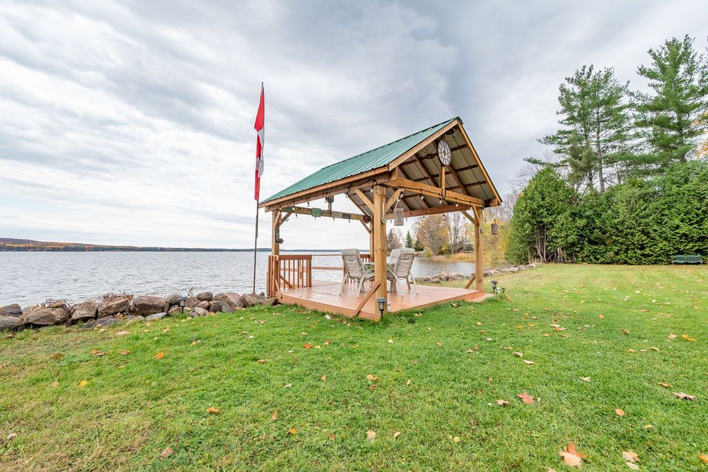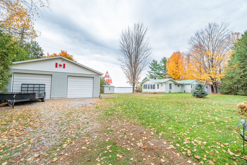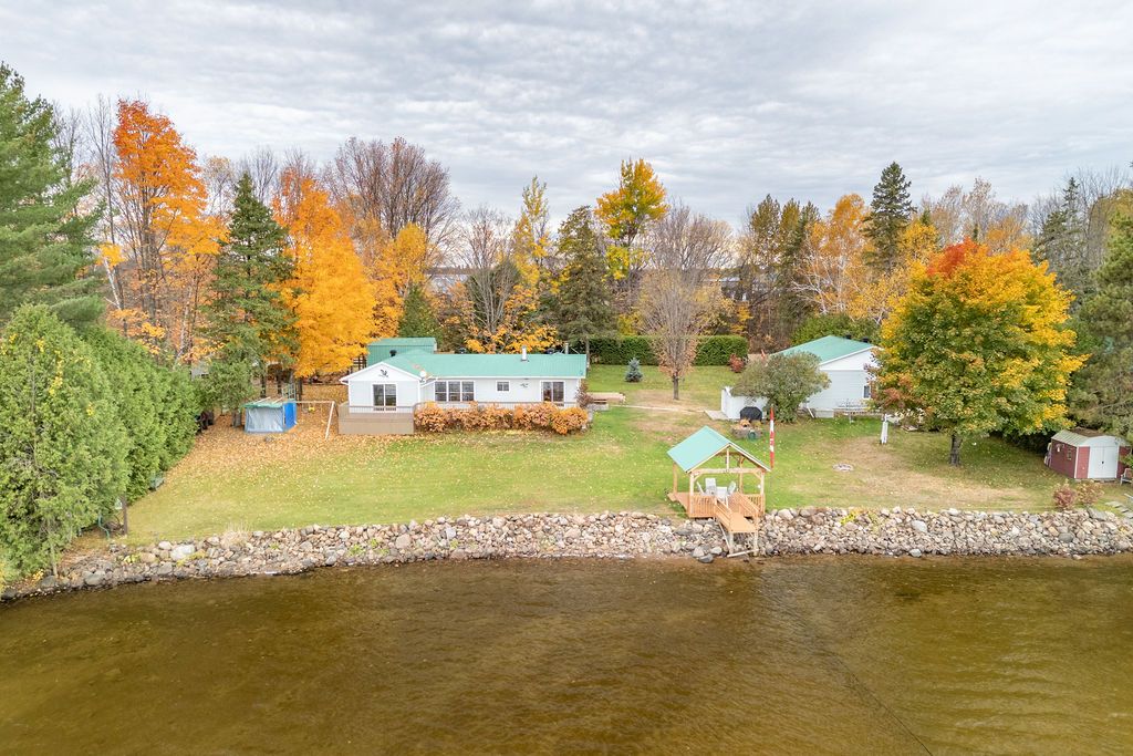 Spectacular year around home on golden lake with incredible eastern views over the lake with a beautiful backdrop of the hills in the distance. The property is a gentle slope to the waterfront with 199 feet of frontage. A sandy, hard lake bottom with no weeds in front. Dock system included along with a lakeside deck/gazebo. Space to launch a boat from the property as well. This 3 bedroom home features a bright living room with an abundance of natural light, a view of the lake and a cozy wood fireplace. The open concept kitchen/dining area is another great room overlooking the lake. Features a functional island, an abundance of cupboards and updated appliances. The primary bedroom is currently being used as a living room and could easily be converted back to a fantastic bedroom with a large closet and private entrance onto the expansive deck overlooking the lake. 2 more bedrooms and a full bathroom are all on the main level. Home is serviced by a drilled well and septic system. You have a massive 900 square foot garage with plenty of room for the toys and vehicles. An additional 2 storey bunkie with hydro provides additional space for guests to stay. Another garage is located at the second entrance with more vehicle storage space. 2 more sheds wrap up the abundance of storage space offered here. All the buildings have a metal roof. The yard also has a children play area and horse shoe pits. All of this located on a municipal maintained road. Come live the good life on golden lake!