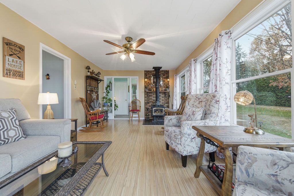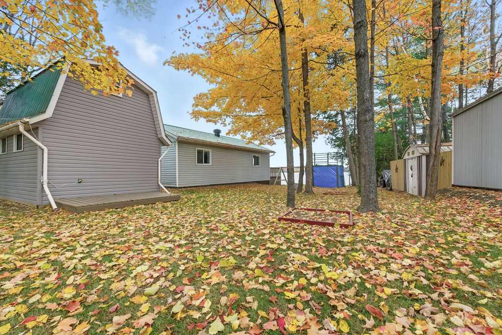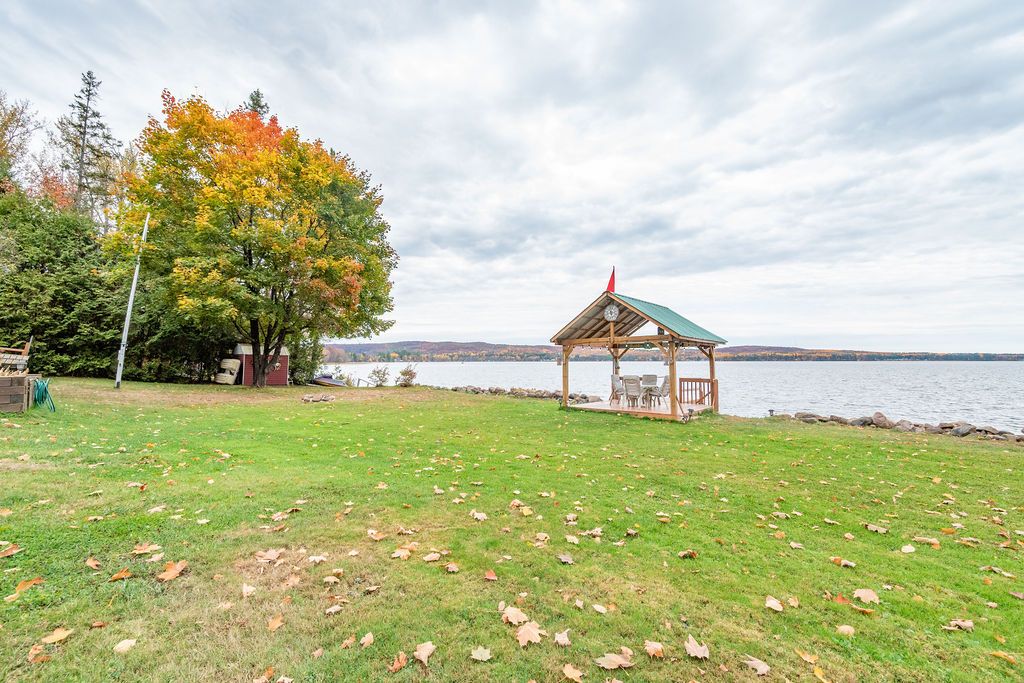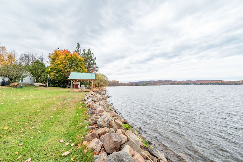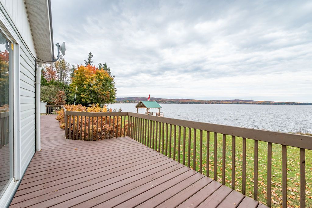 Spectacular year around home on golden lake with incredible eastern views over the lake with a beautiful backdrop of the hills in the distance. The property is a gentle slope to the waterfront with 199 feet of frontage. A sandy, hard lake bottom with no weeds in front. Dock system included along with a lakeside deck/gazebo. Space to launch a boat from the property as well. This 3 bedroom home features a bright living room with an abundance of natural light, a view of the lake and a cozy wood fireplace. The open concept kitchen/dining area is another great room overlooking the lake. Features a functional island, an abundance of cupboards and updated appliances. The primary bedroom is currently being used as a living room and could easily be converted back to a fantastic bedroom with a large closet and private entrance onto the expansive deck overlooking the lake. 2 more bedrooms and a full bathroom are all on the main level. Home is serviced by a drilled well and septic system. You have a massive 900 square foot garage with plenty of room for the toys and vehicles. An additional 2 storey bunkie with hydro provides additional space for guests to stay. Another garage is located at the second entrance with more vehicle storage space. 2 more sheds wrap up the abundance of storage space offered here. All the buildings have a metal roof. The yard also has a children play area and horse shoe pits. All of this located on a municipal maintained road. Come live the good life on golden lake!