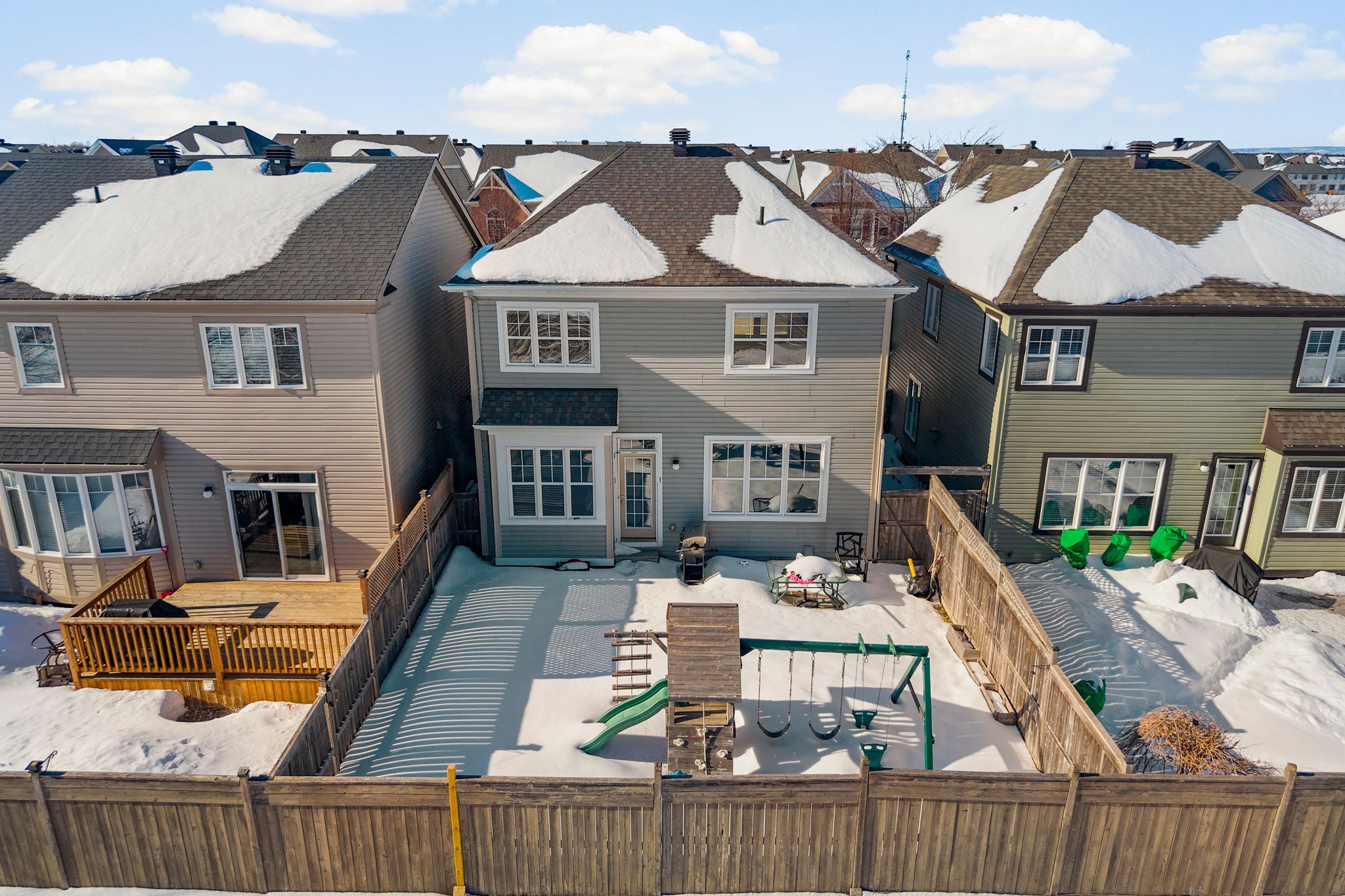 Welcome to this beautifully single-family home tucked away on a quiet street with no rear neighbours, offering the privacy and peaceful setting today's buyers are searching for - all while being just minutes to everyday amenities and quick access to the 417 for easy commuting. The open-concept main floor is designed for both comfortable living and effortless entertaining. A bright and inviting layout connects the kitchen, dining, and living areas, creating a seamless flow ideal for family gatherings or quiet evenings at home. Large windows fill the space with natural light, enhancing the warm and welcoming atmosphere throughout. Upstairs, you'll find three generously sized bedrooms, including a spacious primary retreat complete with a large walk-in closet and a private en-suite bathroom - the perfect place to unwind at the end of the day. The two secondary bedrooms are thoughtfully connected by a convenient jack and jill bathroom, offering both functionality and privacy, making this layout ideal for families or guests. The finished basement adds valuable additional living space and flexibility - perfect for a family room, home office, gym, play area, or media space - while still allowing for storage. With its ideal layout, private backyard setting, and prime location close to schools, shopping, restaurants, parks, and highway access, this home offers the perfect blend of comfort, convenience, and community. A fantastic opportunity to settle into a sought-after neighbourhood with space to grow.