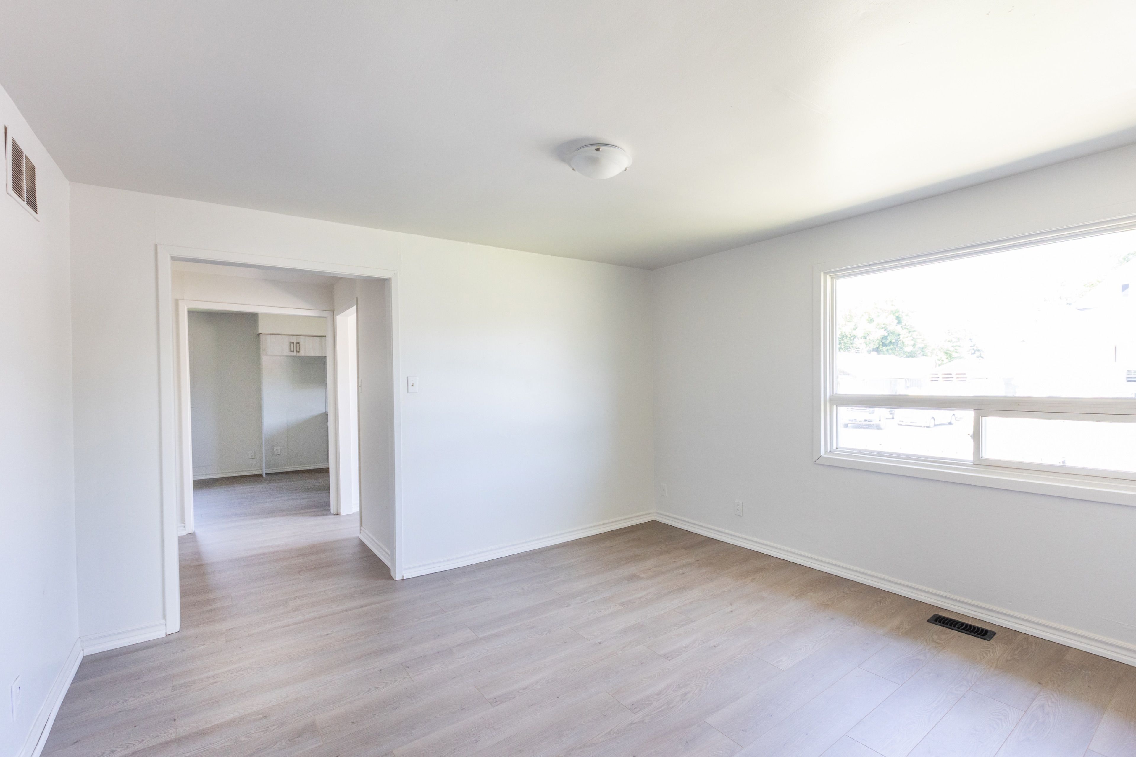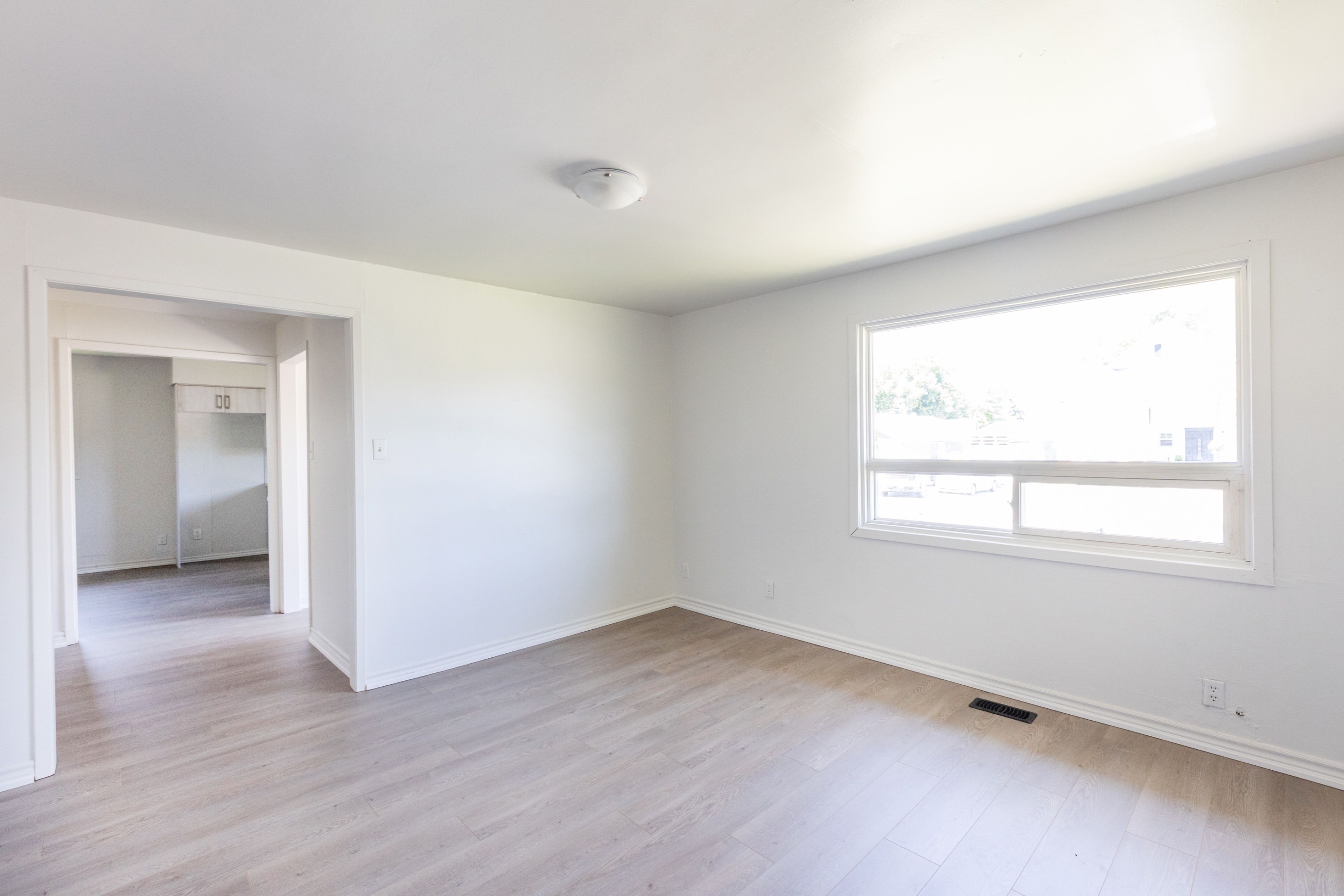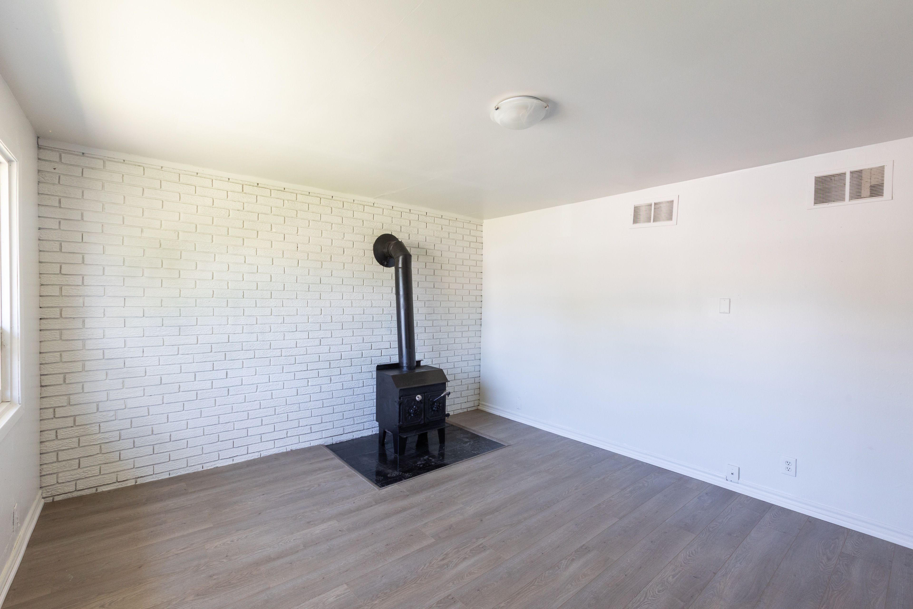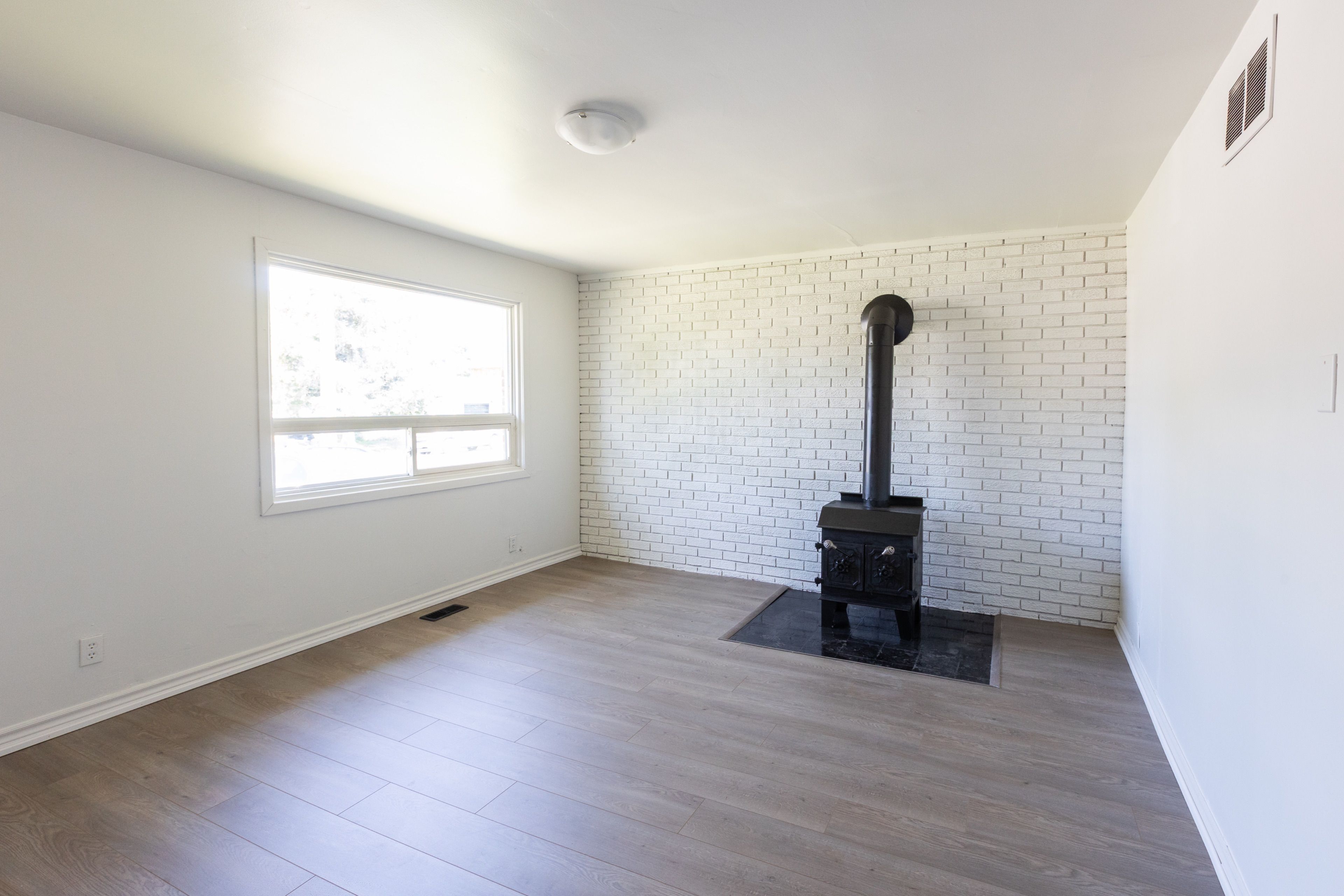 • New flooring throughout and a cozy wood oven in the living area.