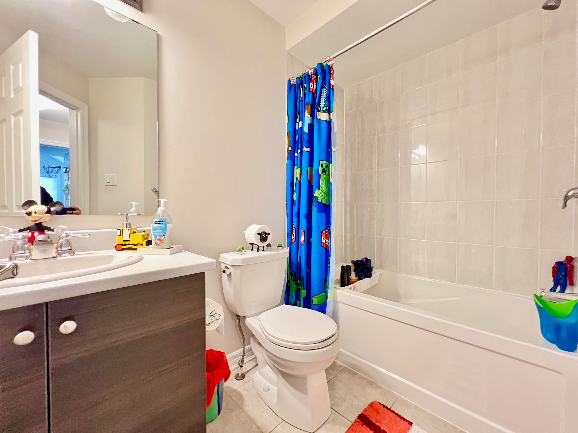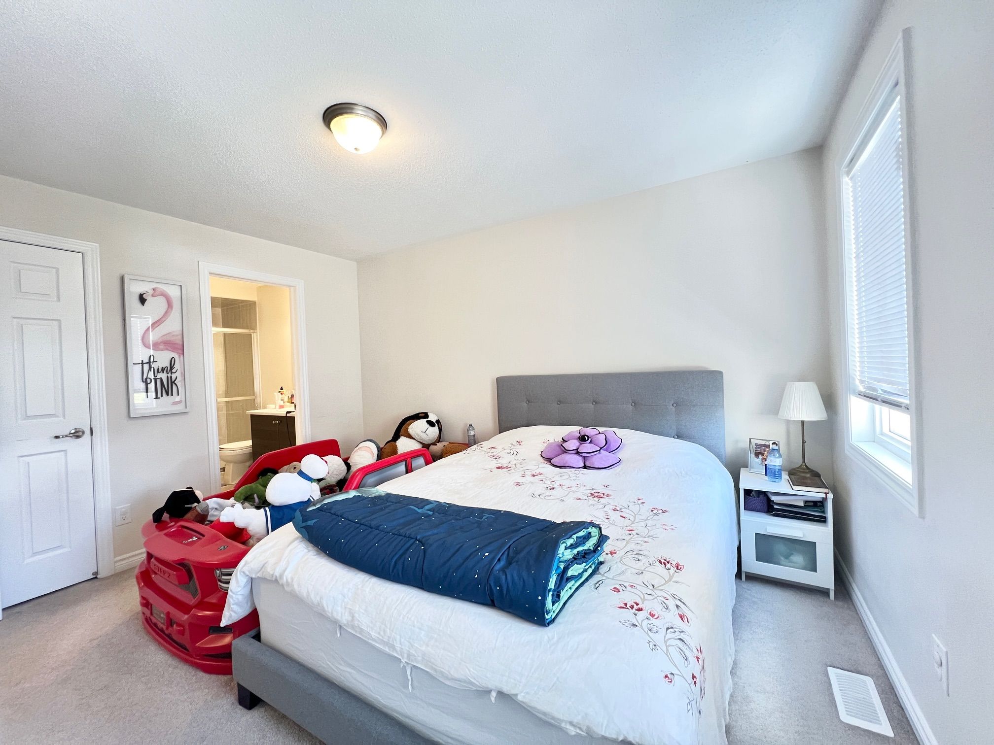 Rarely offered modern and extensively upgraded freehold village townhome in popular half moon bay! This fabulous home features 2 bedrooms, a computer nook, and 2. 5 bathrooms with a bright open-concept main level offering a spacious living and dining area. The kitchen is well-appointed with stainless steel appliances, generous counter space, beautiful maple cabinetry, pots & pans drawers, backsplash, breakfast bar, and a convenient pantry. Large windows in the living room and a patio door leading to a spacious balcony fill the home with natural light. Enjoy your morning coffee, favourite drinks, bbq, or evening sunsets on the large patio off the dining room. The third level features a cute computer nook, perfect for working from home. The primary bedroom includes a walk-in closet and private ensuite bathroom, while the large second bedroom and a 3-piece bathroom complete this level. The main level also offers a large laundry room and inside access to the garage. Plus central a/c for added comfort. Located in a wonderful family-friendly neighbourhood, just steps to half moon bay public school, transit, parks, nature trails, and the future greenbank road extension. Close to shopping, stonebridge golf club, and the minto recreation complex.