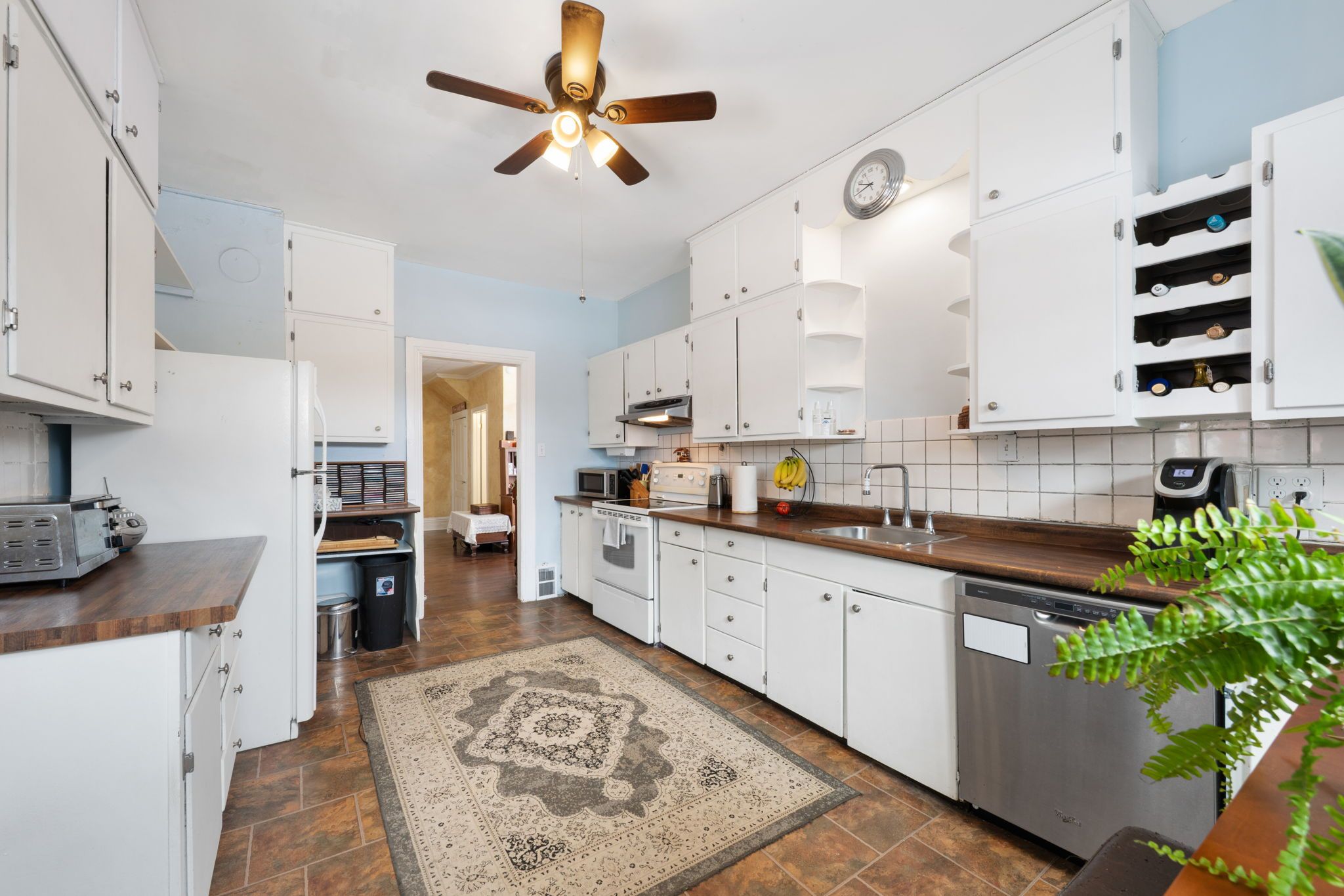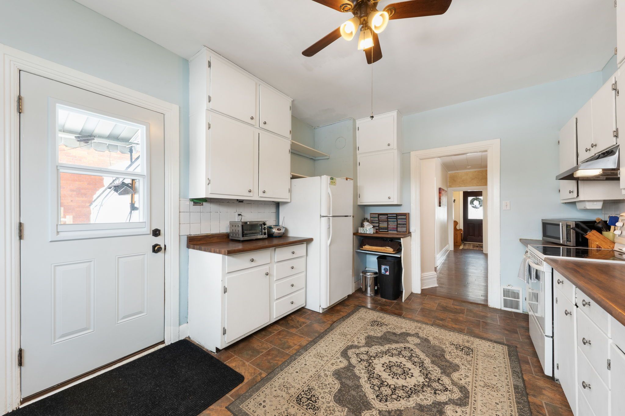• Spacious kitchen overlooking the backyard for cooking with a view.
