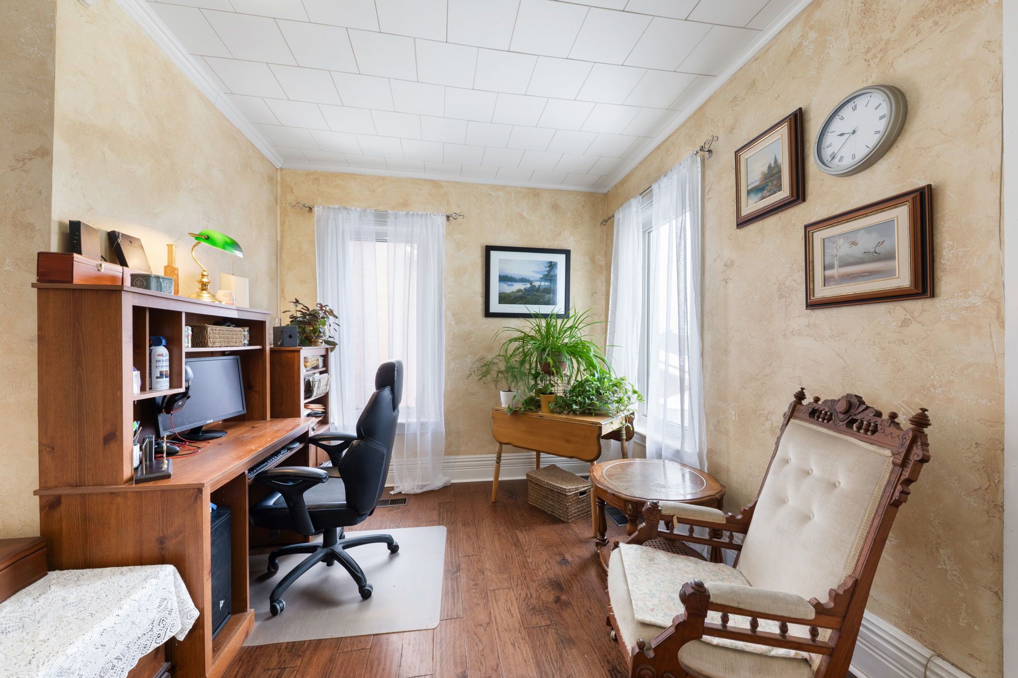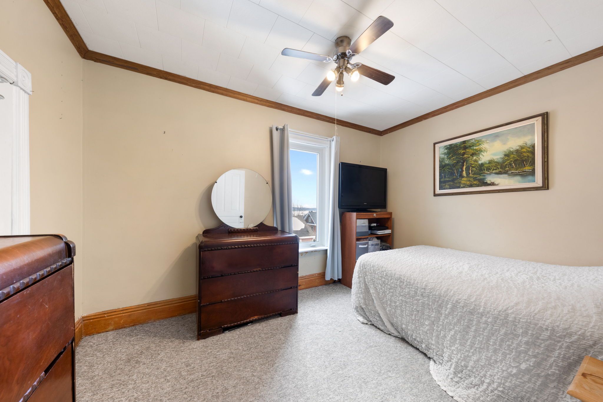 Charming family home with loft potential - walk to downtown midland. Welcome to this inviting 3-bedroom, 2-bath home offering character, space, and exciting potential for growing families. Featuring 9-foot ceilings, the home feels bright, open, and welcoming throughout. The main floor offers a comfortable living room, a separate dining room ideal for family meals and entertaining, and a dedicated office space perfect for working from home or studying. The spacious kitchen overlooks the backyard, allowing you to cook while enjoying views of the outdoor space. Step outside to a 24 x 12 ft wood deck, perfect for summer barbecues, entertaining, or relaxing evenings. The deck overlooks a fully fenced backyard stretching approximately 165 feet deep, complete with a hot tub for year-round enjoyment and plenty of room for kids, pets, or gardening. Upstairs, the second floor features well-sized bedrooms and a versatile bonus room that leads into a bright sunroom and provides access to the attic loft-ideal for a playroom, hobby space, or cozy sitting area filled with natural light. The attic loft offers excellent potential for a future 4th bedroom or additional living space. Already partially finished with insulation and a subfloor, it's ready for drywall and flooring to complete the space to your liking. Located within walking distance to downtown midland, you'll enjoy easy access to the midland library, cultural centre, shops, banks, and churches, making everyday living both convenient and connected. A wonderful opportunity to own a character-filled home with space to grow in a fantastic location.