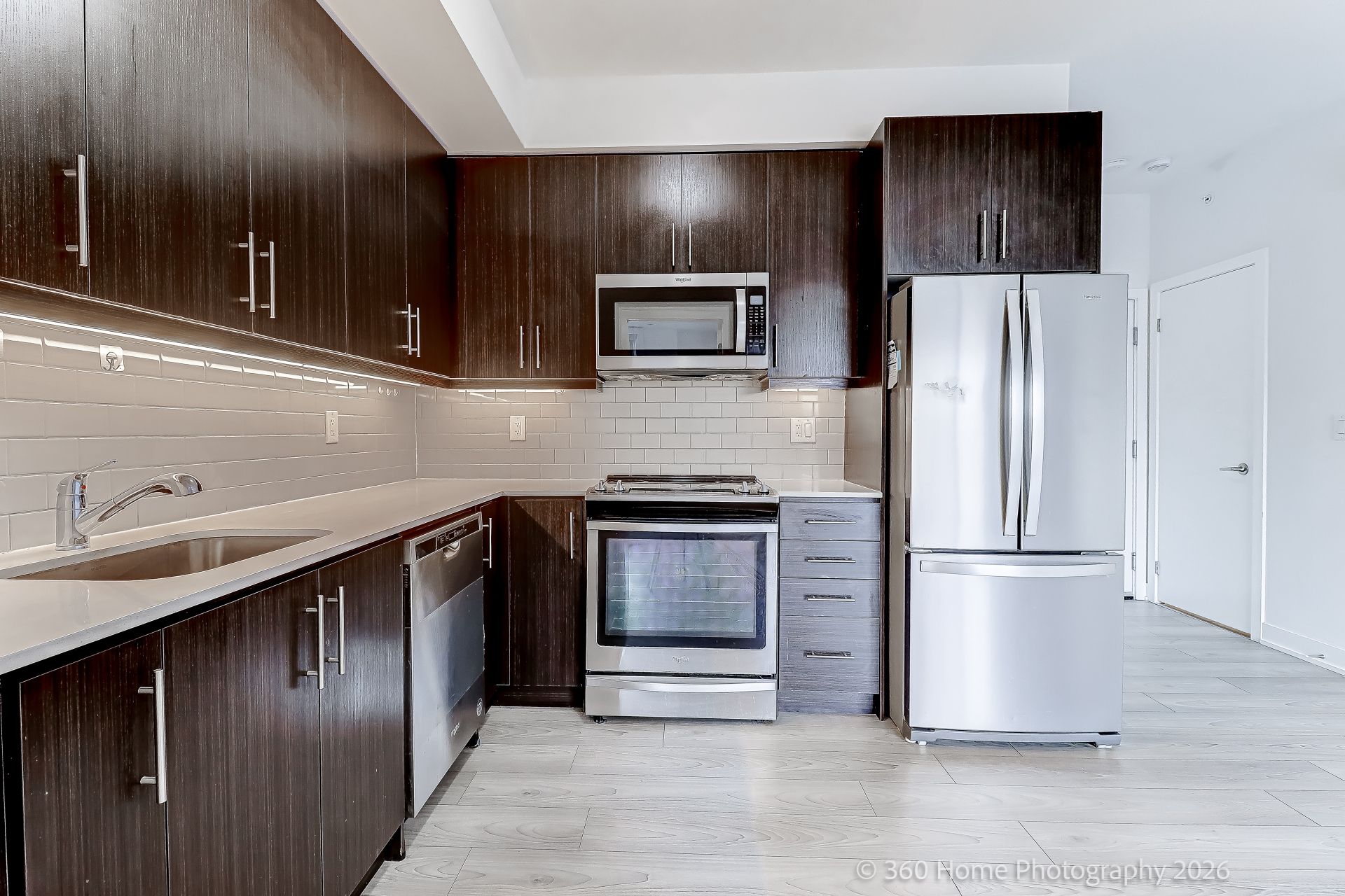 • Modern open-concept layout with a stylish kitchen and stainless steel appliances.