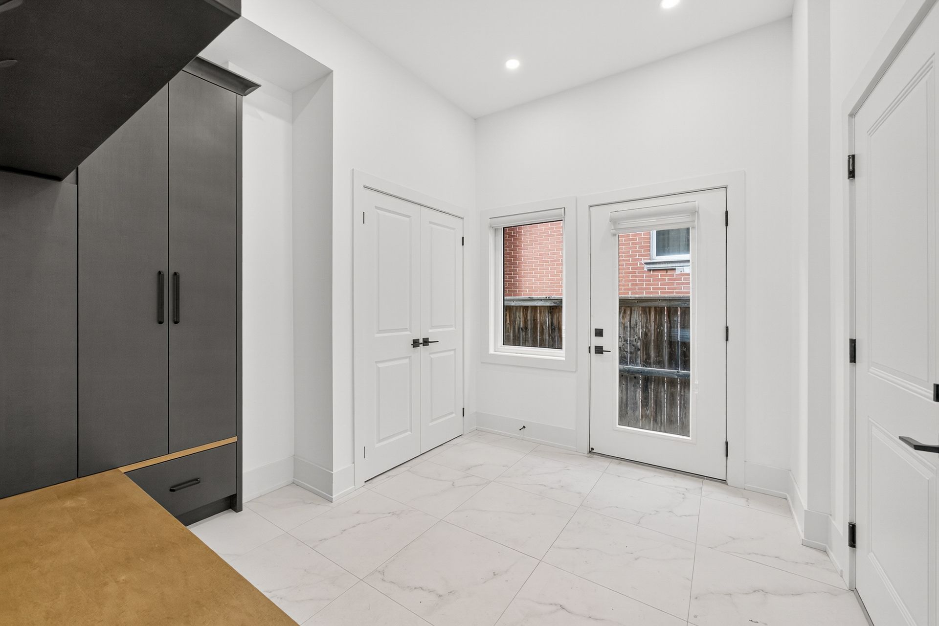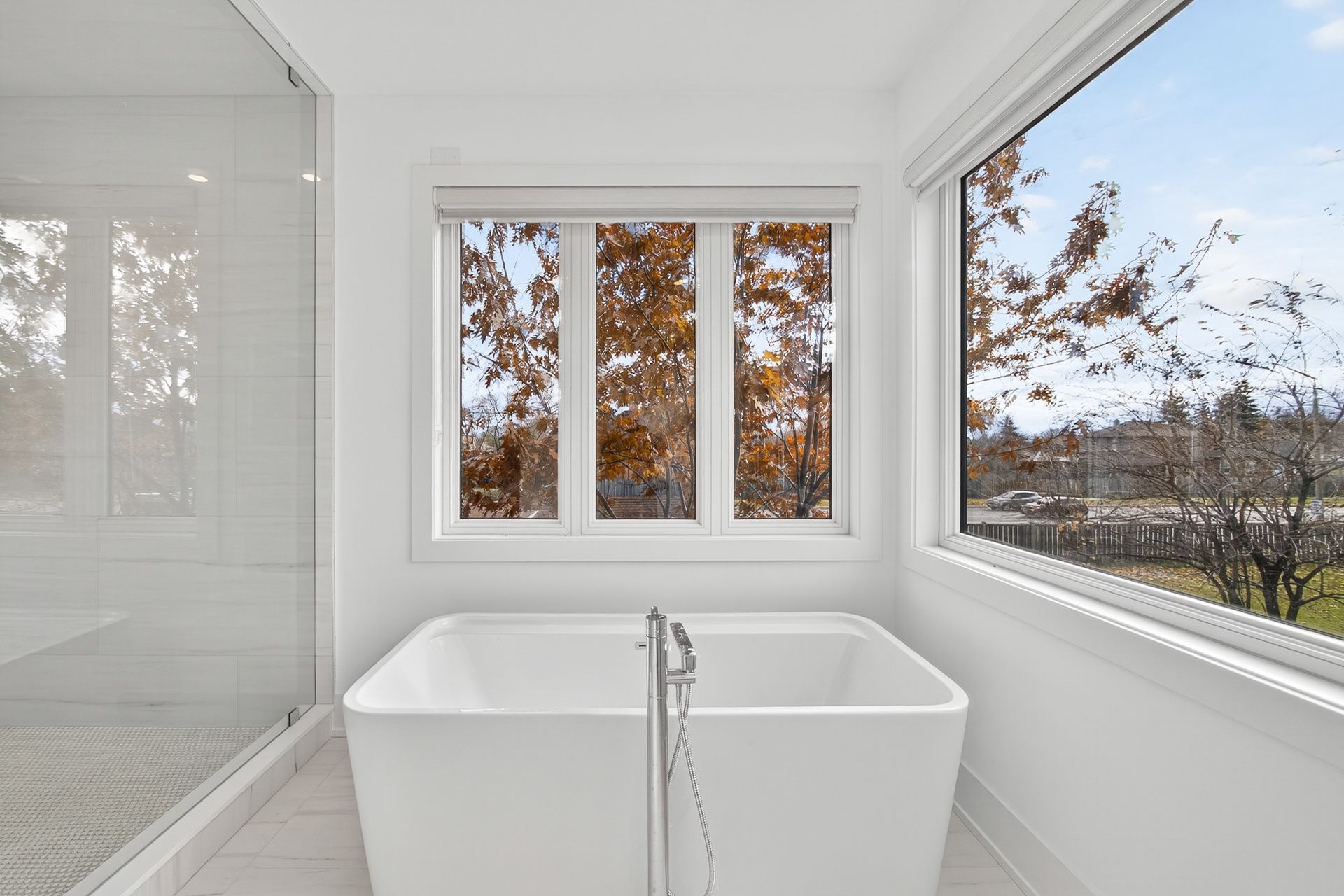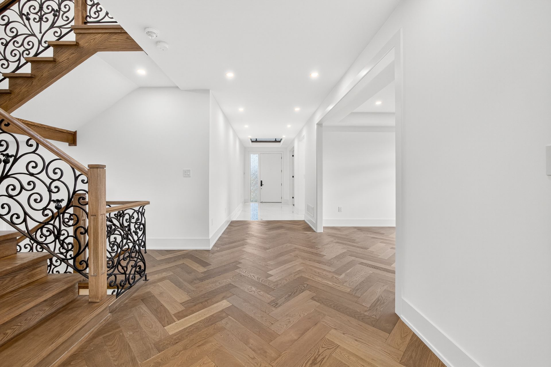 • Stylish herringbone hardwood flooring and oversized windows throughout.
