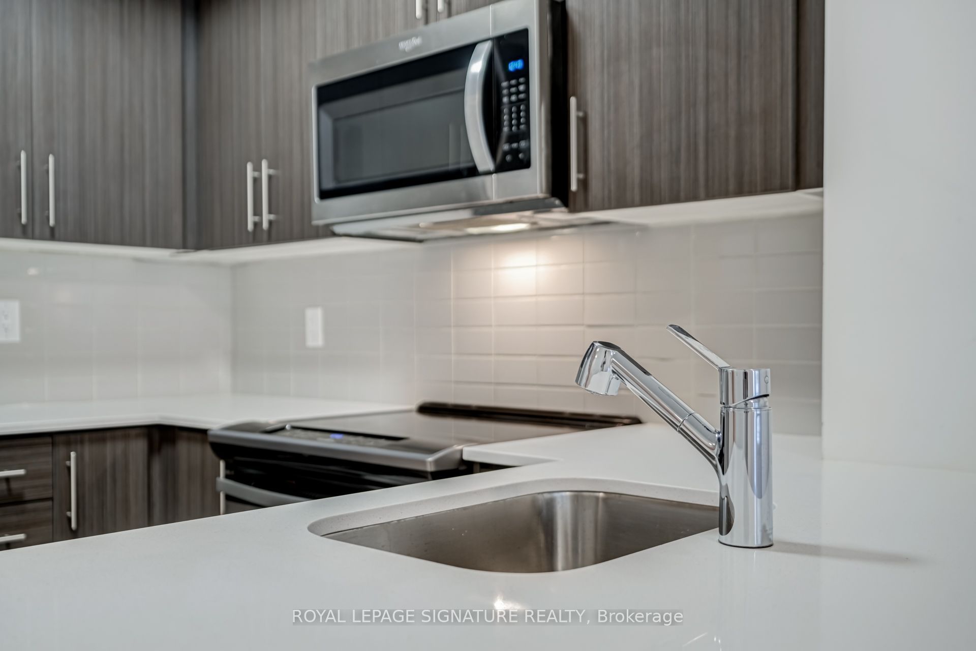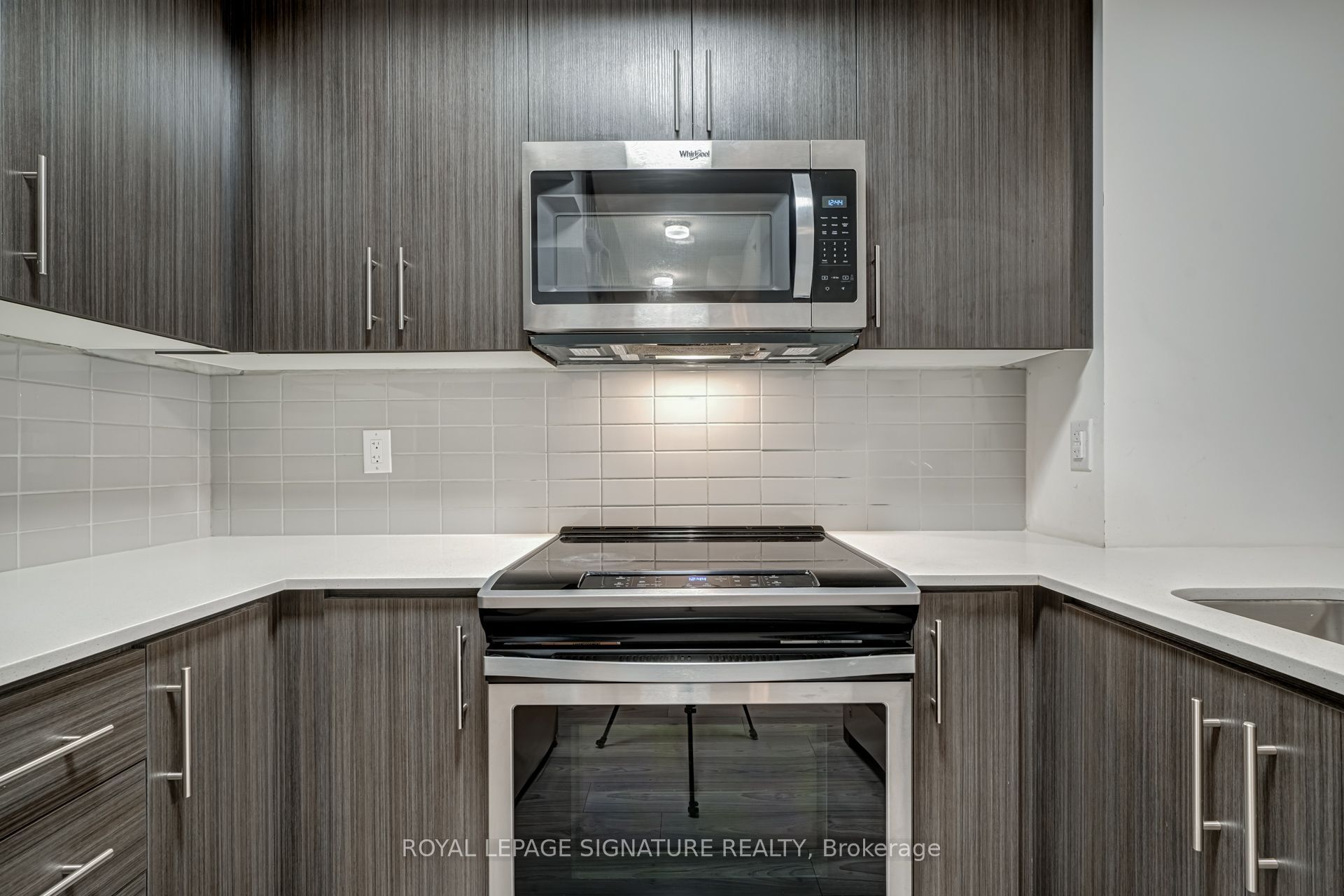 • Contemporary kitchen with stainless steel appliances and ample counter space.