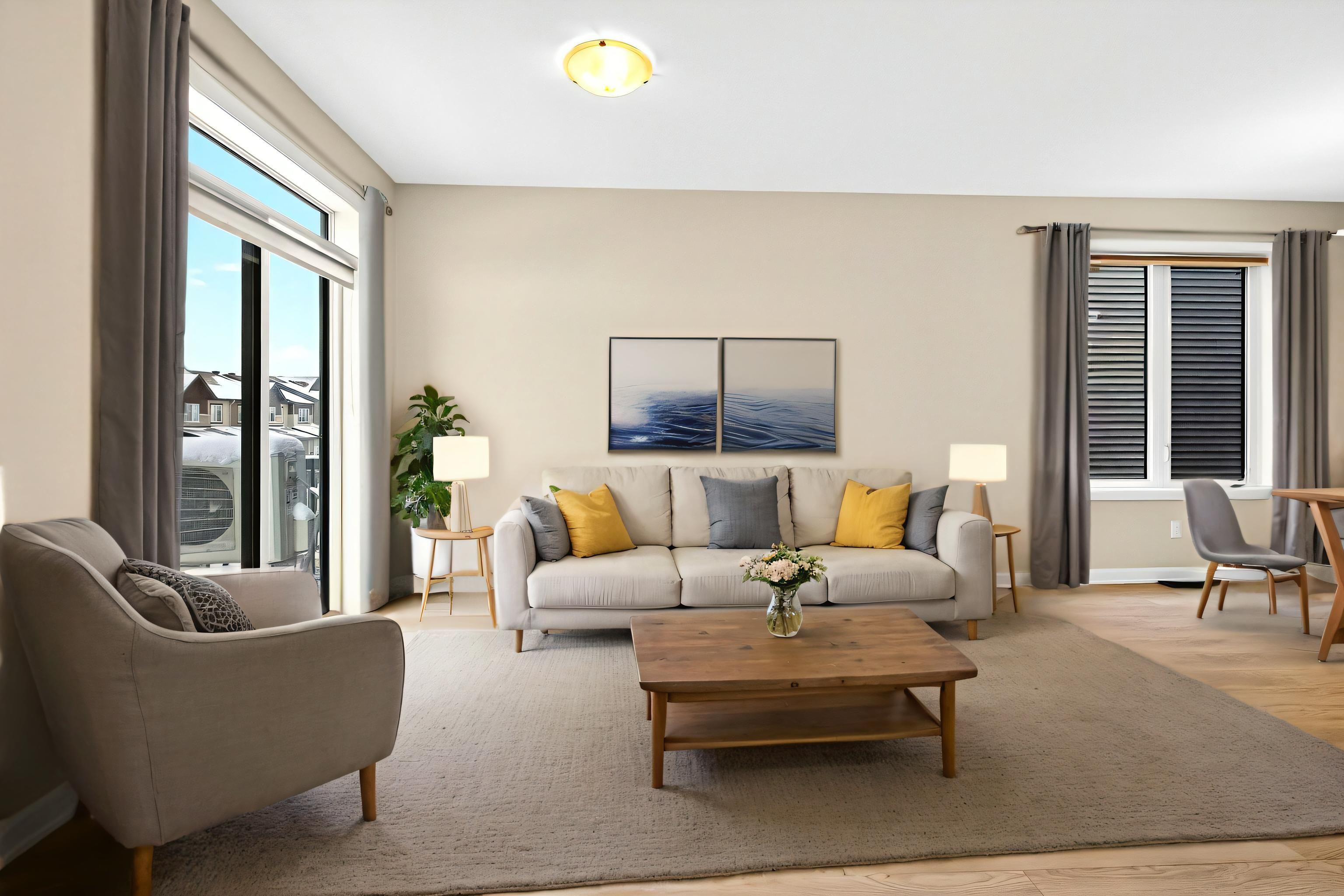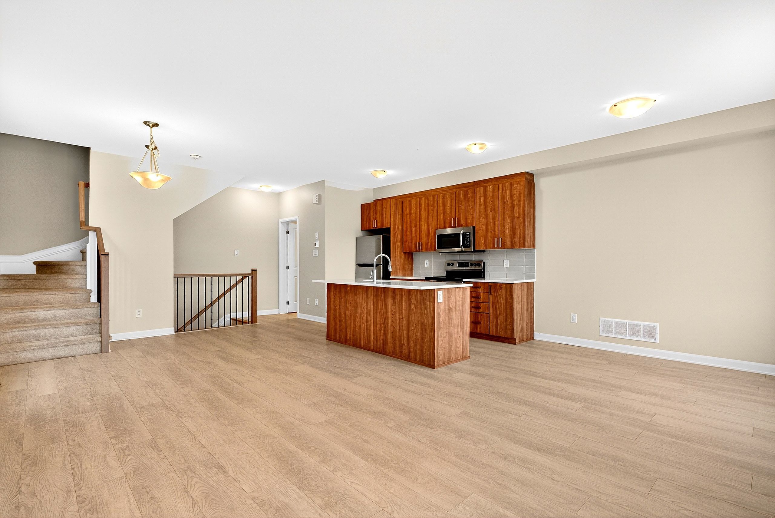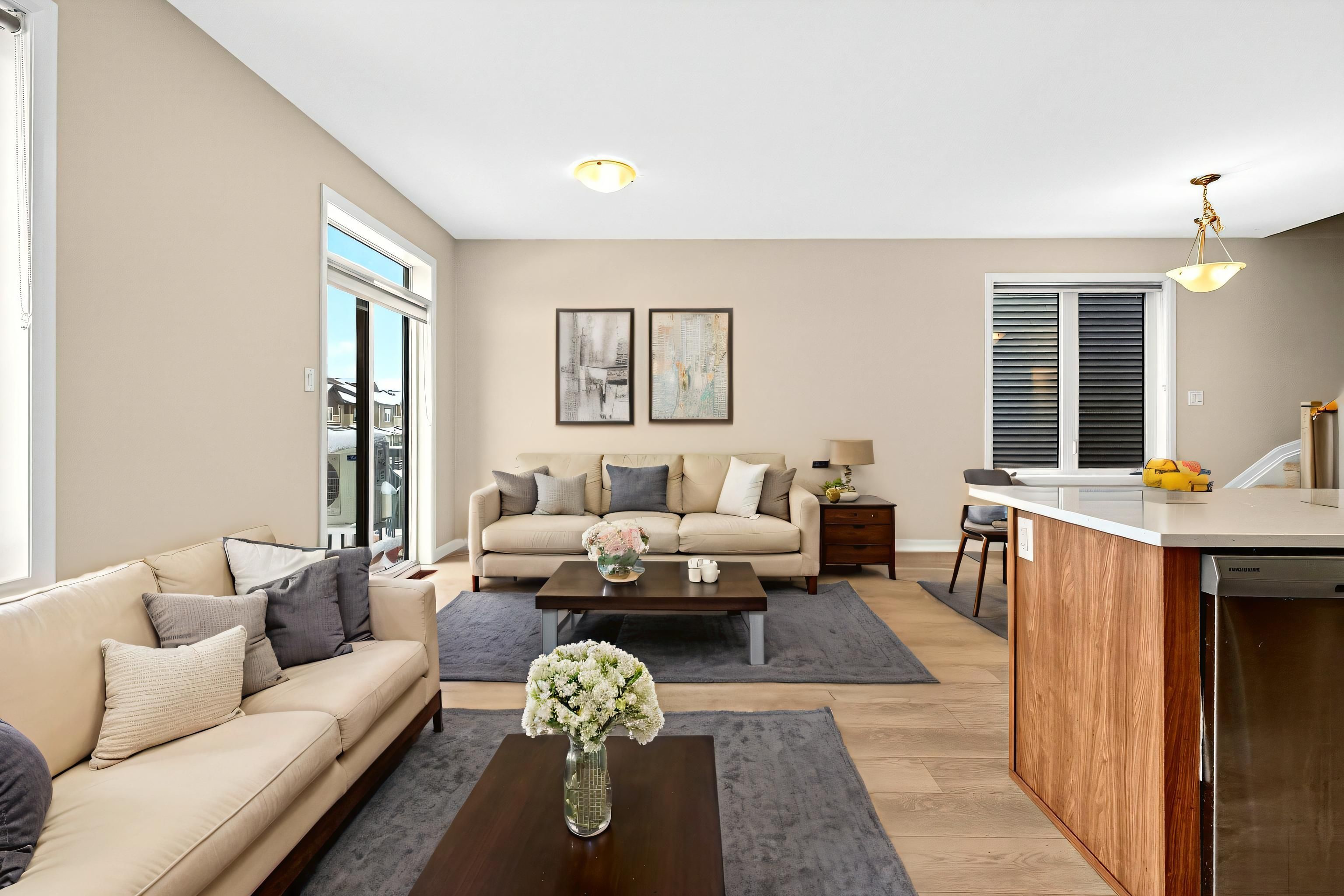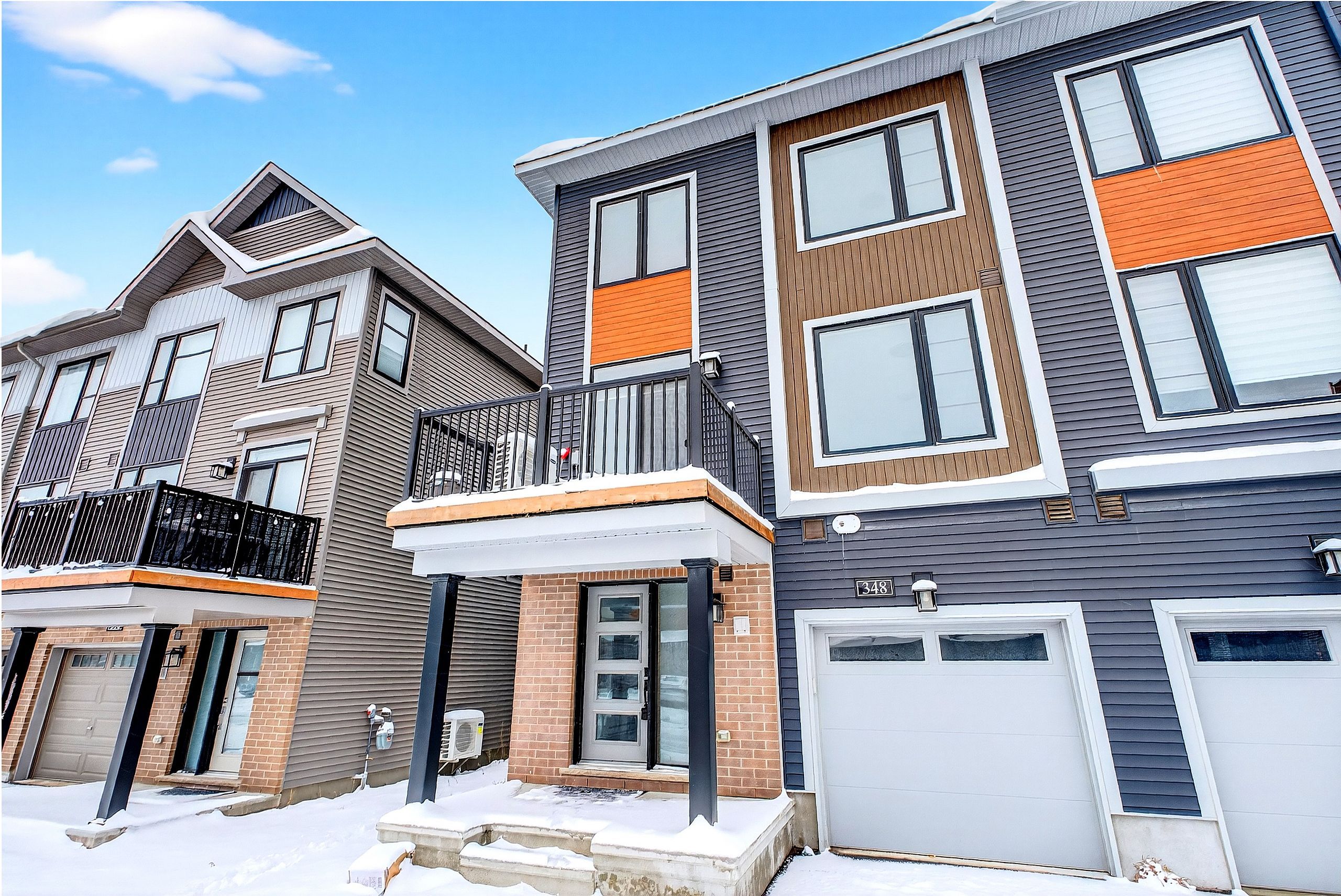 Stylish and move-in ready, this newly painted 3-bedroom end-unit townhome in barrhaven's sought-after half moon bay community offers a bright, modern open-concept layout perfect for today's lifestyle. The main level features a welcoming foyer with convenient laundry and storage, while the second level boasts a sun-filled kitchen with a central island, open living and dining areas, a functional balcony, and a 2-piece bath. Upstairs, three comfortable bedrooms and a full bathroom provide ample space for family living. As an end unit, this home enjoys extra natural light, added privacy, and great curb appeal-all in a family-friendly neighborhood close to parks, schools, and amenities.