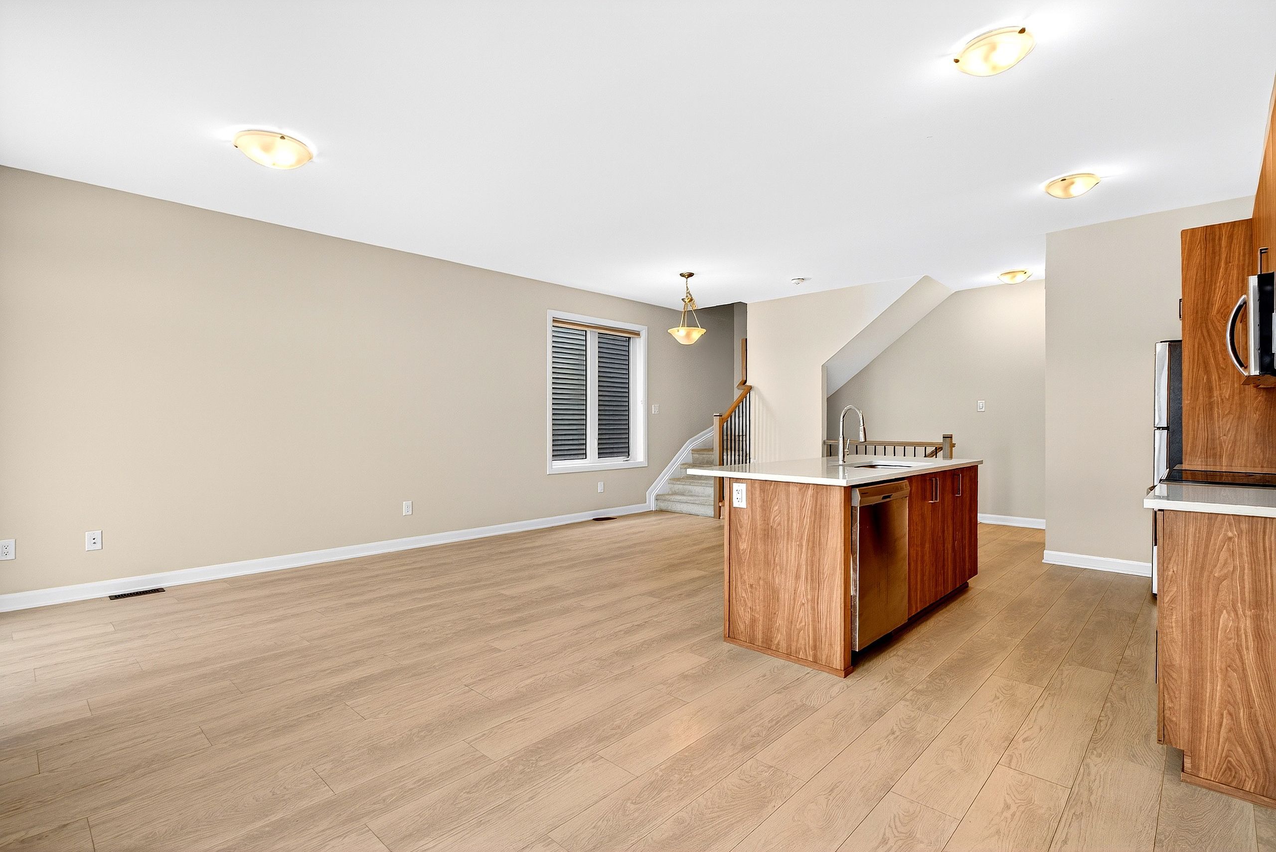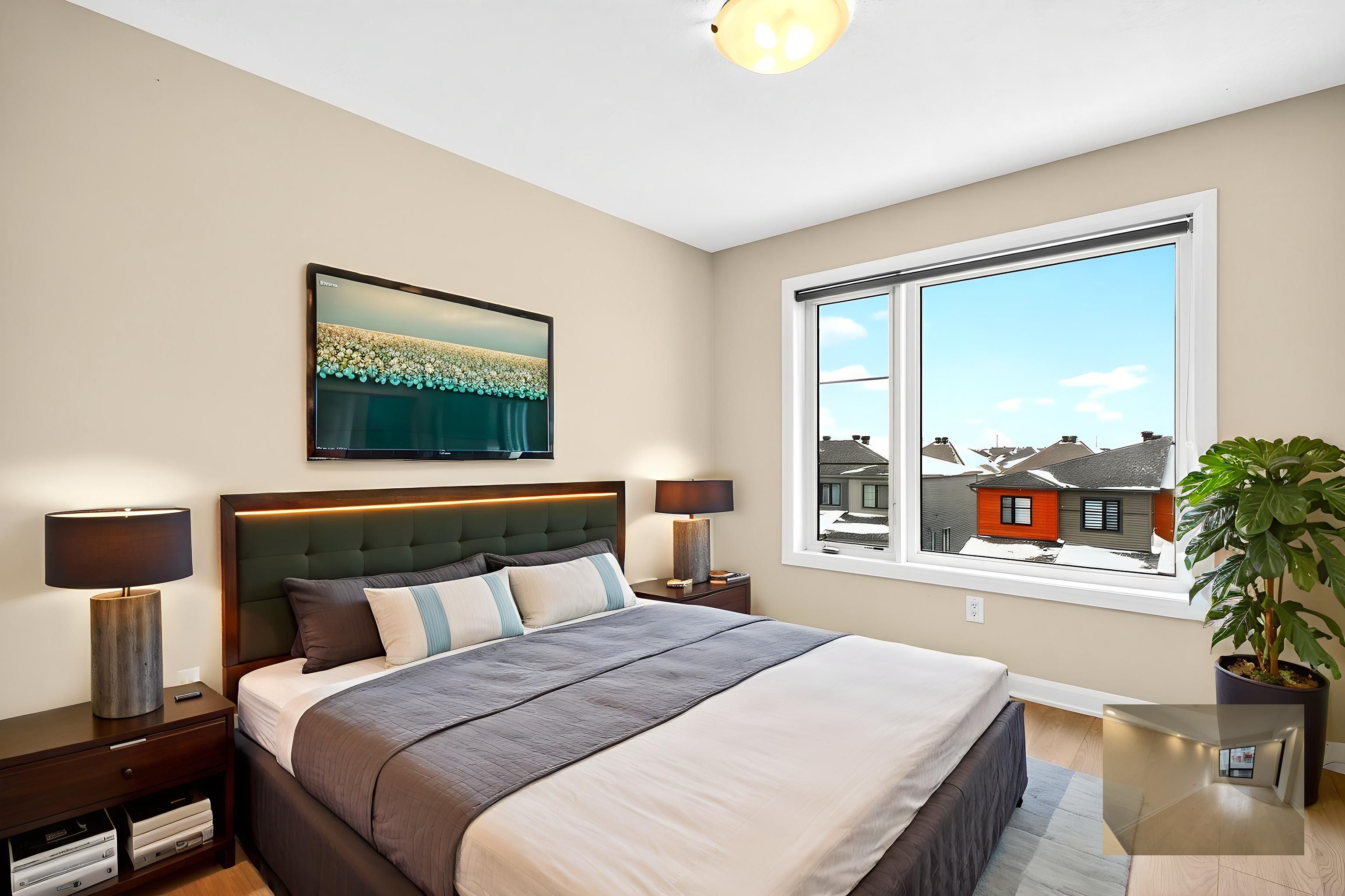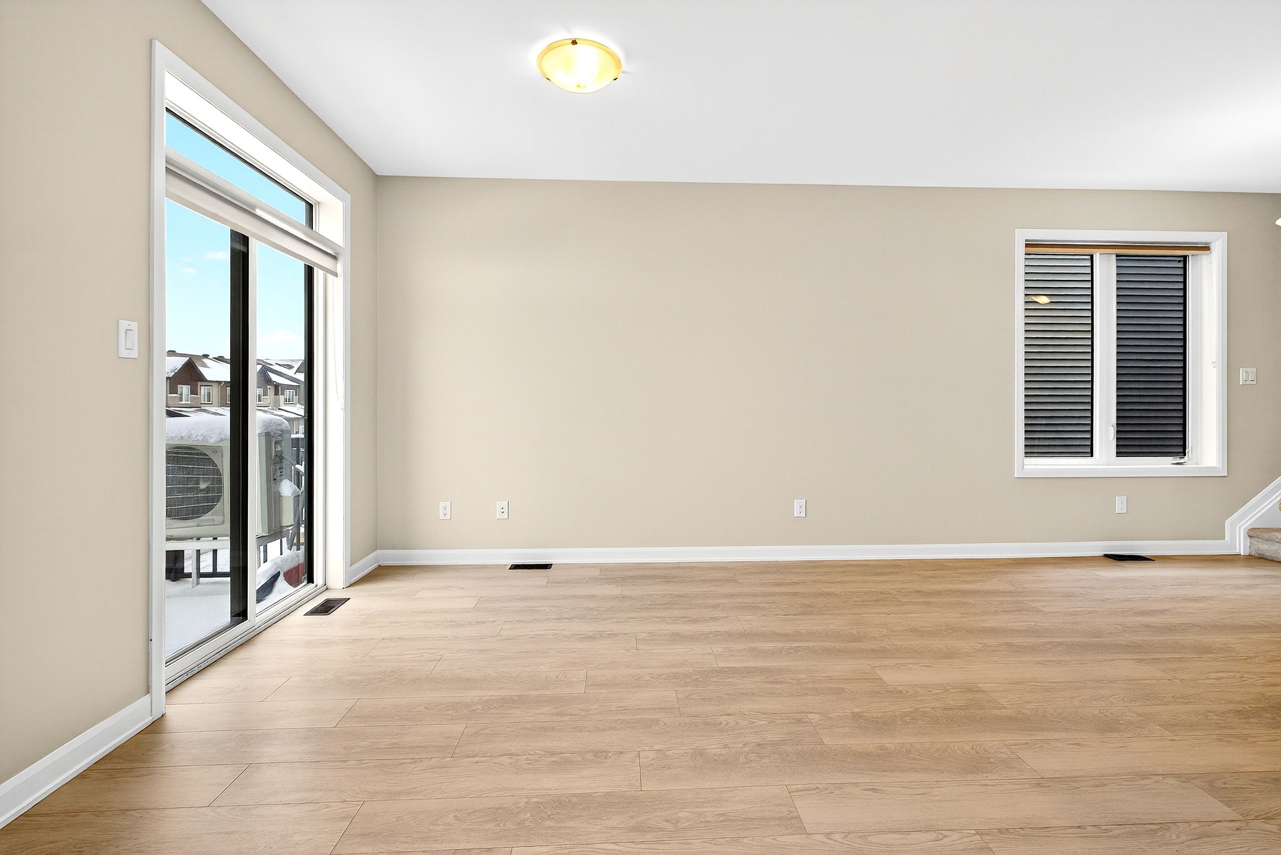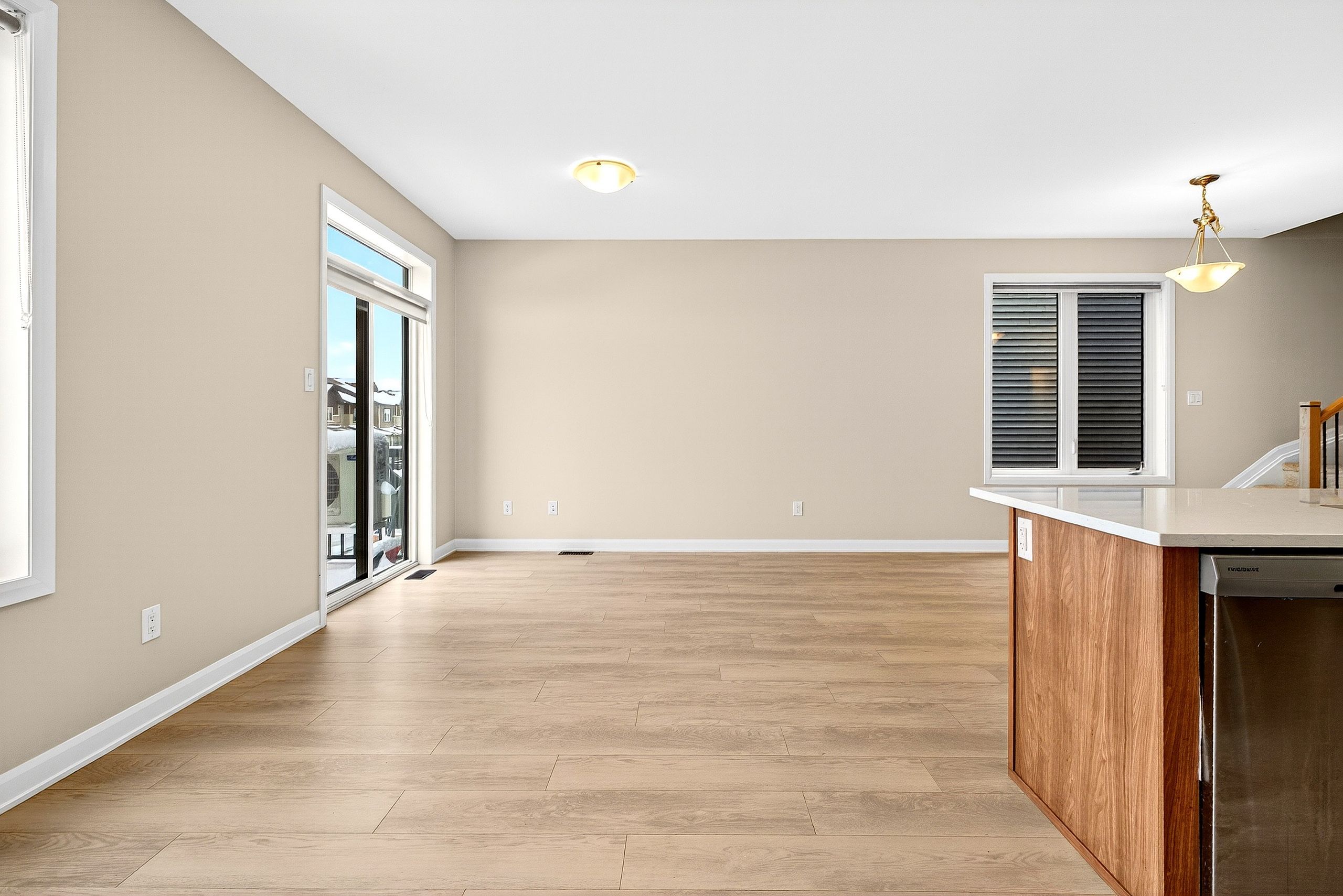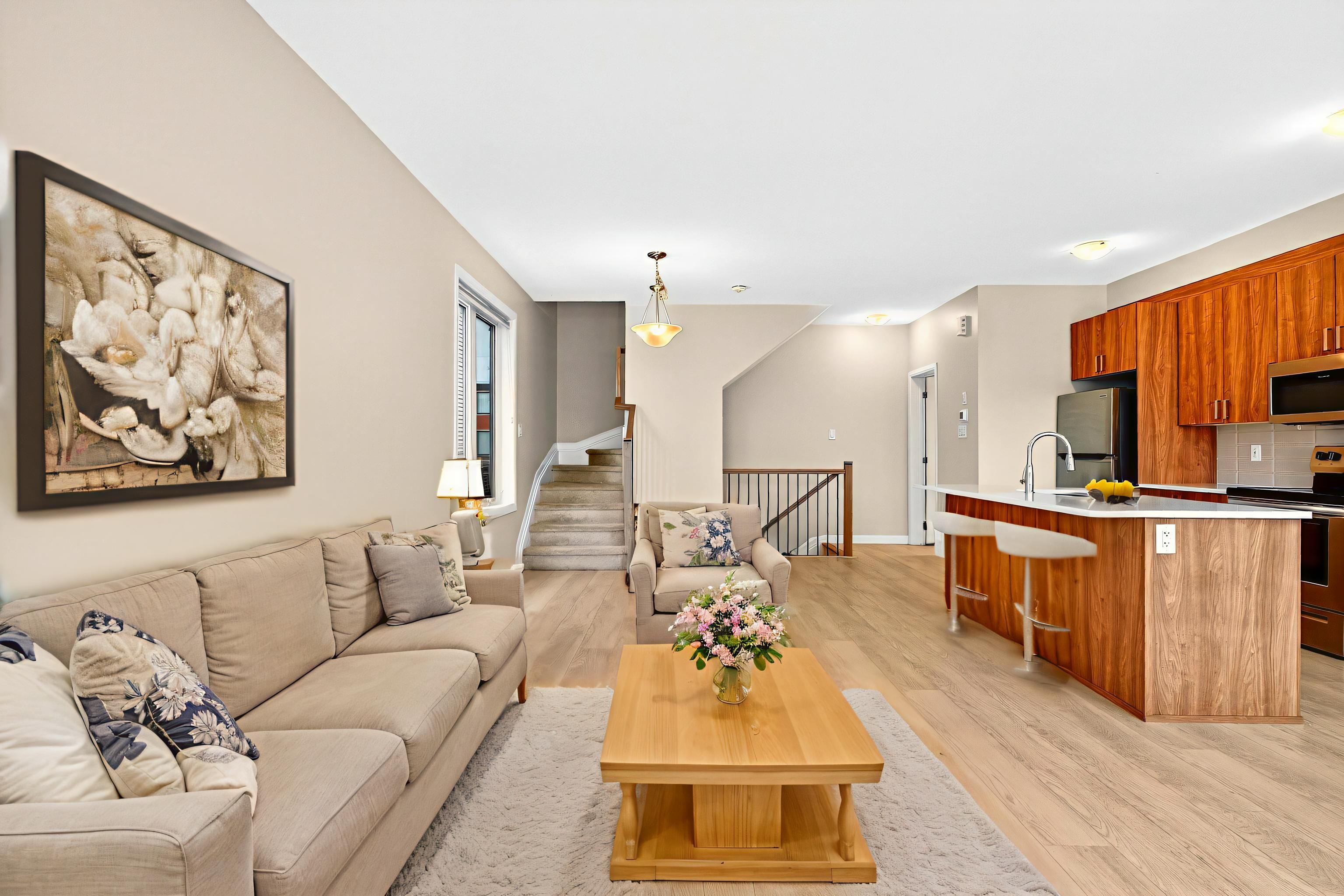Stylish and move-in ready, this newly painted 3-bedroom end-unit townhome in barrhaven's sought-after half moon bay community offers a bright, modern open-concept layout perfect for today's lifestyle. The main level features a welcoming foyer with convenient laundry and storage, while the second level boasts a sun-filled kitchen with a central island, open living and dining areas, a functional balcony, and a 2-piece bath. Upstairs, three comfortable bedrooms and a full bathroom provide ample space for family living. As an end unit, this home enjoys extra natural light, added privacy, and great curb appeal-all in a family-friendly neighborhood close to parks, schools, and amenities.