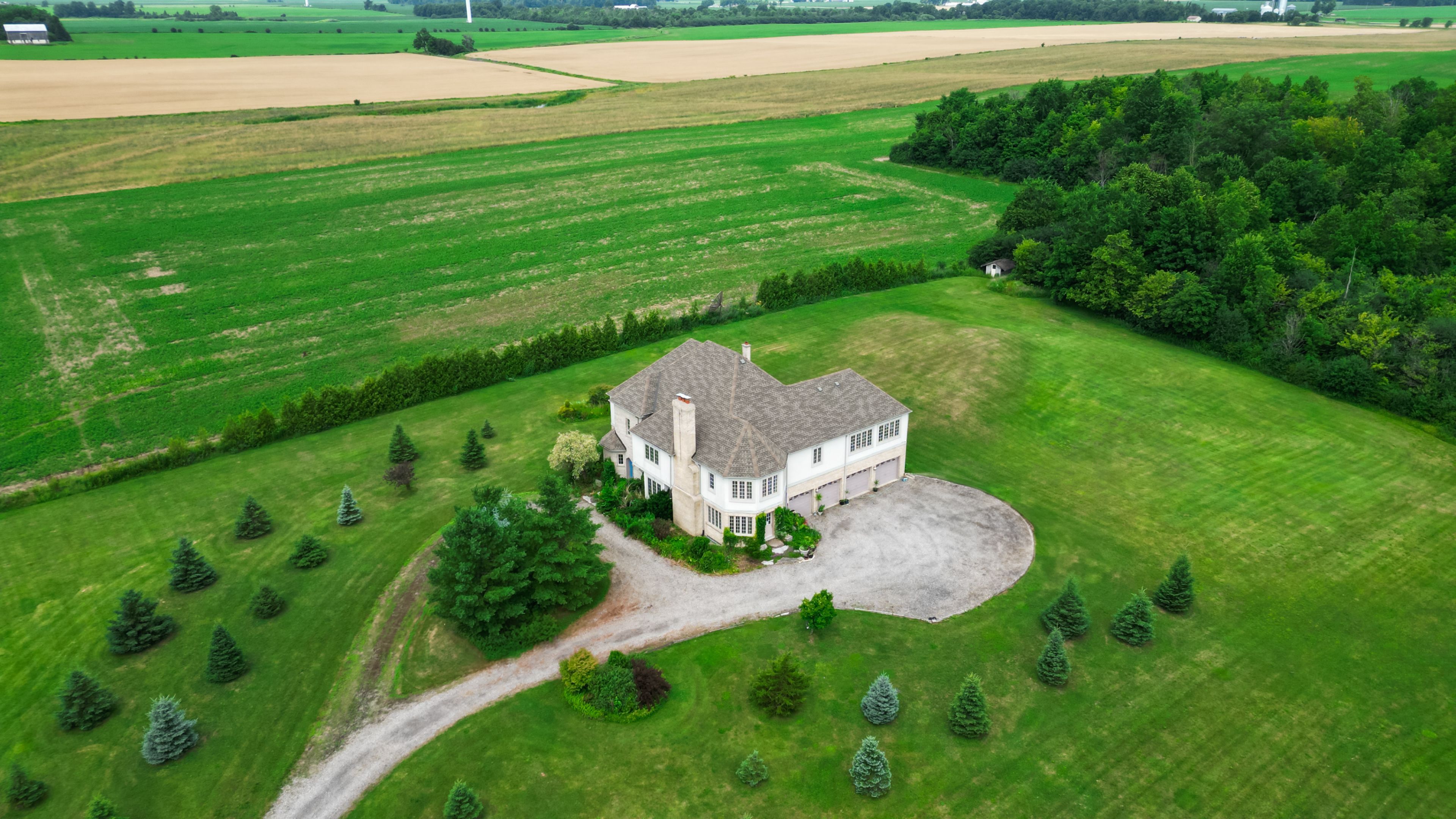 A rare find! 0nly 30 minutes from london! 69 acres + beautiful solid custom built 5 bedroom, 6 bath home with 4 car garage, finished lower and 3rd floor loft all on paved country road with easy access to hwy 402 and all amenities in lovely town of strathroy! Custom designed and built home by the current owner, this sprawling and light filled home boasts over 6000sf of finished living space & quality workmanship throughout. Ideal for large or growing family looking for room to roam in a beautiful & picturesque country setting! Features: tasteful neutral wall colours, gleaming oak floors, custom dentil crown moulding, quality pella windows throughout with amazing views from all angles of the home, formal living and dining rooms, main floor office with custom oak built-ins, main floor family room, large eat-in kitchen, main floor sunroom, main floor laundry & 2 main floor baths; amazing 2nd floor layout with 5 bedrooms (one features adjoining bonus room with 3 walls of windows) & 3 bathrooms including massive primary bedroom with 5pc ensuite, dressing area & vanity, coffee bar & private east facing sunroom; a custom spiral staircase accesses the 3rd level loft ideal for play room, media room, gym or even yoga room! Need more space? Then check out the huge finished lower level with 3pc bath, rec room, 2 dens, ample storage and garage access! The exterior features huge patio, plenty of parking and priceless views year round! Added highlights: energy efficient heating/cooling, owned hot water heater, drilled well, central vac system & more. Approximately 46 workable acres are rented. Easy access to london & sarnia via hwy 402 + on route to lake huron beaches north on hwy 81.