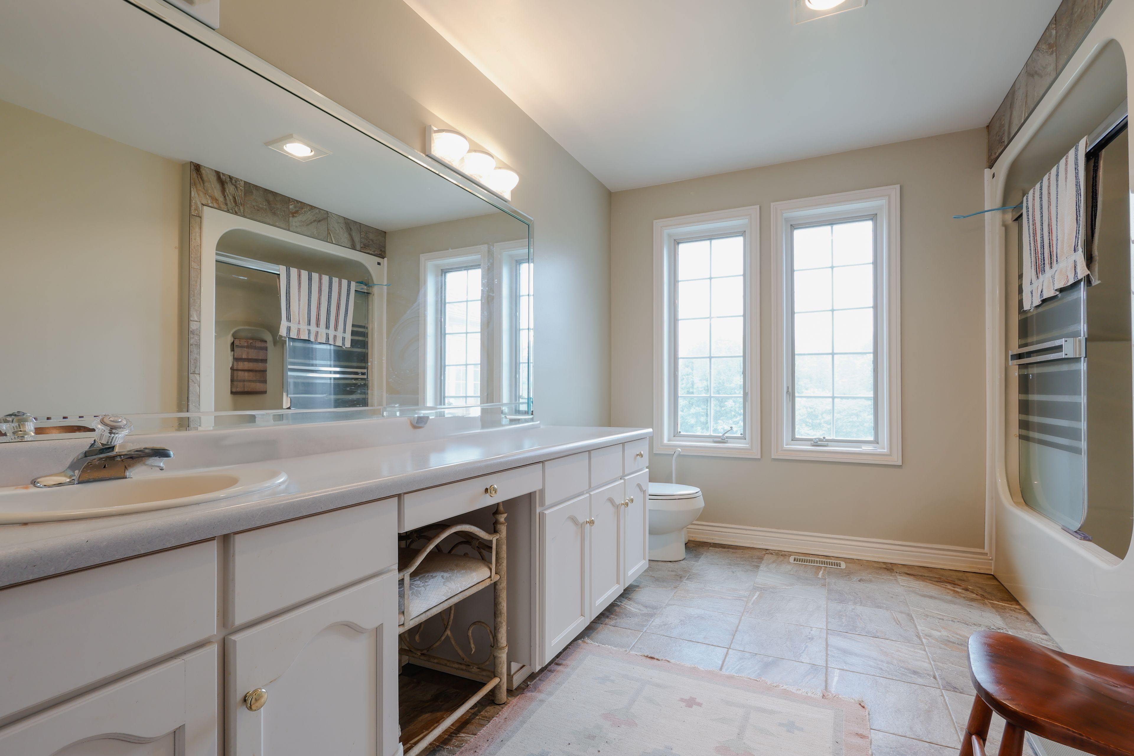 • Finished lower level with rec room, dens, and garage access for convenience.