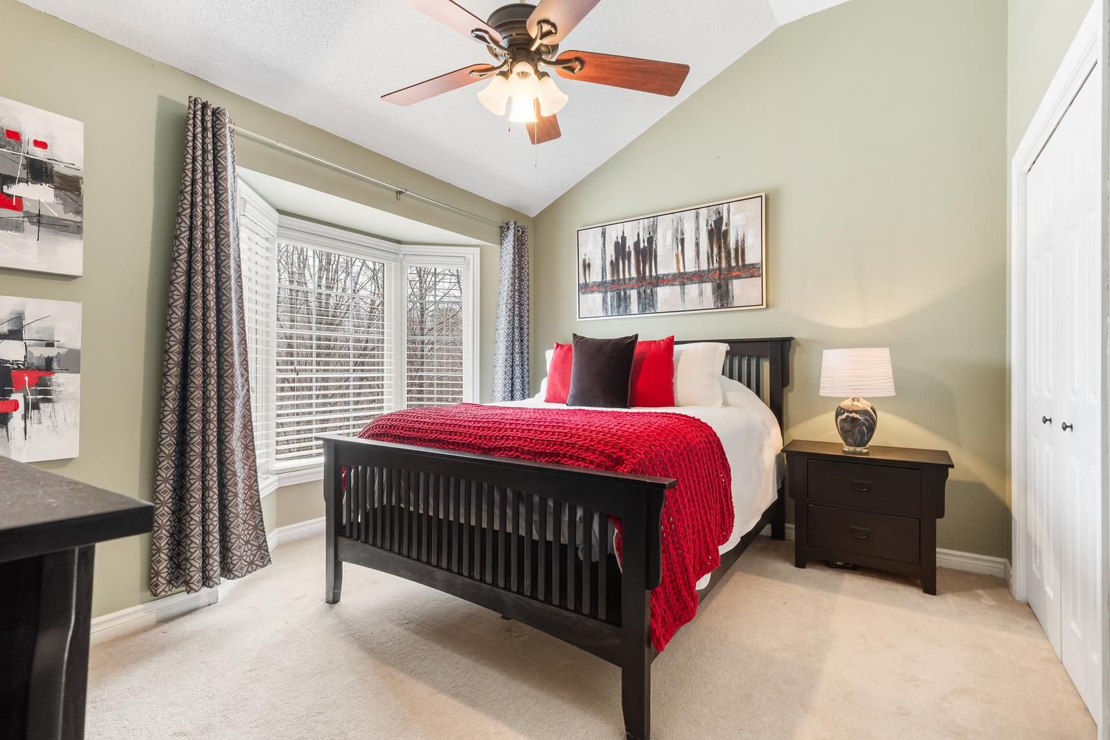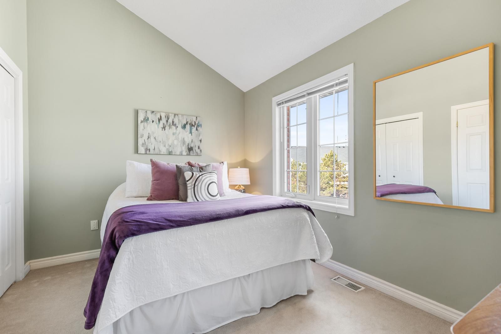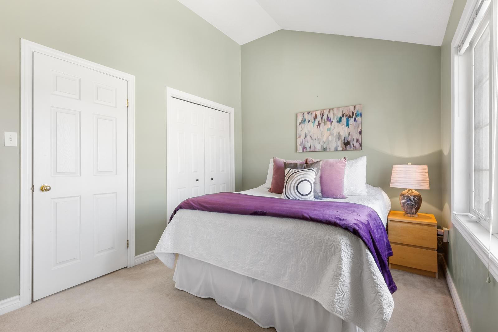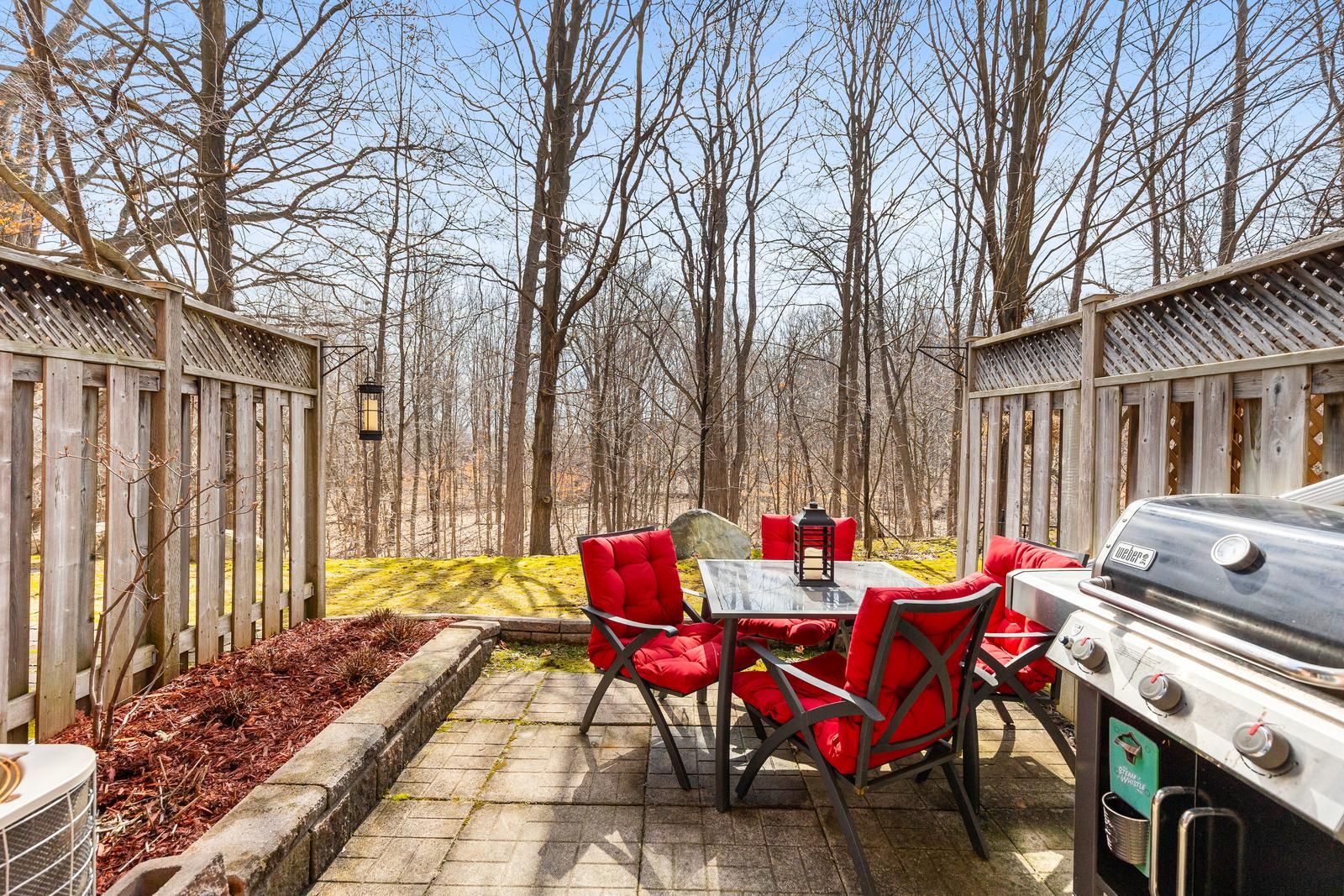 Welcome to tuck's forest townhomes! This ravine-backed unit offers breathtaking views, incredible privacy and no rear neighbours in one of the most desirable locations in the complex. Enjoy morning coffee on your private balcony overlooking greenspace or relax on the lower patio surrounded by nature. The open concept main level features kitchen and living room with gas fireplace and walk-out to deck, perfect for entertaining or relaxing at home. This 2 bedroom townhome features vaulted ceilings in both bedrooms. Bright lower level includes garage entry, walk-out to patio and a full 3-piece bathroom, while many units only offer a powder room. Kitec plumbing fully replaced in may 2024 ($11,978) - a major upgrade not commonly completed in the complex. Updates include new fridge (2025), new garage door (2025), washer/dryer approx. 5 years, roof and driveway updated within past 4 years. Maintenance fees include snow removal, leaf blowing, window cleaning and more. Excellent burlington location with quick access to the qew, 403, 407, go station, great schools, parks, trails, shopping and restaurants.