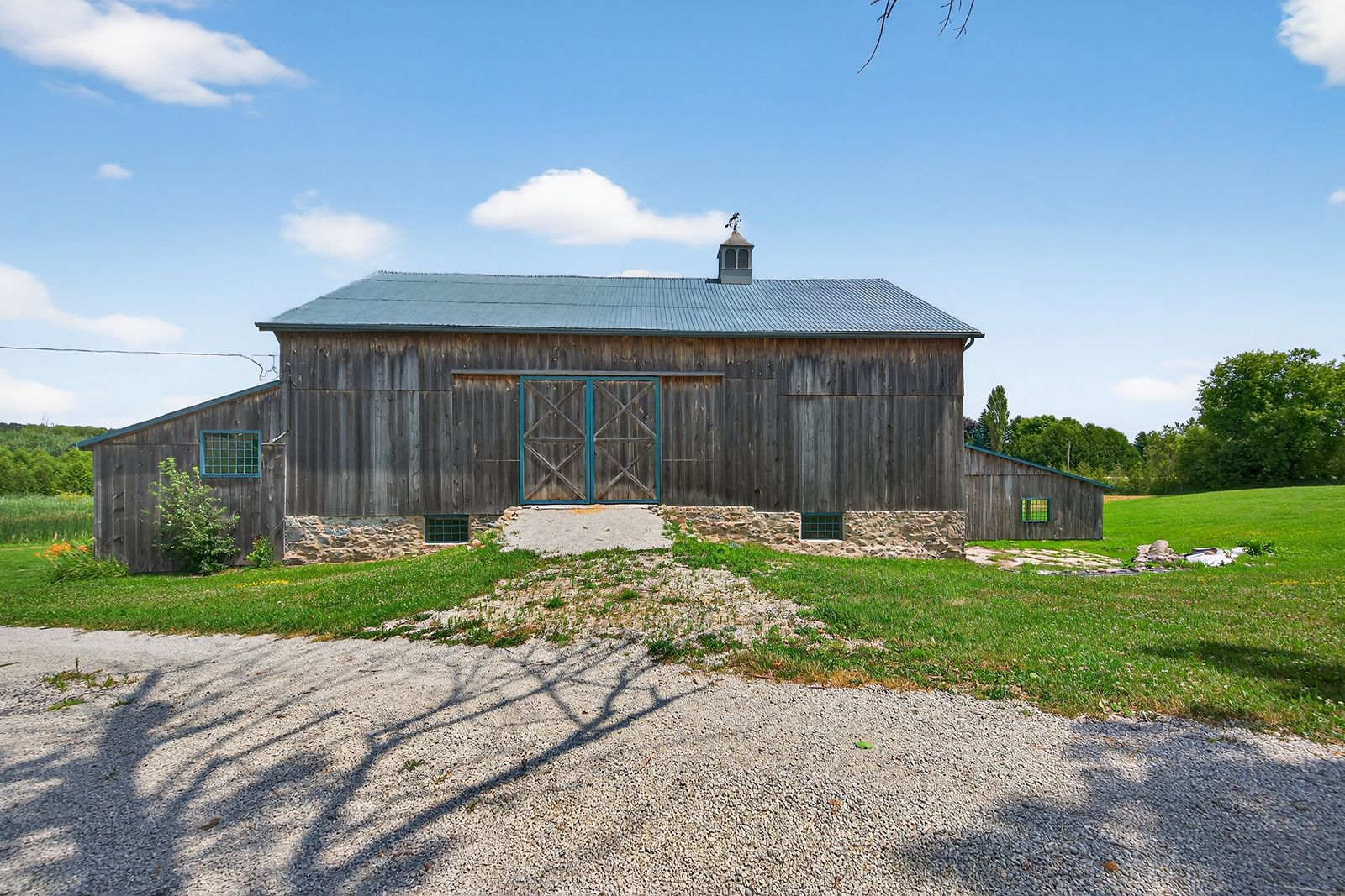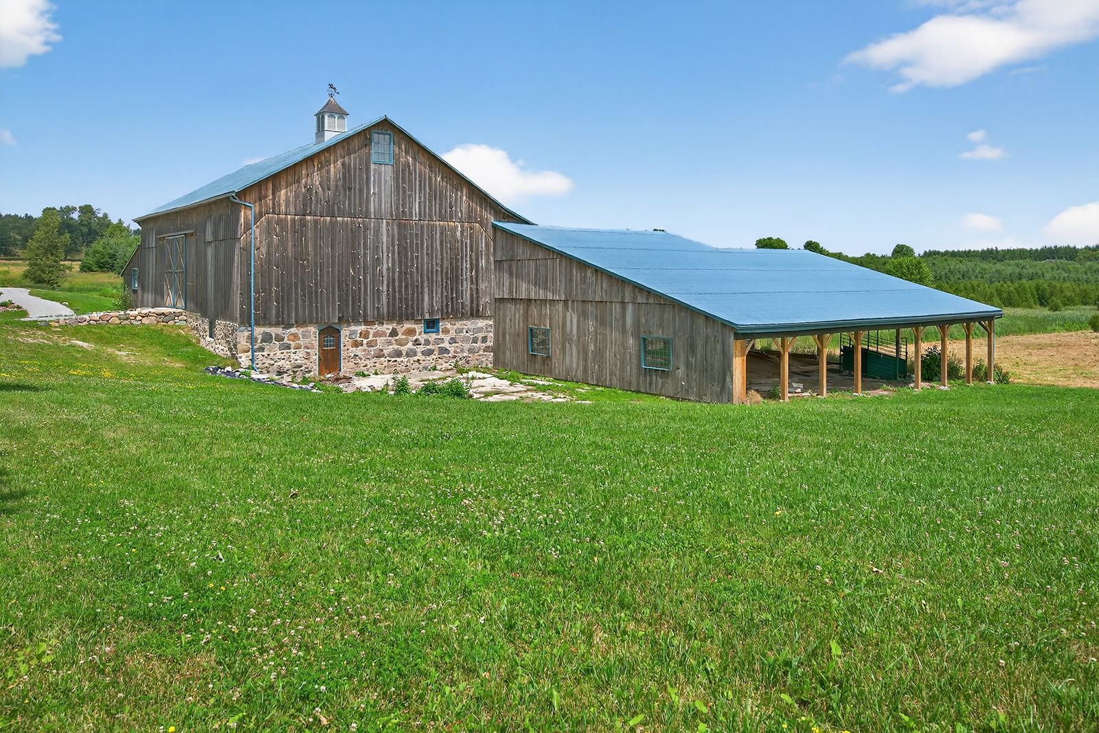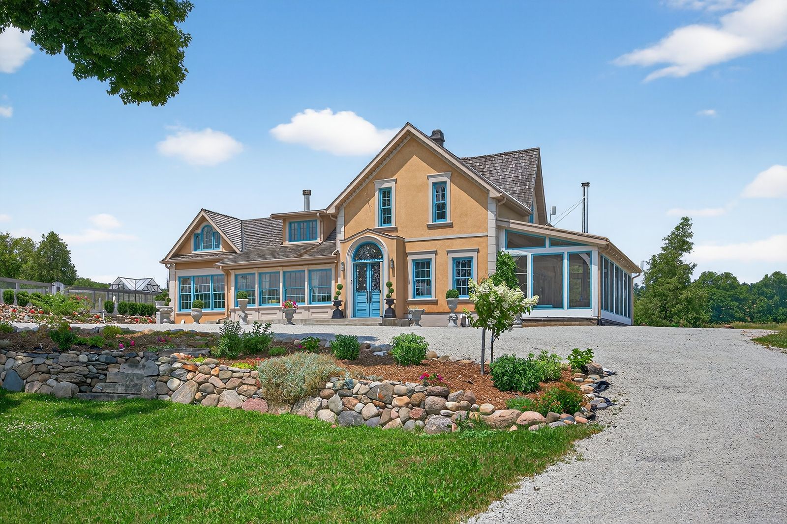 An exceptional opportunity to own a timeless 1864 country retreat, ideal as a weekend escape or full-time residence. Set in the rolling hills of mono, this meticulously maintained home offers nearly 4,000 sq. Ft., just minutes to hockley village, ski hills, spas, mono cliffs park, and an easy commute to toronto. The pre-confederation home is thoughtfully renovated with a seamless addition, blending historic charm with modern comfort. Featuring mennonite craftsmanship, beamed ceilings, heritage windows, four fireplaces, a wood stove, and a chef's kitchen with an impressive 11' x 4' butcher block island and electroluxoven. Outdoors, enjoy a stone kitchen, firepit, greenhouse, gardens, and a working barn. Set on nearly 45 acres, with a pond for year-round enjoyment-from skating in winter to summer days on the water. Back-up generator, pond bubbler, 200 amp house, 100 amp barn, stucco over stone, approx 3947sqft, all windows new 2016, new septic and bed 2106, cedar roof 2011, diesel and gas fill-up pumps, tankless hot water.
