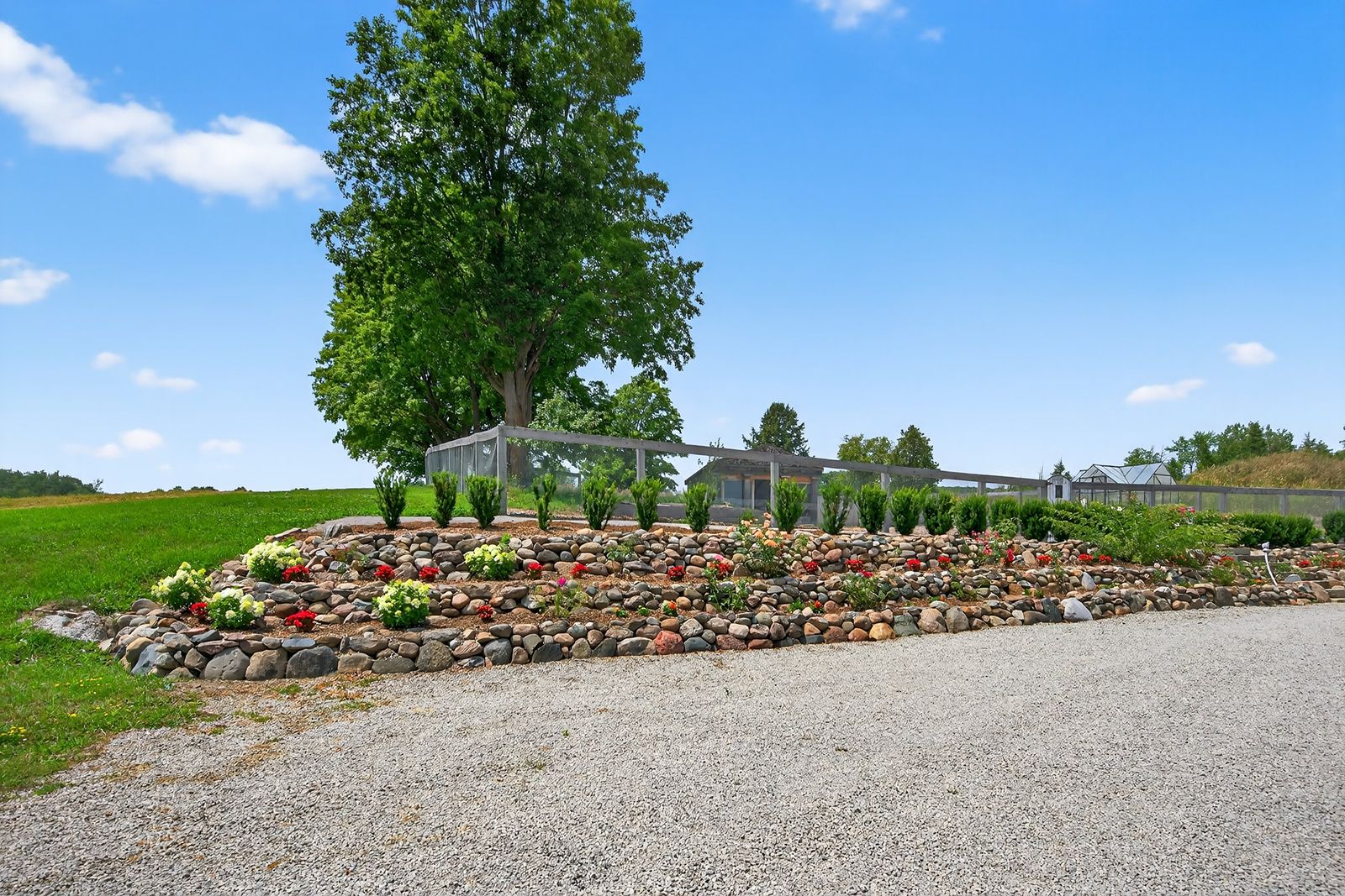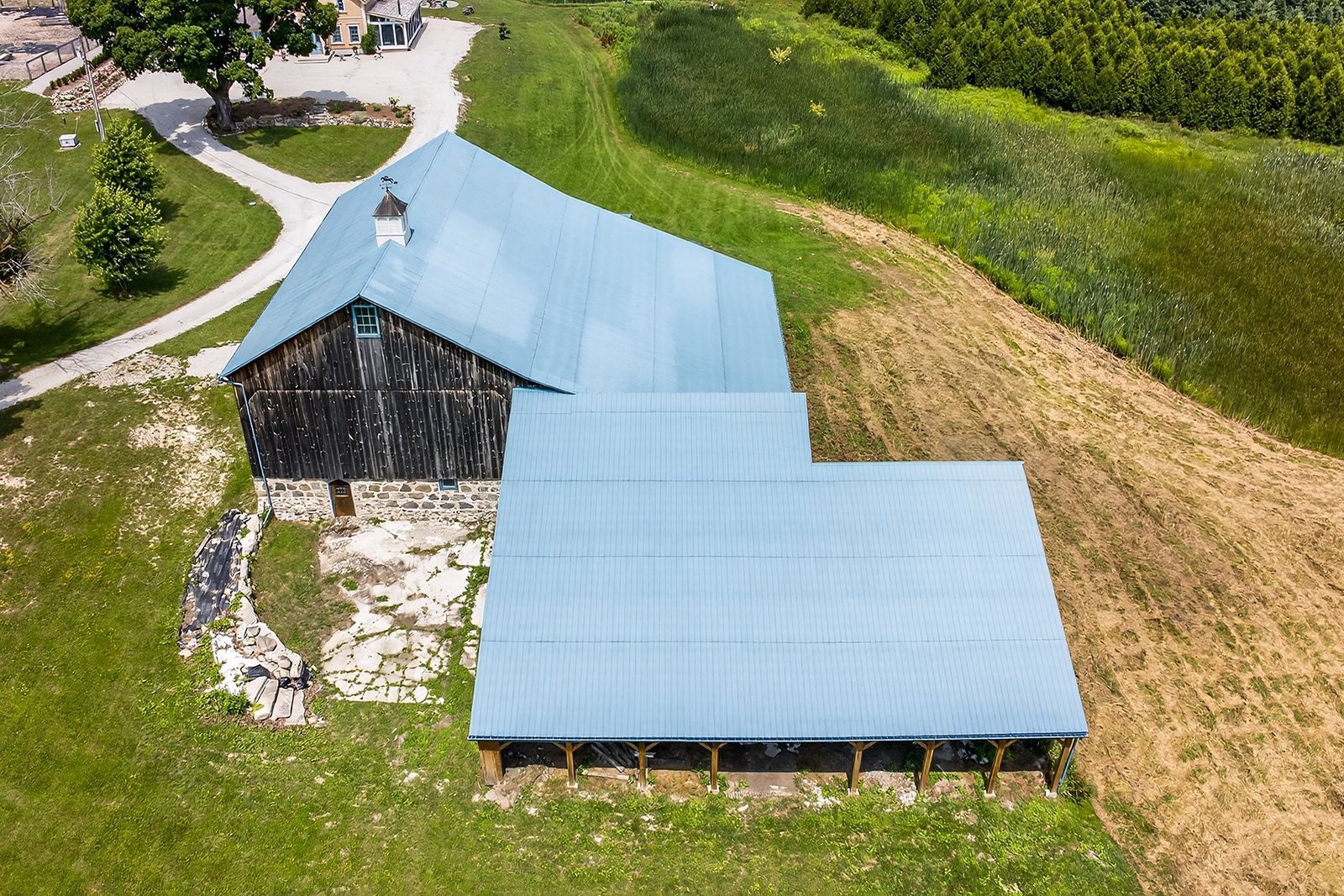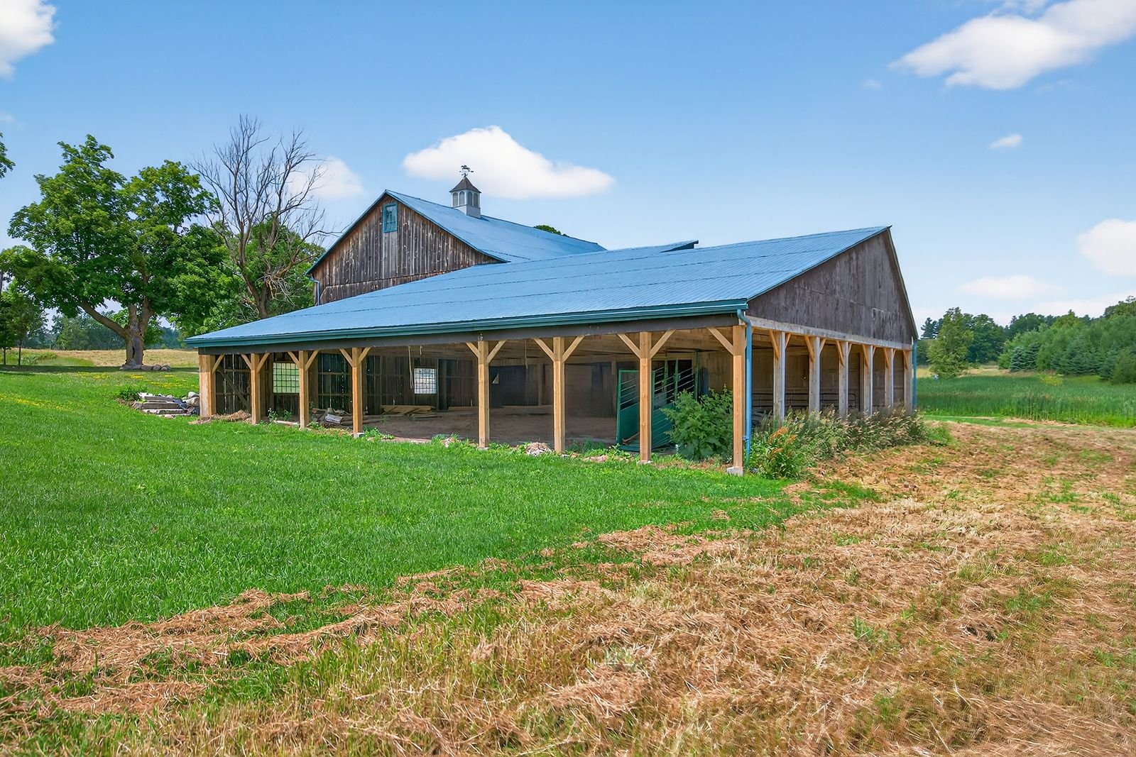 An exceptional opportunity to own a timeless 1864 country retreat, ideal as a weekend escape or full-time residence. Set in the rolling hills of mono, this meticulously maintained home offers nearly 4,000 sq. Ft., just minutes to hockley village, ski hills, spas, mono cliffs park, and an easy commute to toronto. The pre-confederation home is thoughtfully renovated with a seamless addition, blending historic charm with modern comfort. Featuring mennonite craftsmanship, beamed ceilings, heritage windows, four fireplaces, a wood stove, and a chef's kitchen with an impressive 11' x 4' butcher block island and electroluxoven. Outdoors, enjoy a stone kitchen, firepit, greenhouse, gardens, and a working barn. Set on nearly 45 acres, with a pond for year-round enjoyment-from skating in winter to summer days on the water. Back-up generator, pond bubbler, 200 amp house, 100 amp barn, stucco over stone, approx 3947sqft, all windows new 2016, new septic and bed 2106, cedar roof 2011, diesel and gas fill-up pumps, tankless hot water.