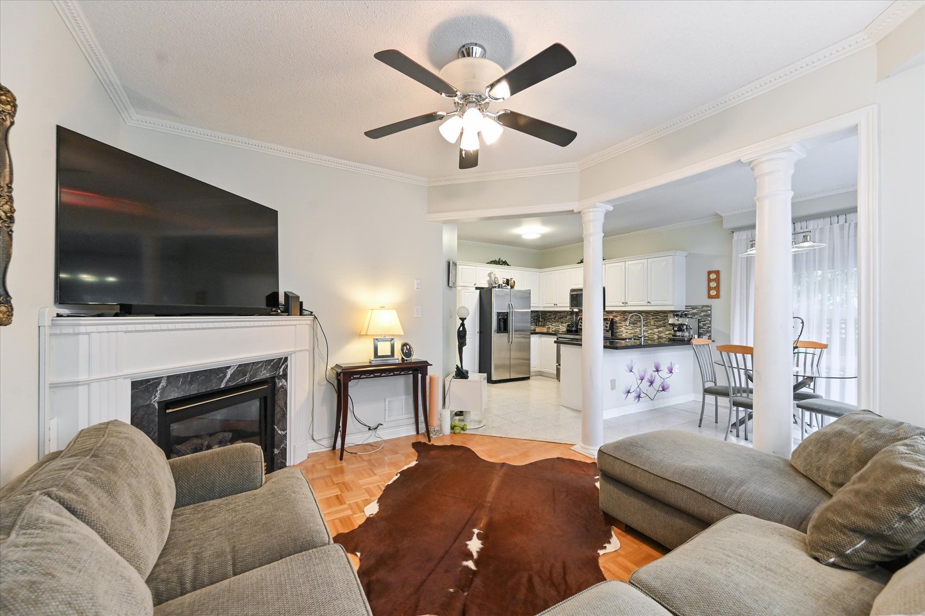 • Spacious living room featuring a gas fireplace and formal dining area.