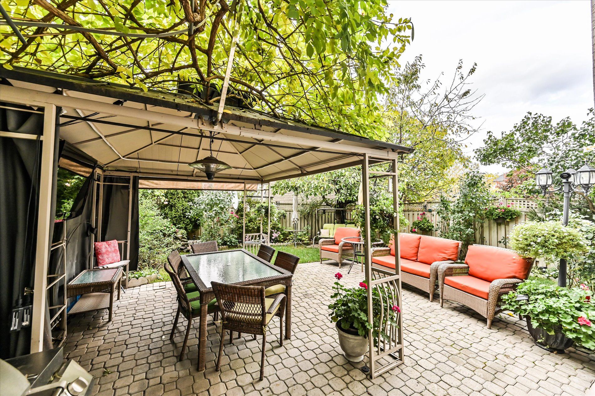 A truly elegant property featuring nine foot ceilings on the main floor with crown molding throughout. The open concept kitchen offers a breakfast bar and a walkout to a private garden, perfect for entertaining or relaxing. The spacious living room is highlighted by a gas fireplace, complemented by a large formal dining area. An impressive seventeen foot foyer sets the tone for the home's sophisticated design. Upstairs offers four generous bedrooms, while the finished basement includes an additional kitchen, ideal for extended family or guests. This home is beautifully maintained and move in ready. Simply unpack and enjoy refined living at its best.