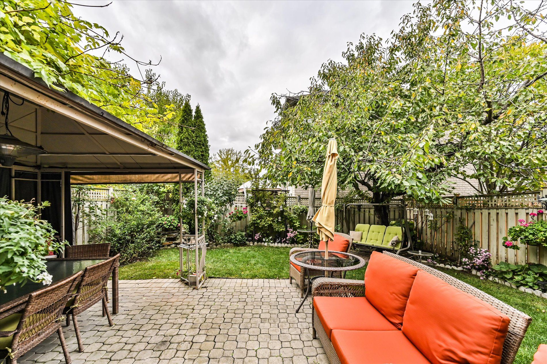 • Open concept kitchen with a breakfast bar and private garden access.
