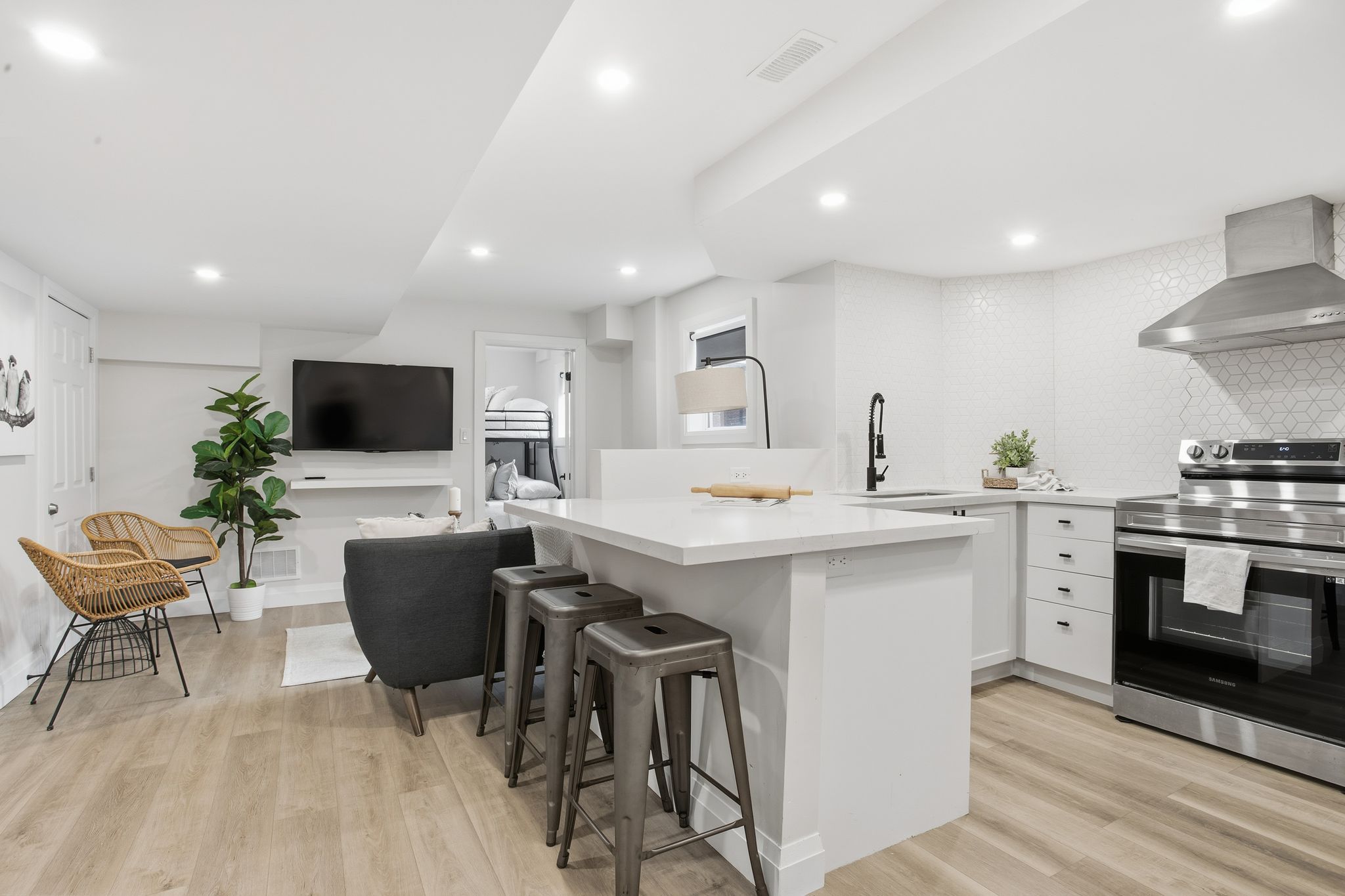Stunning turn-key upgraded executive detached family home with the value added feature of a professionally finished, modern legal basement apartment in sought-after lakeshore woods community! Over 3000 sq ft above grade, 4 beds, 3. 5 baths, plus 2 beds, 1 bath (in basement apartment). Main floor offers principal rooms families are looking for including separate office, open concept living / dining rooms, large eat-in kitchen with walk-out to deck plus family room with fireplace and custom built-in cabinetry. On upper level, primary bed with double door, coffered ceiling, walk-in closet and large ensuite, 2nd bed with full ensuite bath, plus a full shared ensuite between 3rd & 4th beds. With quality updates throughout, this above average property checks all the boxes! 9 foot flat ceilings (main fl), pot lights, integrated sound system, hardwood flooring, upgraded light fixtures, built in cabinetry in laundry room and brand new paint in today's modern light neutrals. Double garage with inside entry to laundry / mud room. Furnace & ac, 2023. 200 amp service, 60 amp elec vehicle charger. The legal basement apartment with exterior separate entrance adds both increased value and opportunity (multi-gen families, or rent out / income suite) - flooded with natural light, the modern finishings, 2 beds, 1 bath, open concept kitchen / living rm & en-suite laundry - with approved permits. Basement recreation room / gym off the main house, separate from the basement apartment. Convenience of only walking distance to shopping, groceries, pharmacy, fitness and more-close to qew, go, top-rated schools, parks and extensive trails - this above average property offers turn-key living, and investment value in a prime location!