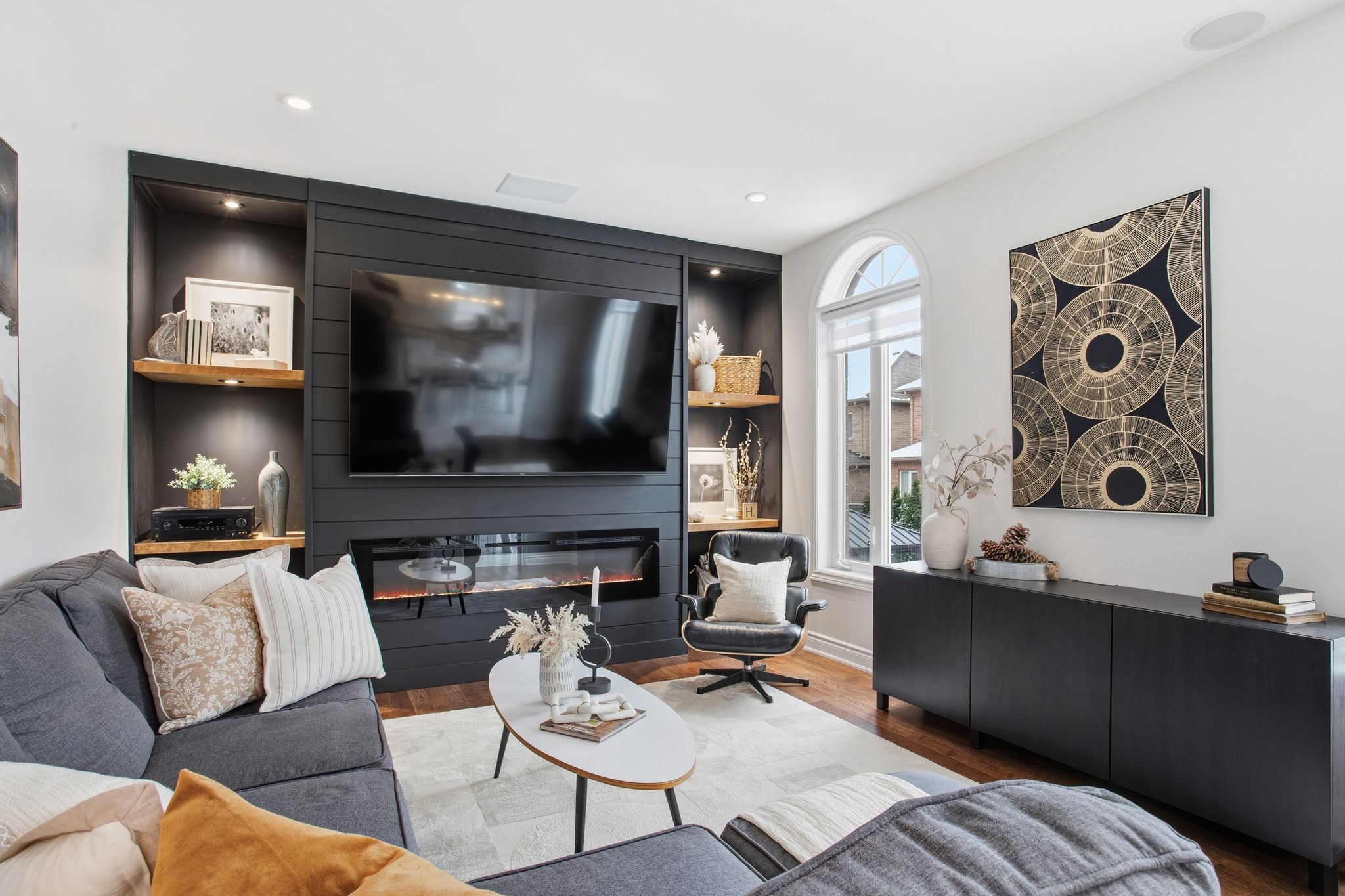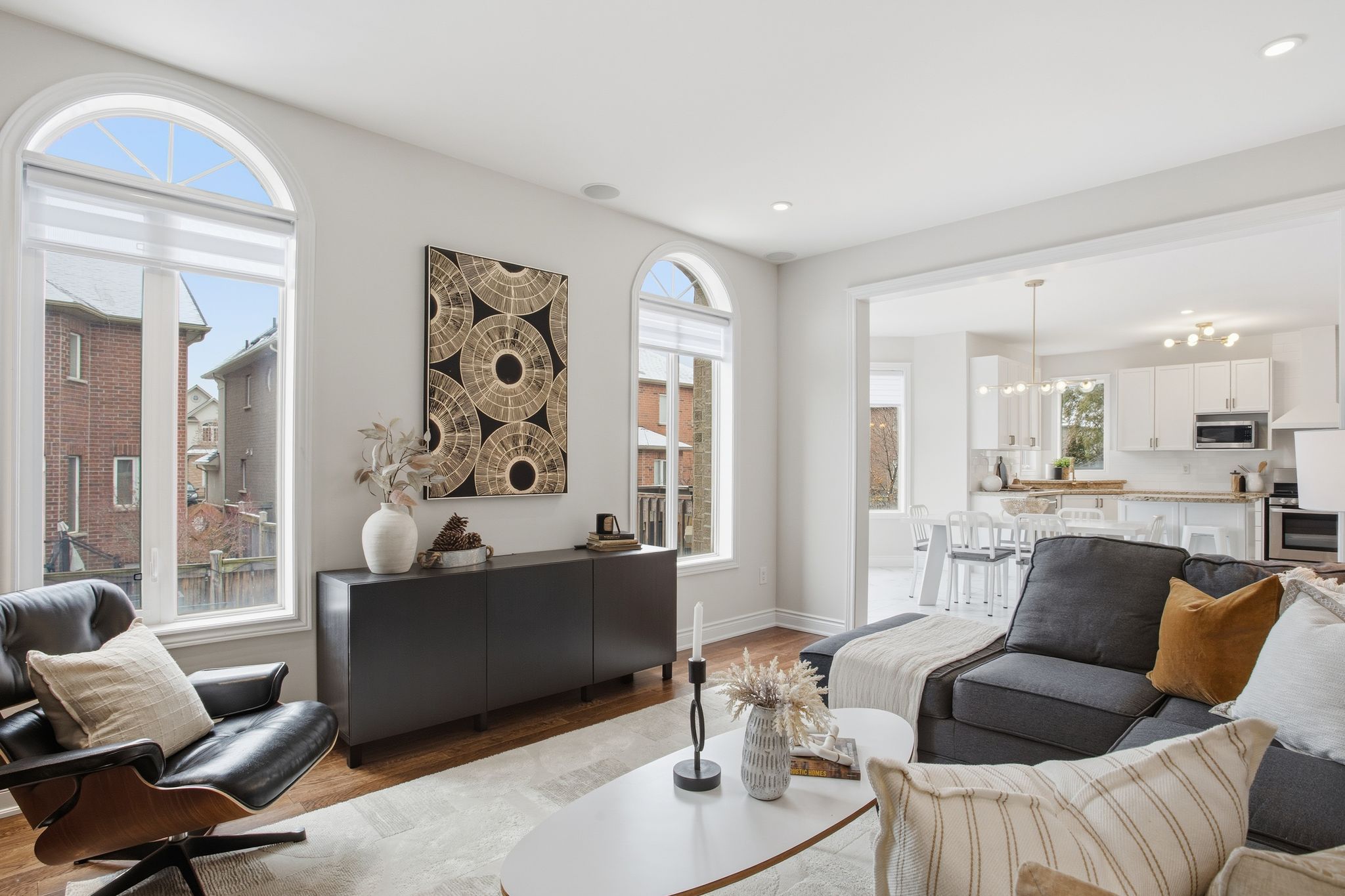 • Elegant main level with open-concept living and dining areas.