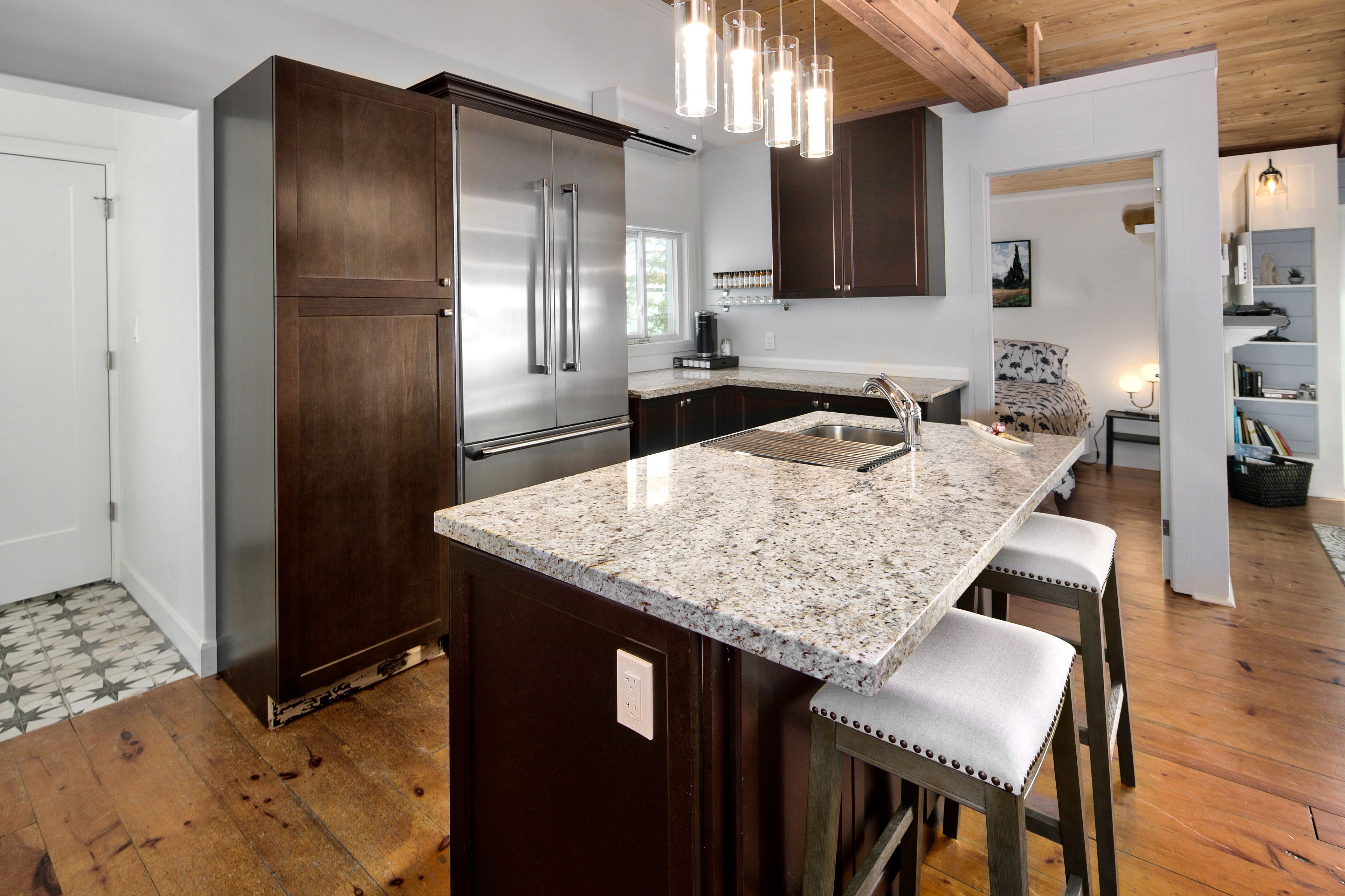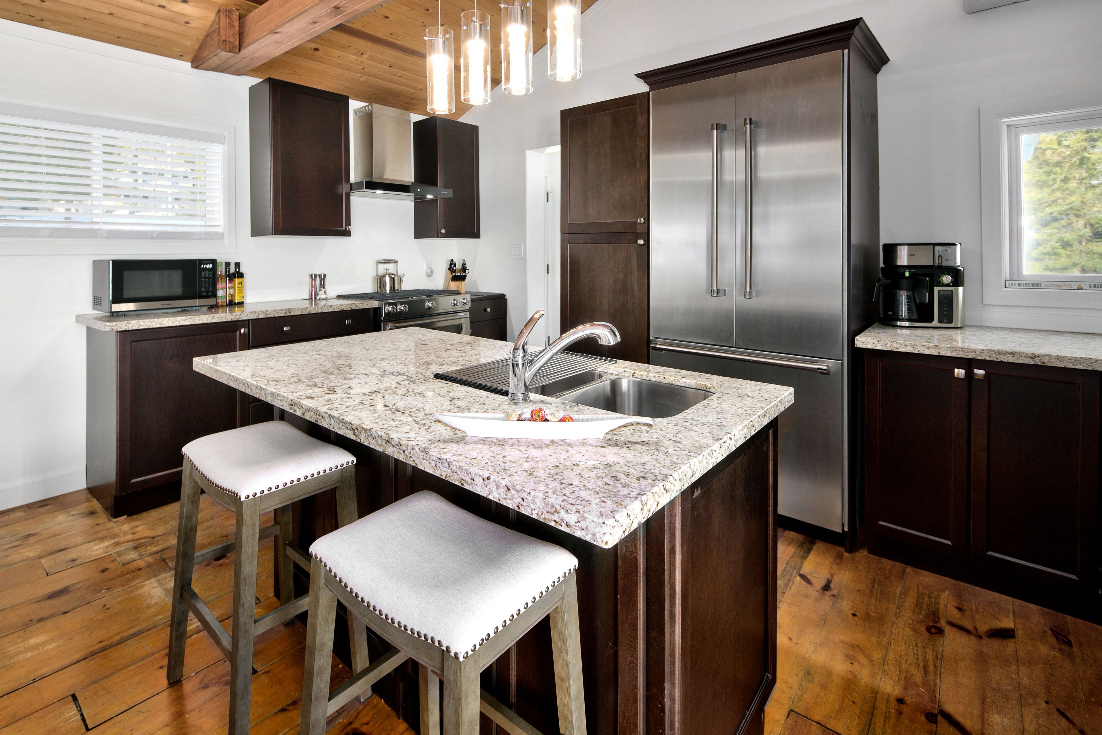 • Fully furnished three-bedroom waterfront retreat, ready for the ski season.
